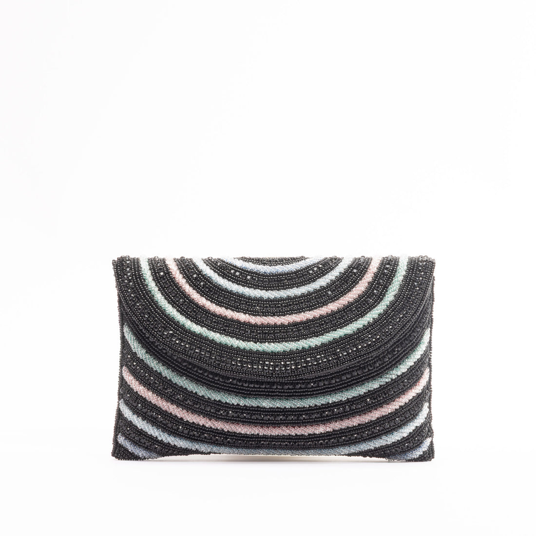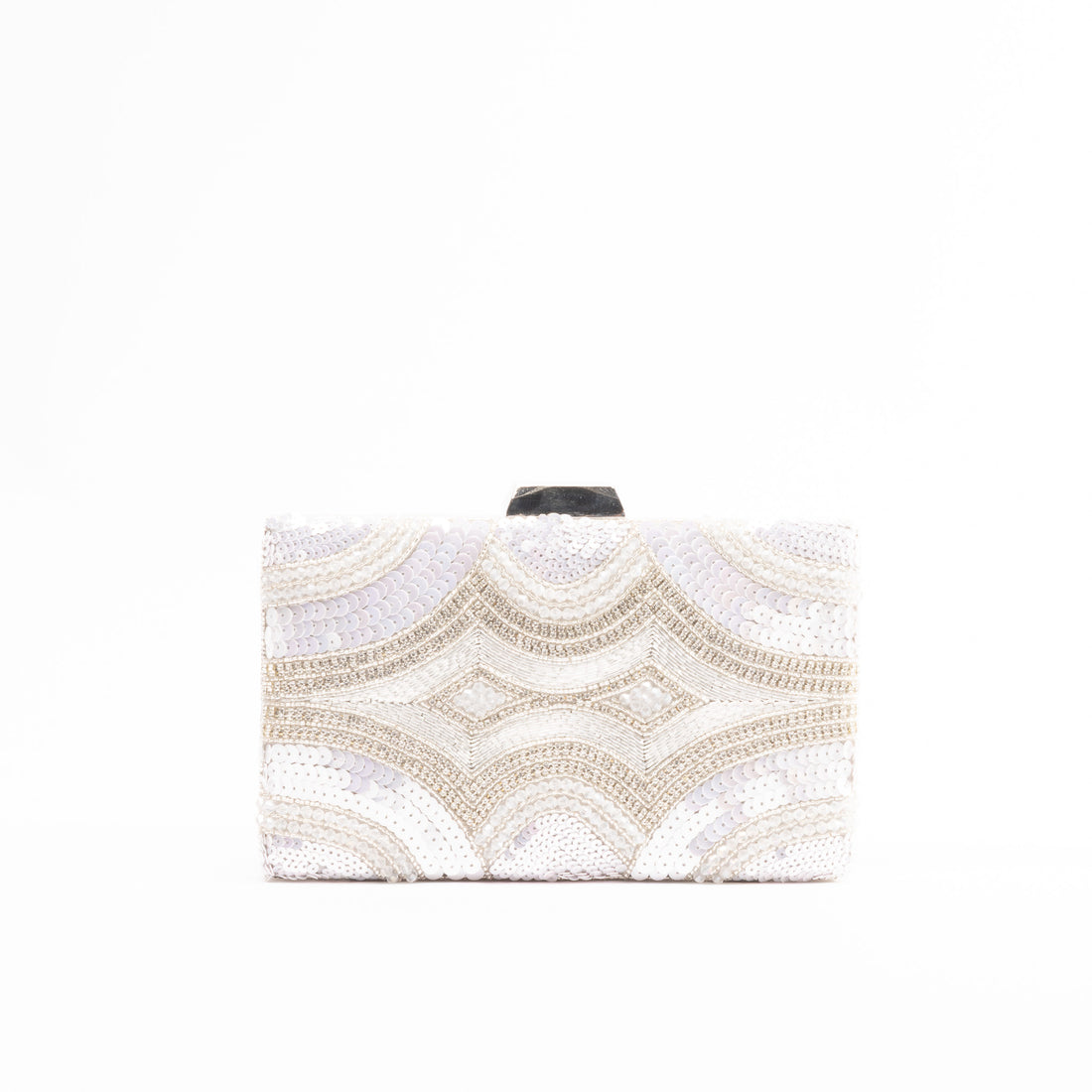 The Alex clutch is a bold statement in modern elegance, adorned with dazzling geometric beadwork...
