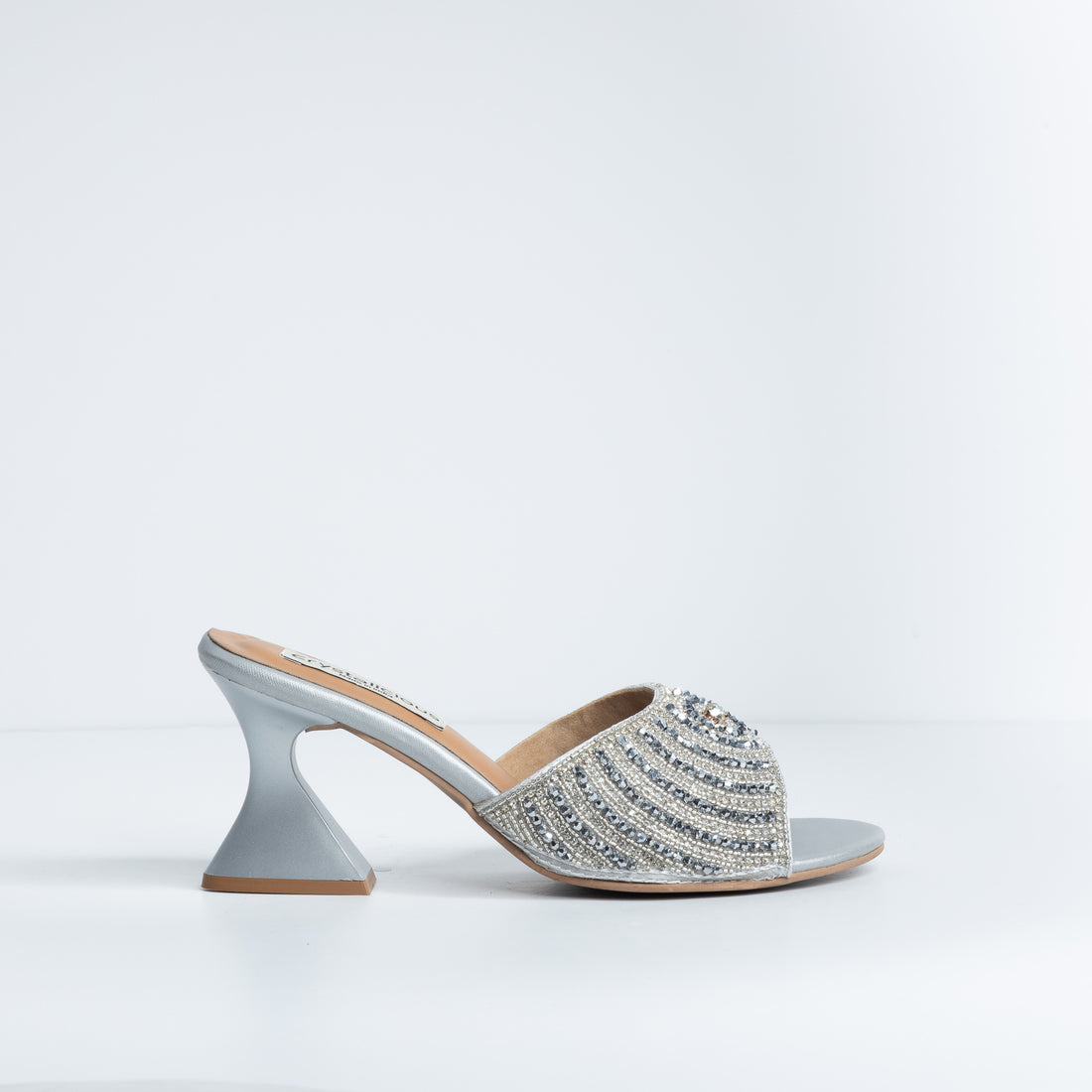 Enhance your wardrobe with our fashionable mule heel, crafted from intricately embroidered fabric. Designed with...