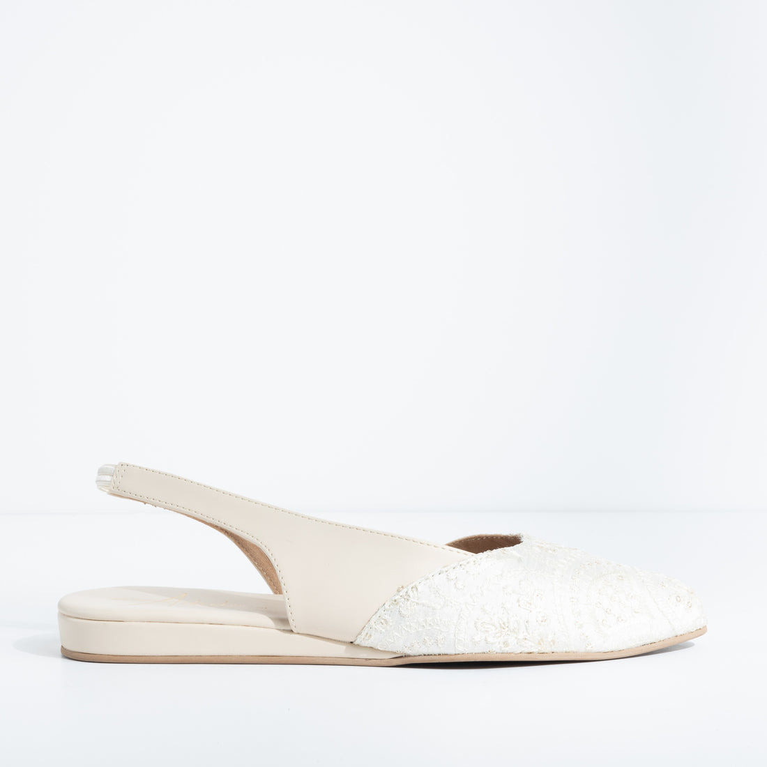 The Rose flat mule captures the essence of feminine elegance with its intricately embroidered lace...