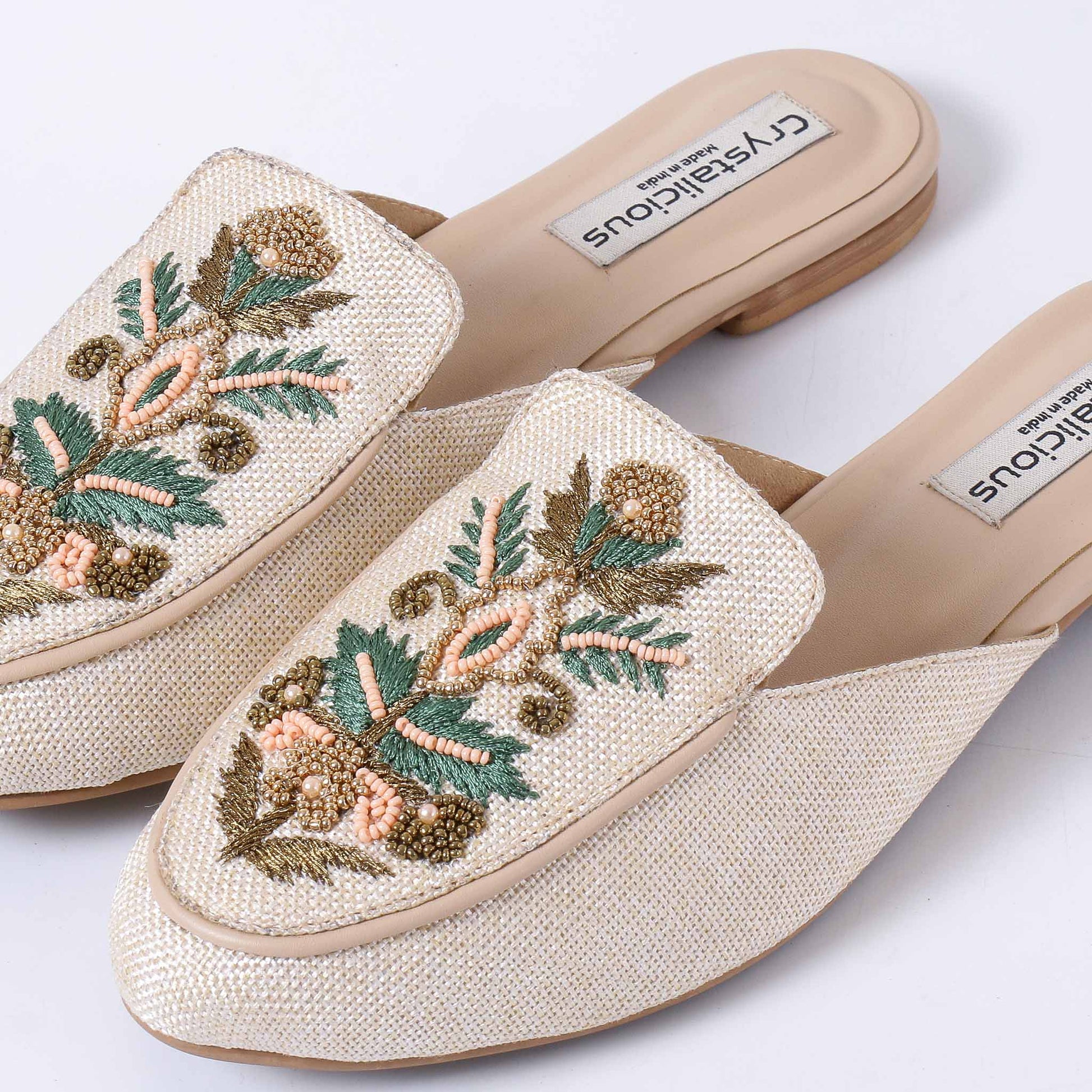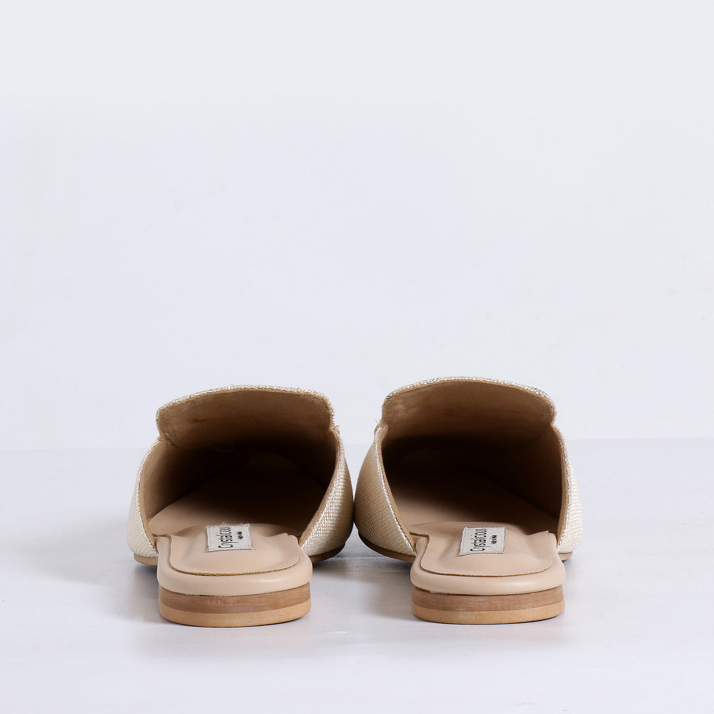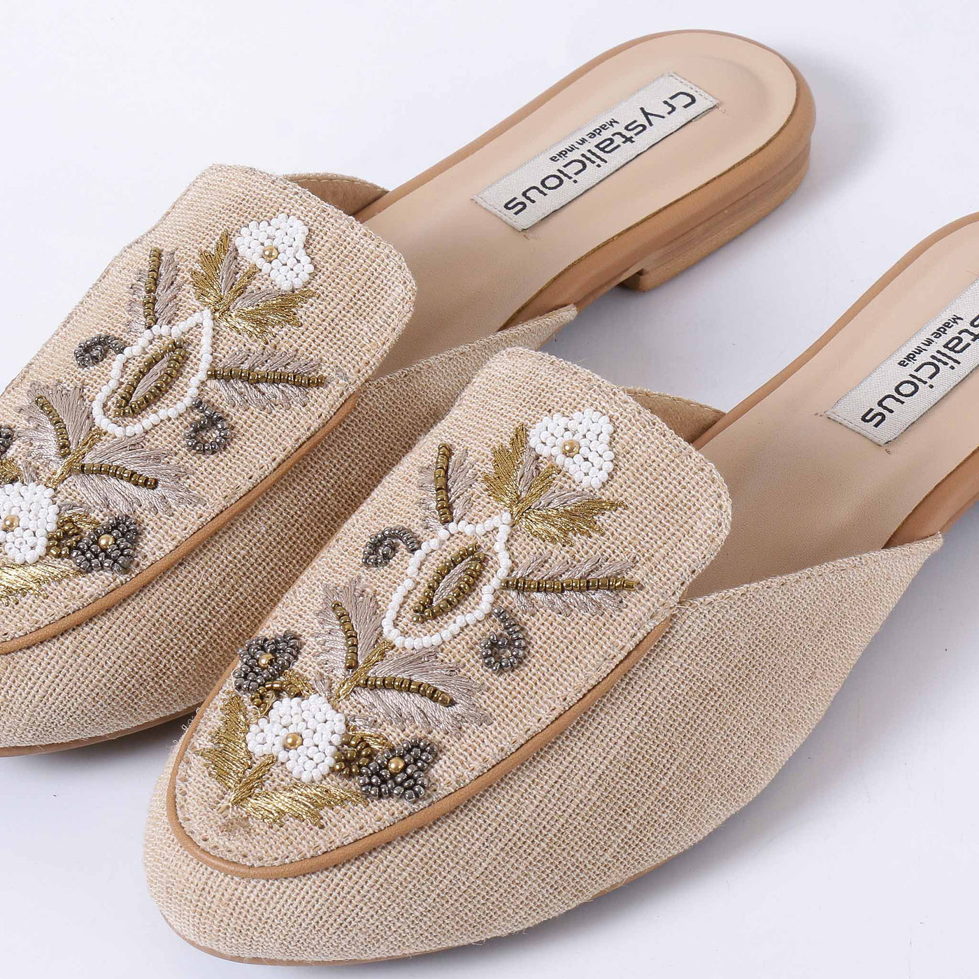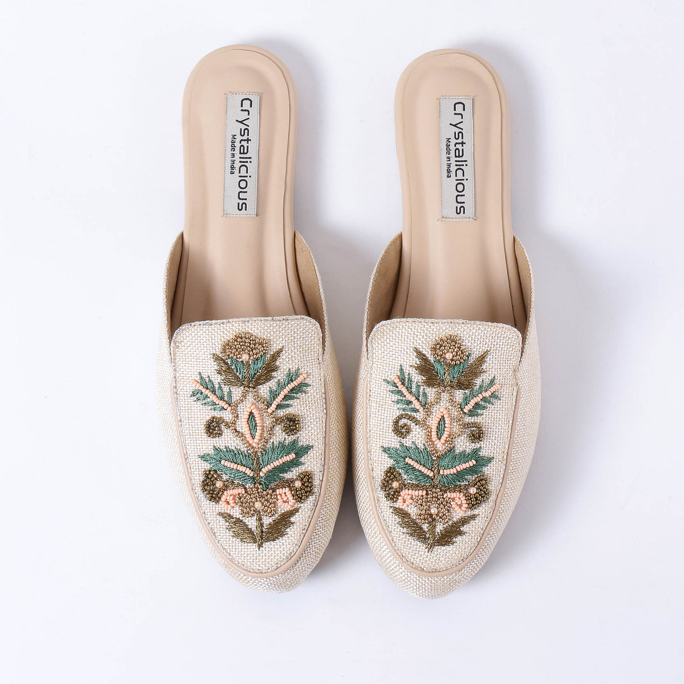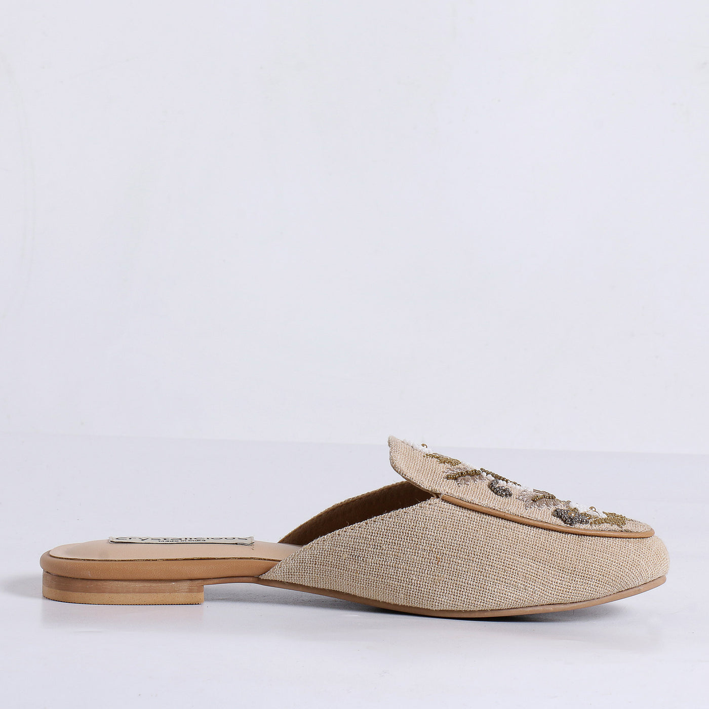 The Allison Mule is a sophisticated loafer mule that blends timeless style with eco-conscious craftsmanship. Handcrafted using burlap, a durable rubber sole, and adorned with intricate hand embroidery and beadwork, Allison is the perfect choice for those seeking both elegance and sustainability. This design allows Allison to strike the perfect balance between chic and comfort.