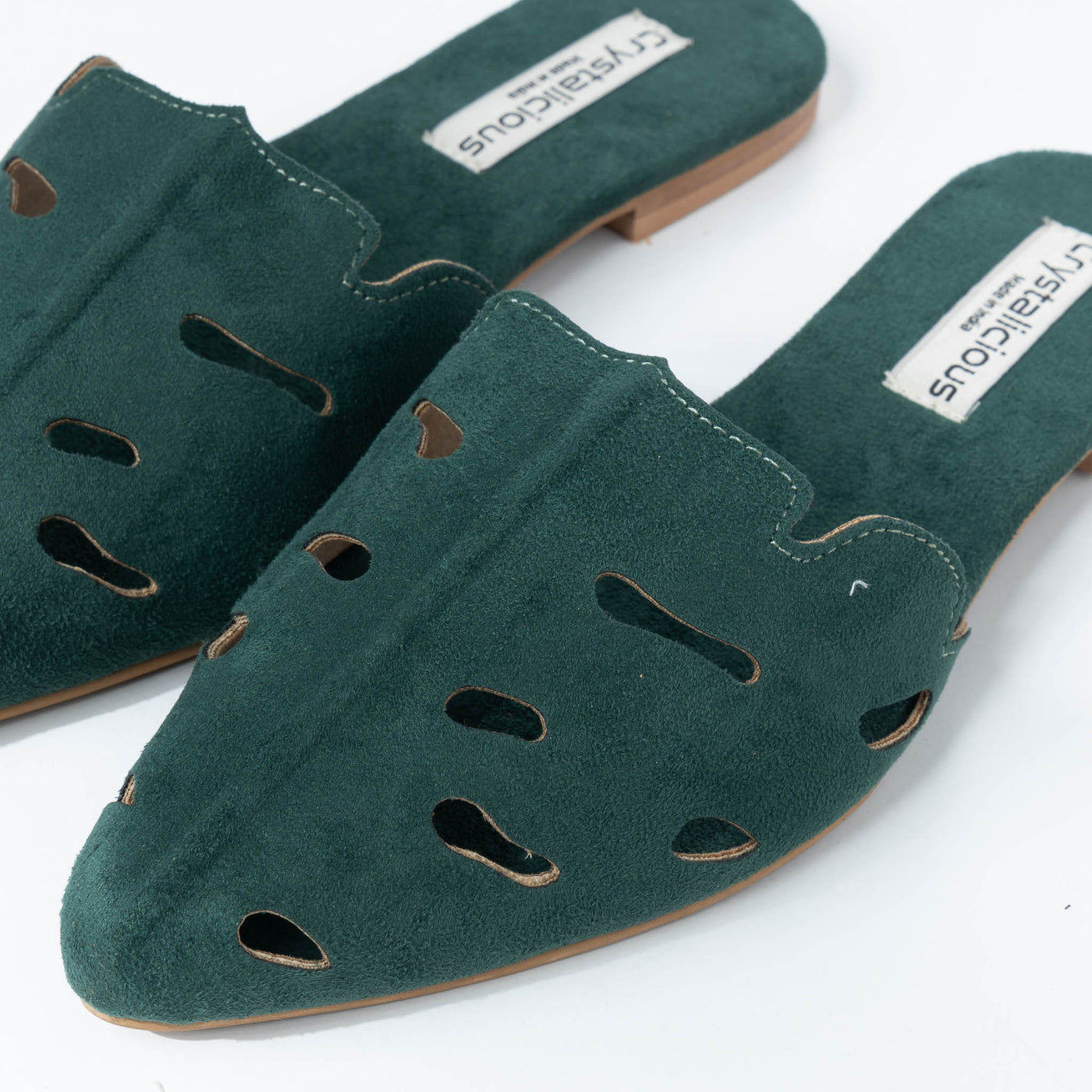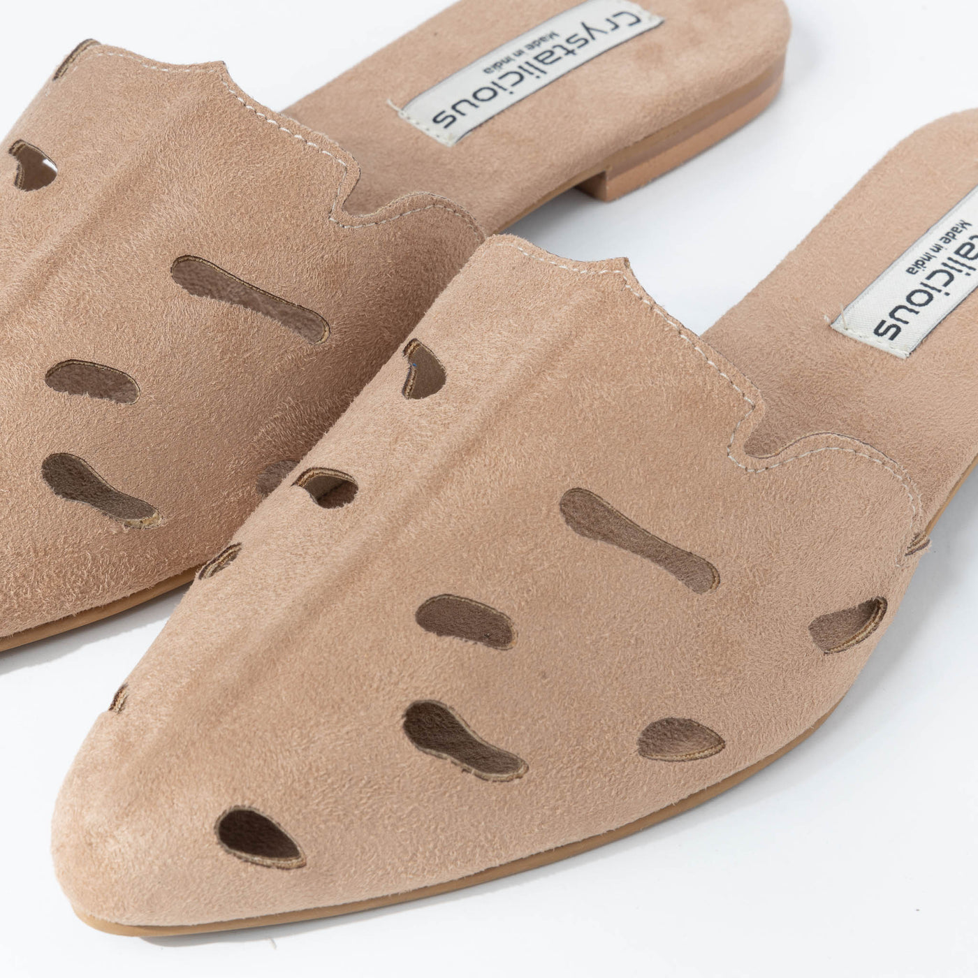 Discover the ultimate blend of comfort and confidence with Azra, the hand lasted faux suede flat shoes from Crystalicious. Made with vegan materials and expertly crafted by Indian artisans, these shoes are not only stylish but also eco-friendly. Discover Crystalicious premium collection today and elevate your wardrobe.