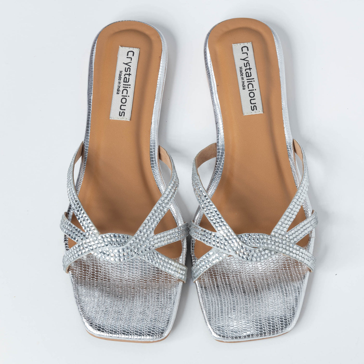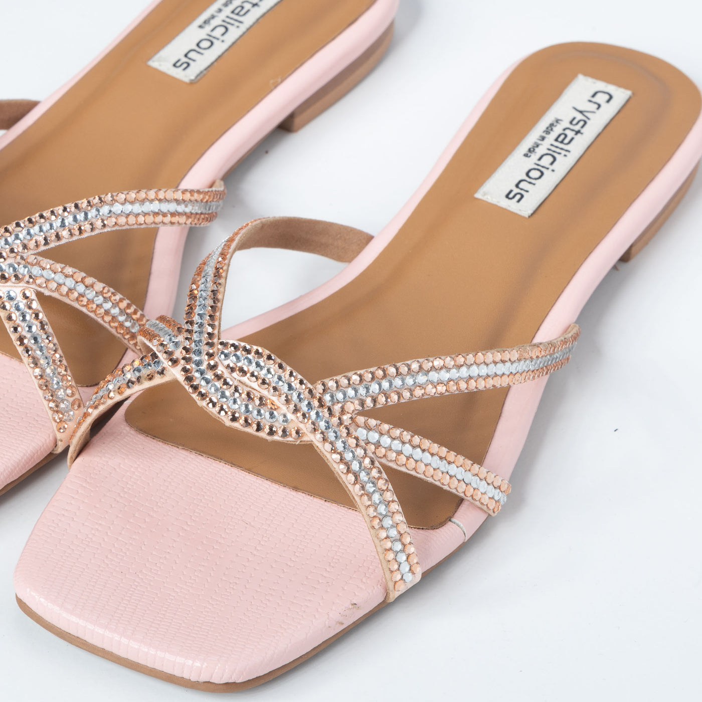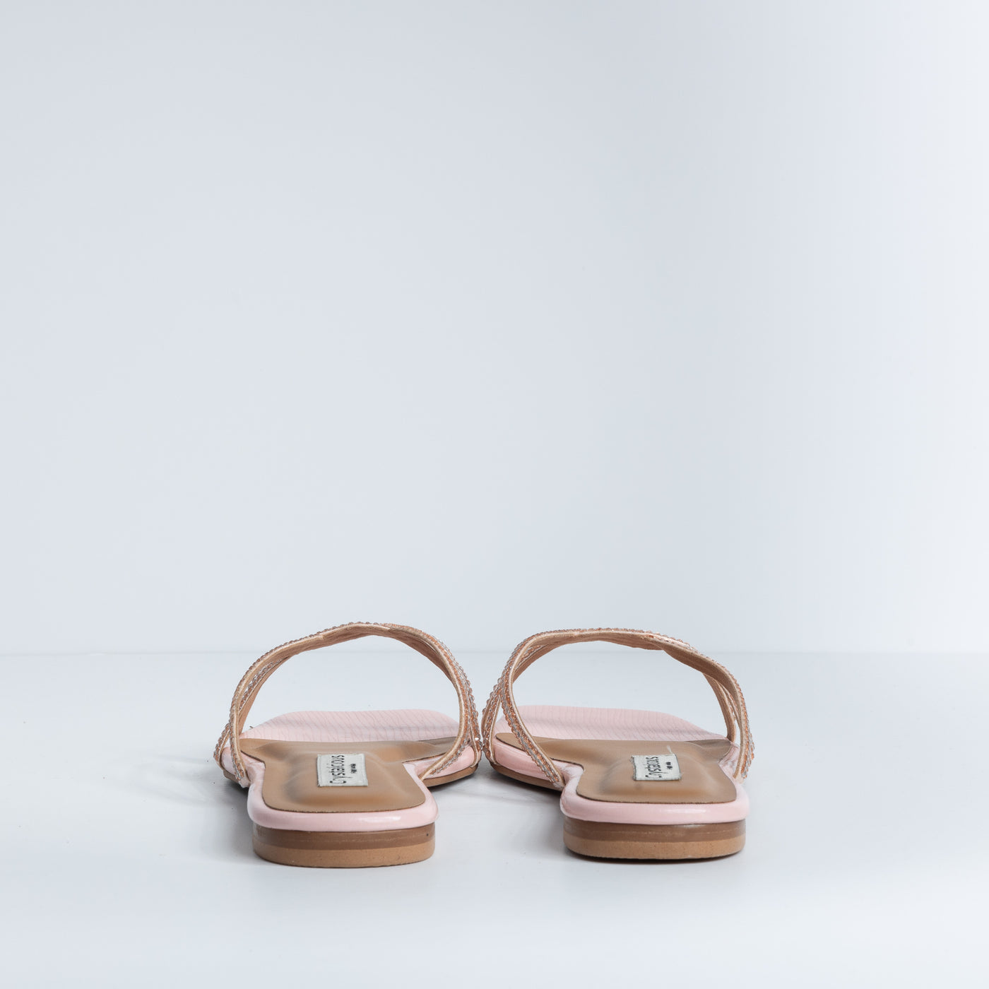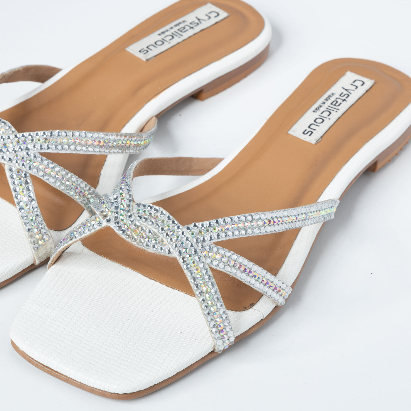 The Chloe Slider is a stunning combination of modern sophistication and unparalleled comfort. Crafted with a rubber sole, textured synthetic leather, and adorned with sparkling rhinestones, this slider offers a unique style that stands out. Its square toe shape and distinctive design make it the perfect slider to effortlessly transition from day to evening wear.