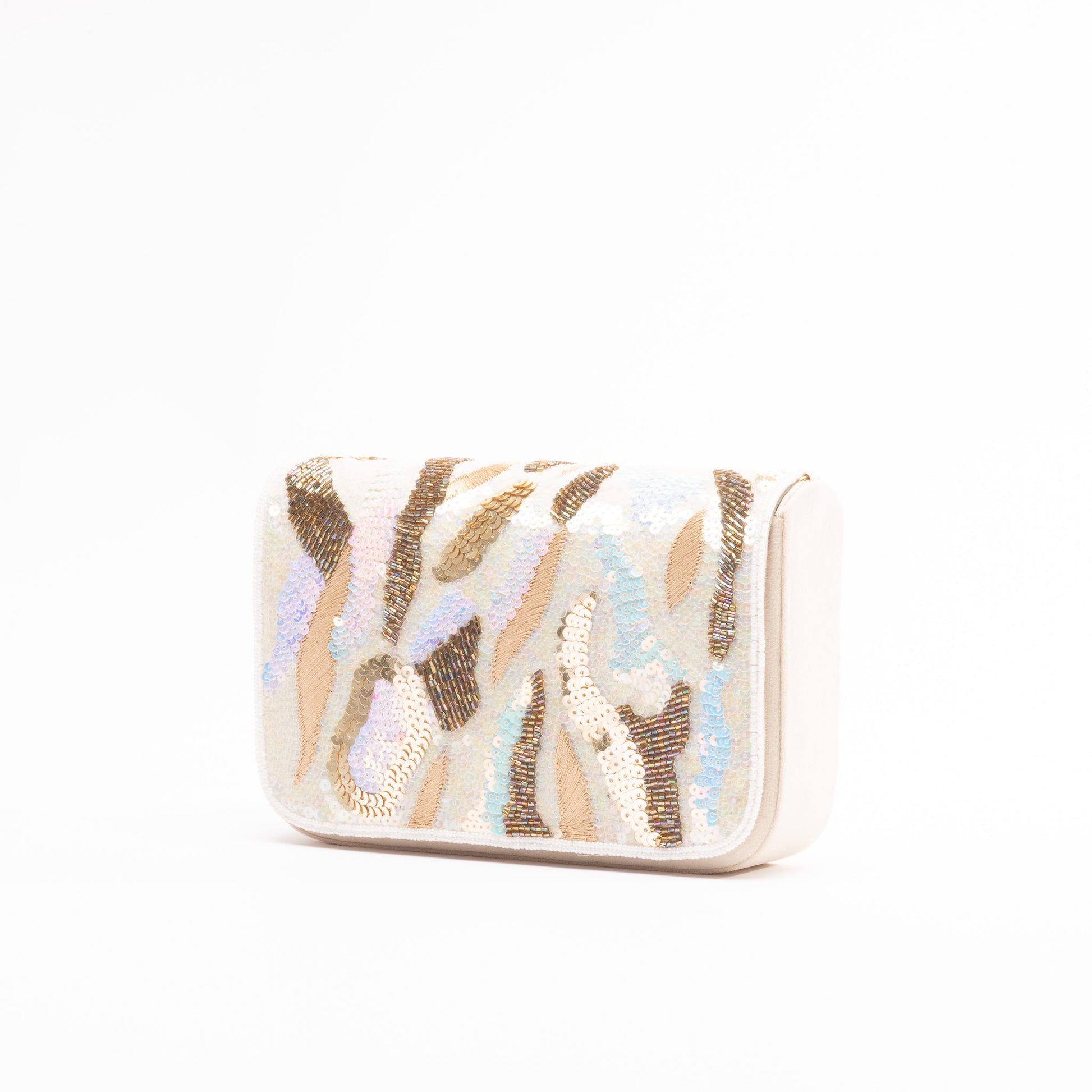 The Coral clutch is a statement of refined elegance, adorned with dazzling bead embellishments that shimmer with every movement. Designed for the modern woman, it brings together timeless charm and contemporary sophistication. Its occasion-ready style features a secure magnetic press stud fastening and an optional chain strap, offering the freedom to carry it as a classic clutch or wear it hands-free.