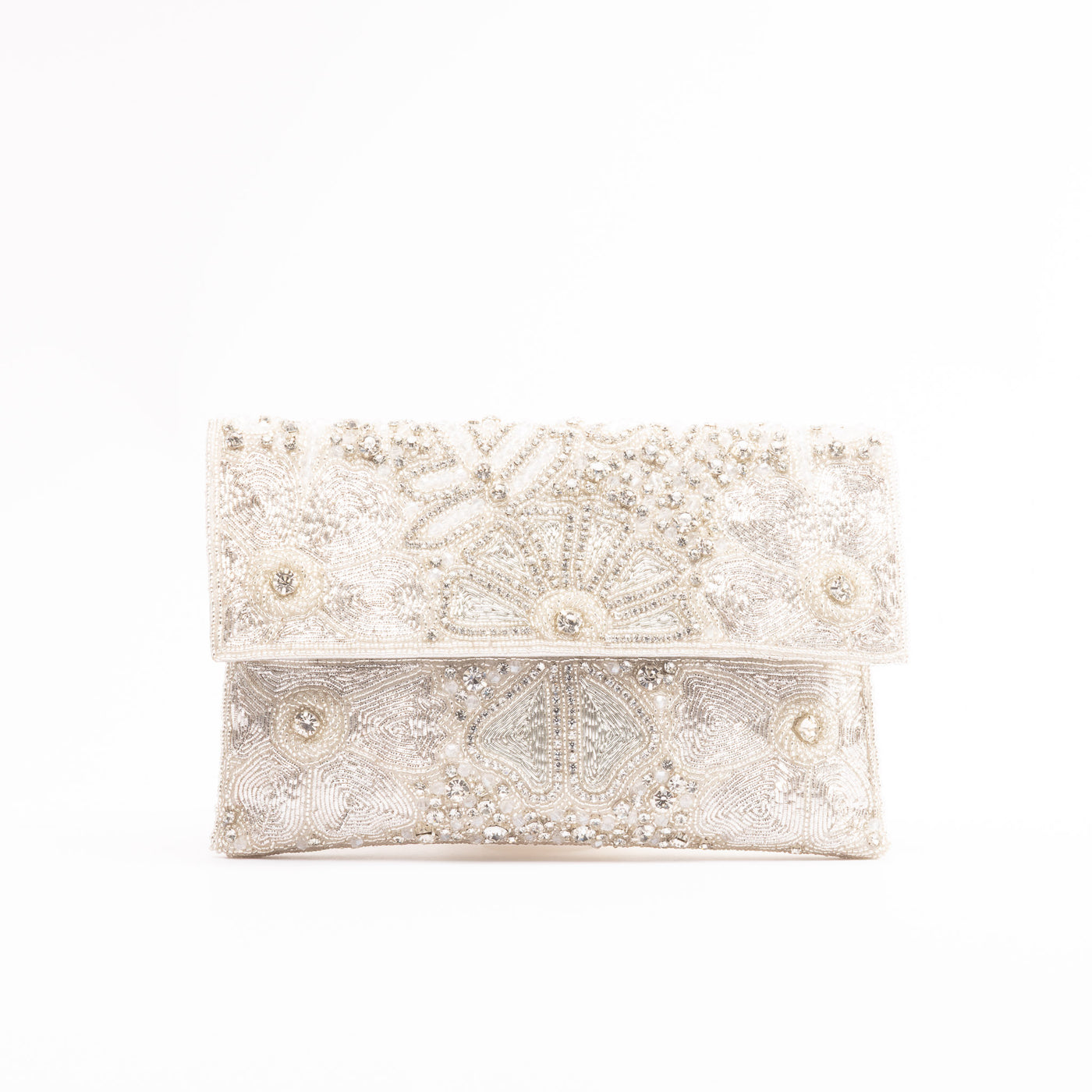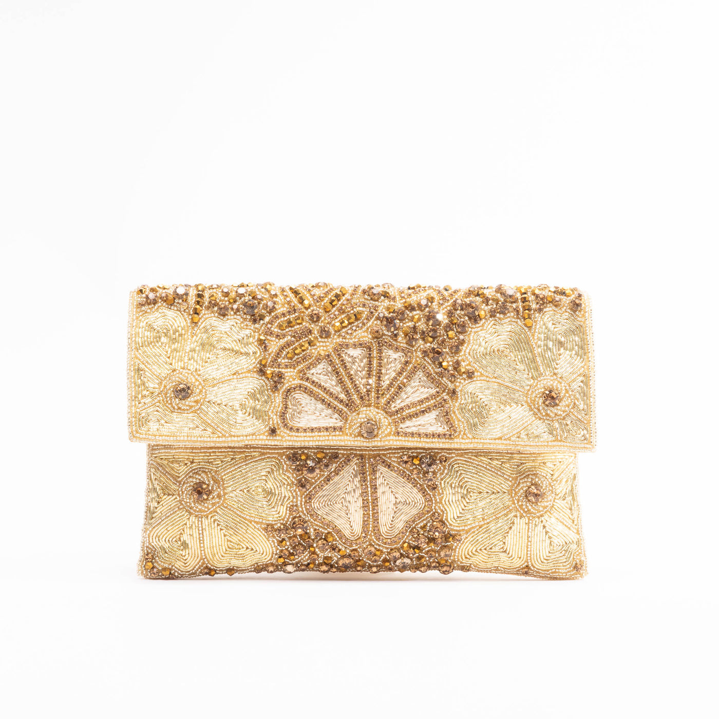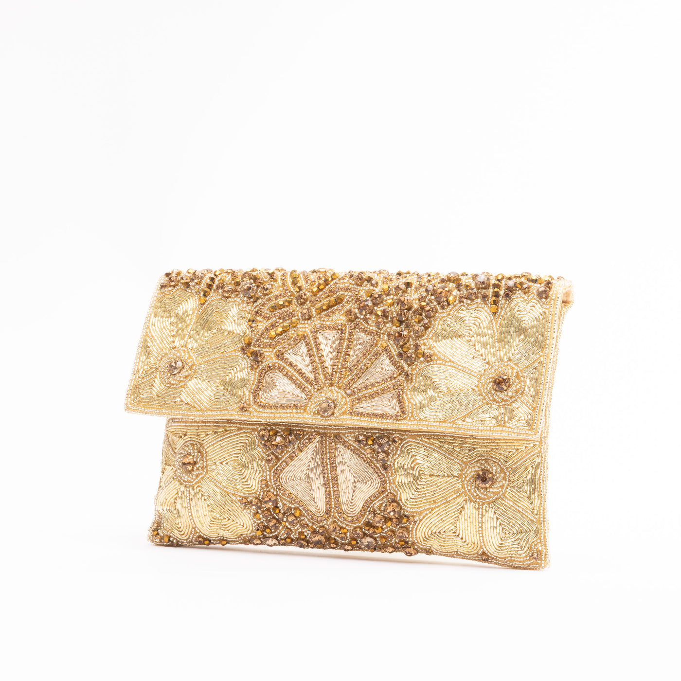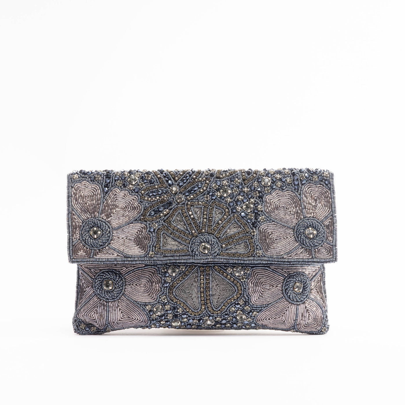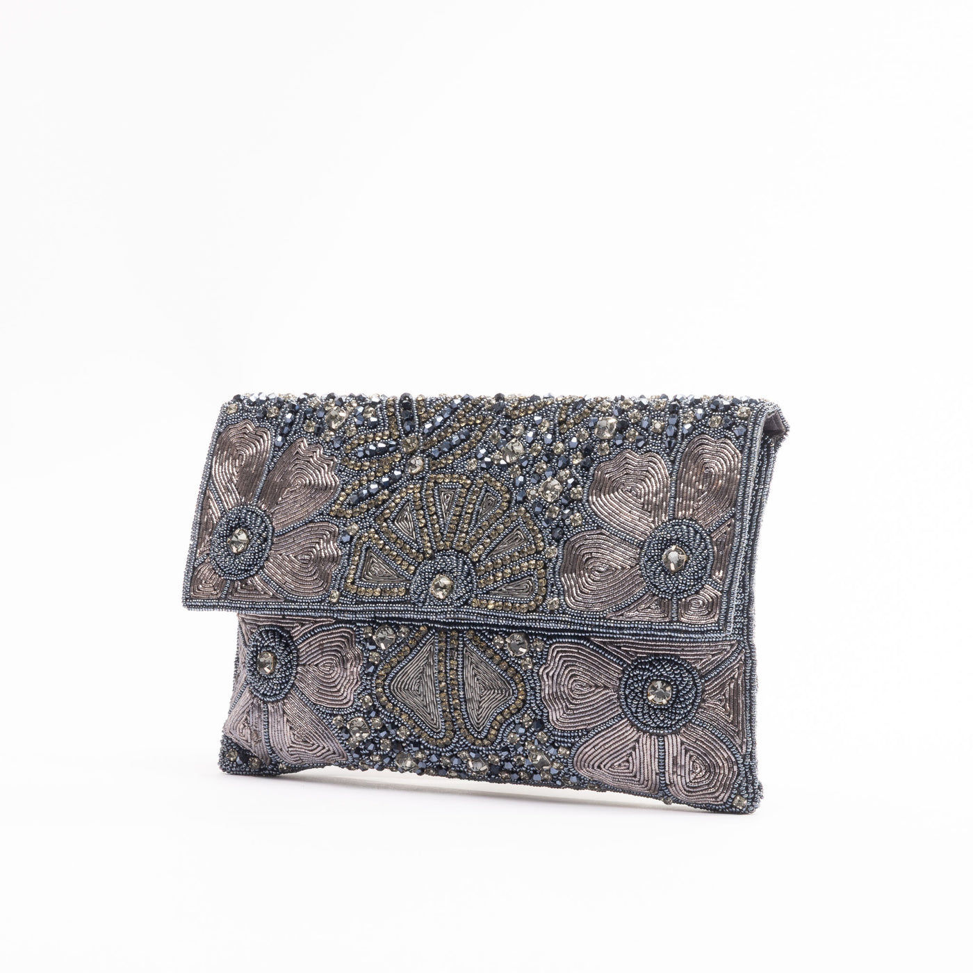 The Debee clutch bag is a celebration of elegance and artisanal finesse, adorned with exquisite floral decorations crafted from luxurious zari. Its sophisticated design and distinctive detailing make it the perfect statement accessory for any refined occasion. Featuring a magnetic press stud fastening and an optional chain strap, this occasion-ready style offers versatility and ease.