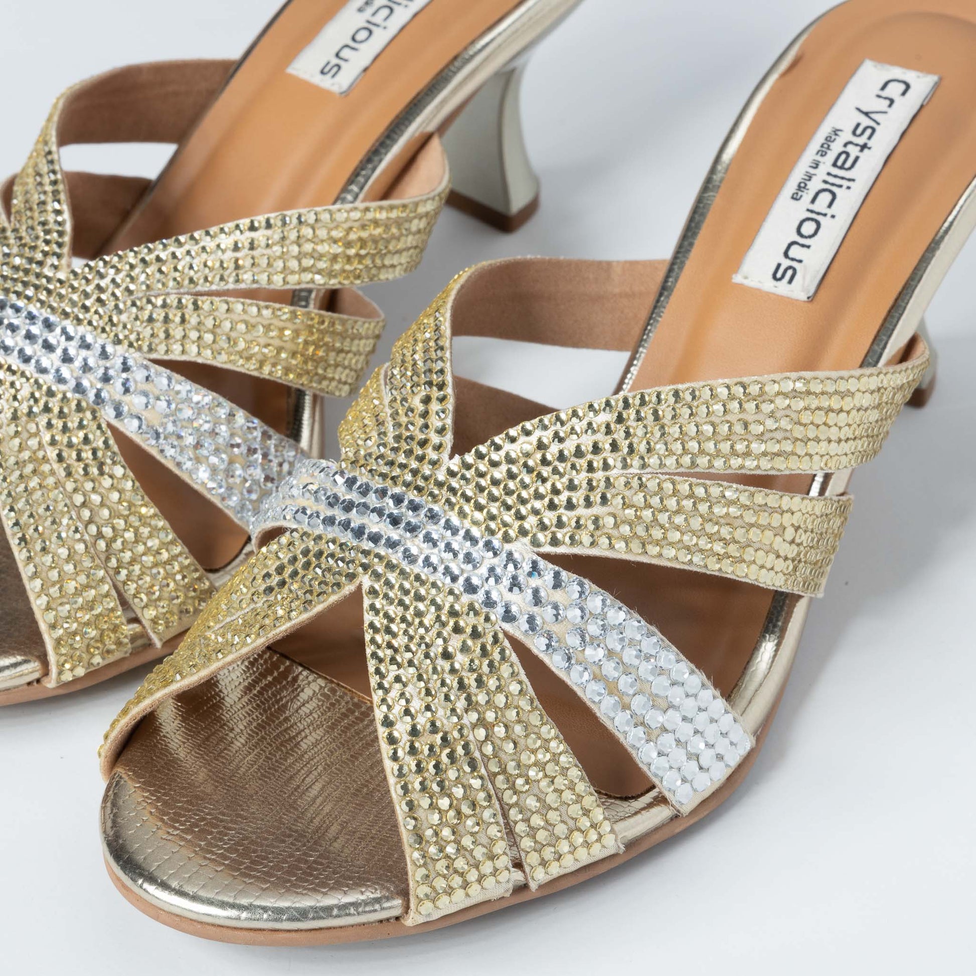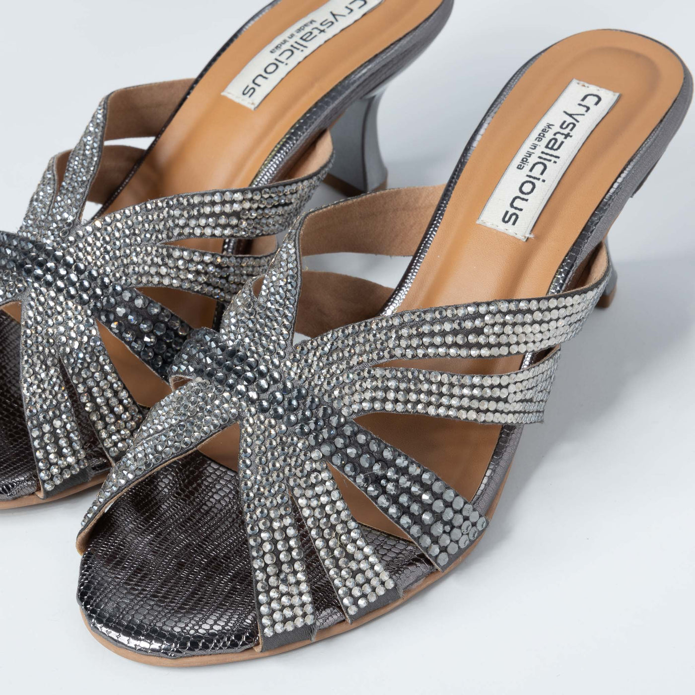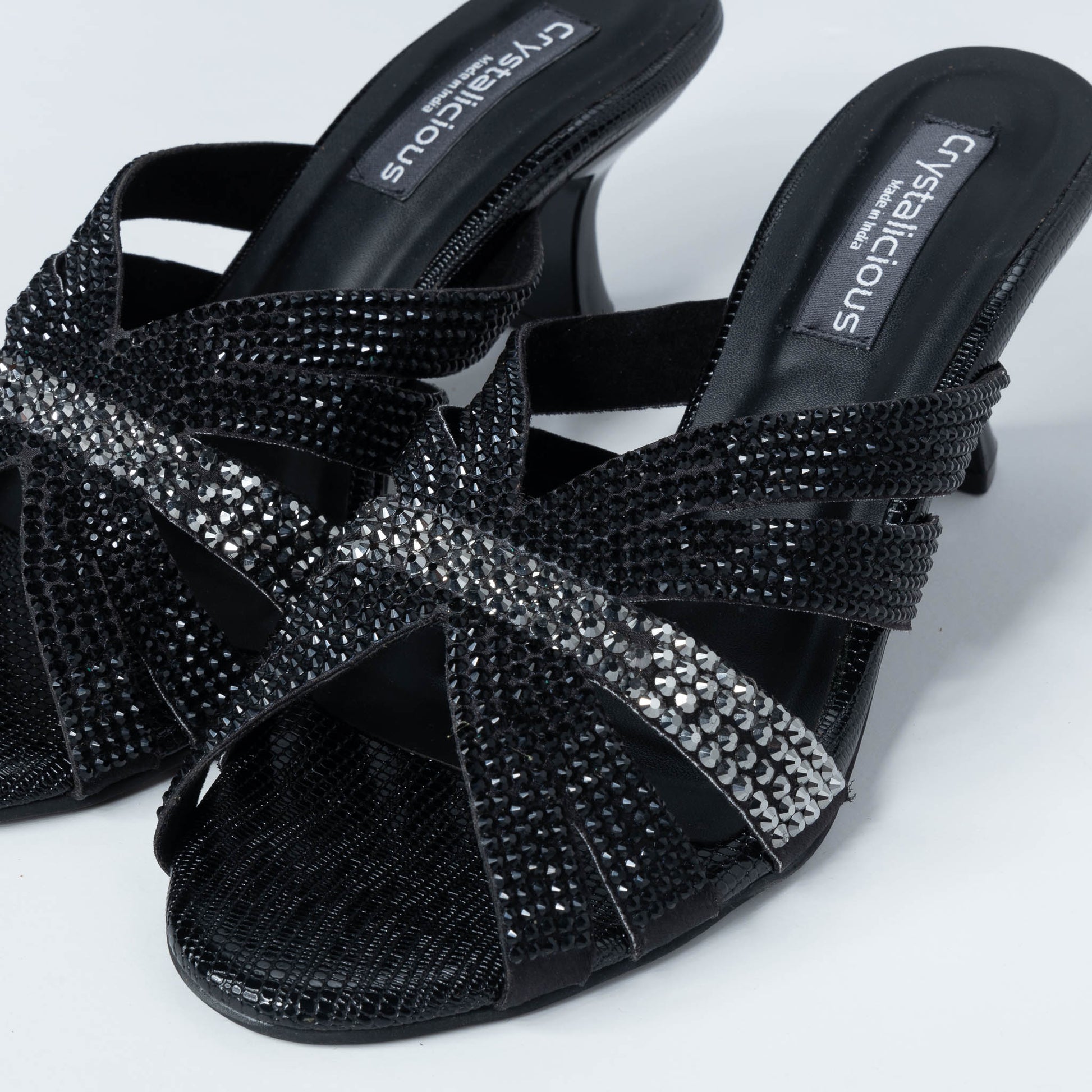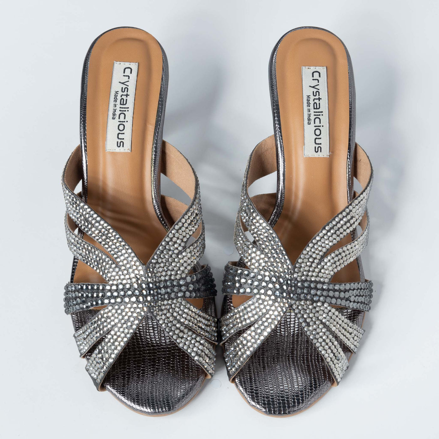 Experience ultimate style with our heel, featuring hotfix rhinestones and crafted from trendy material. Handcrafted with precision by Indian artisans, these durable shoes ensure comfort and fashion. Perfect for elevating your everyday look. Explore the finest from Crystalicious' exclusive collection now.