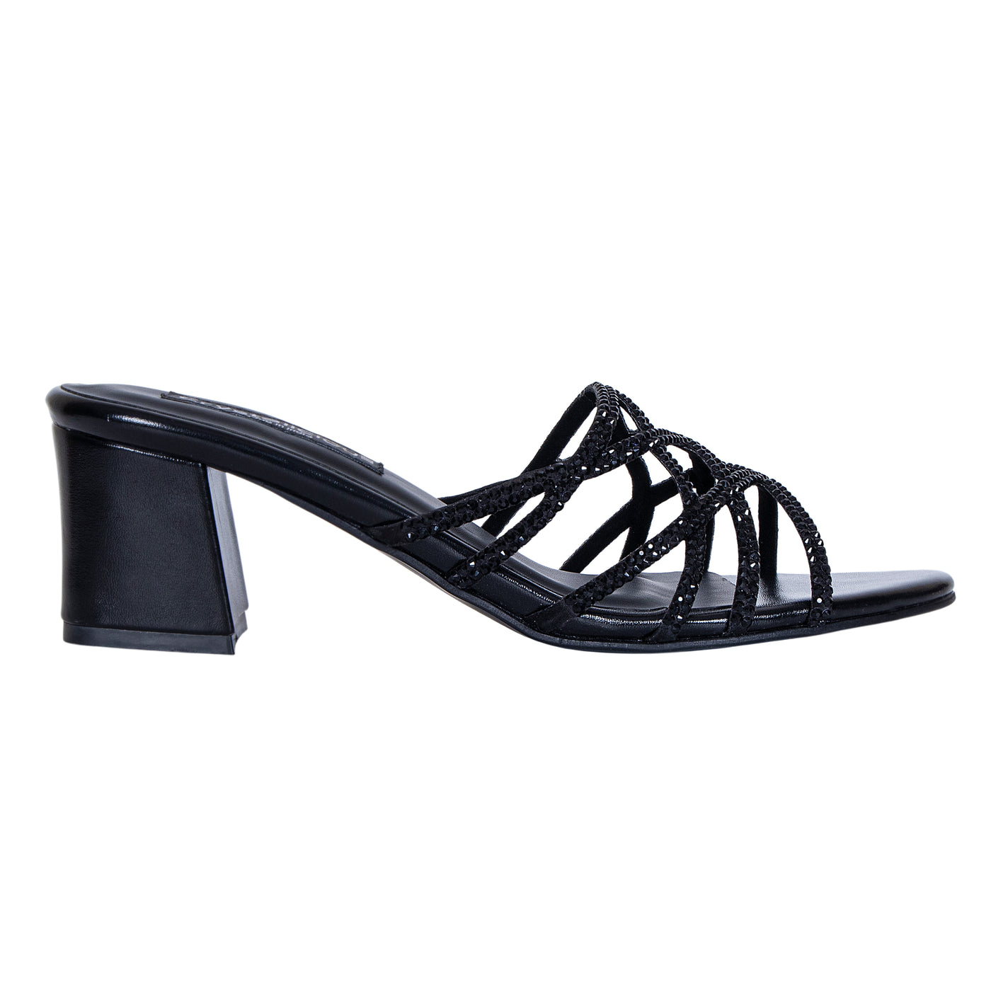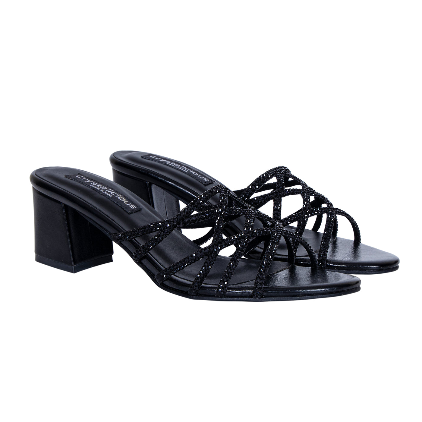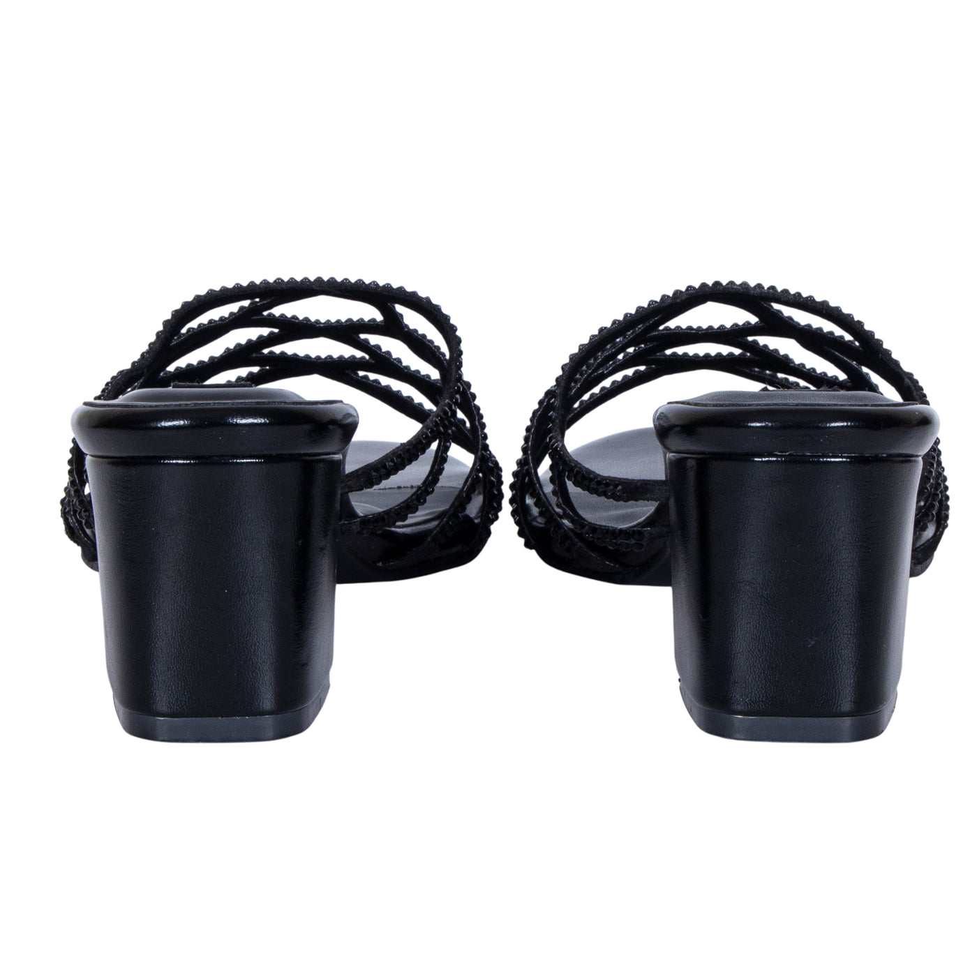 Product Name: Eliza – Black Embellished Block Heel Mule Sandals