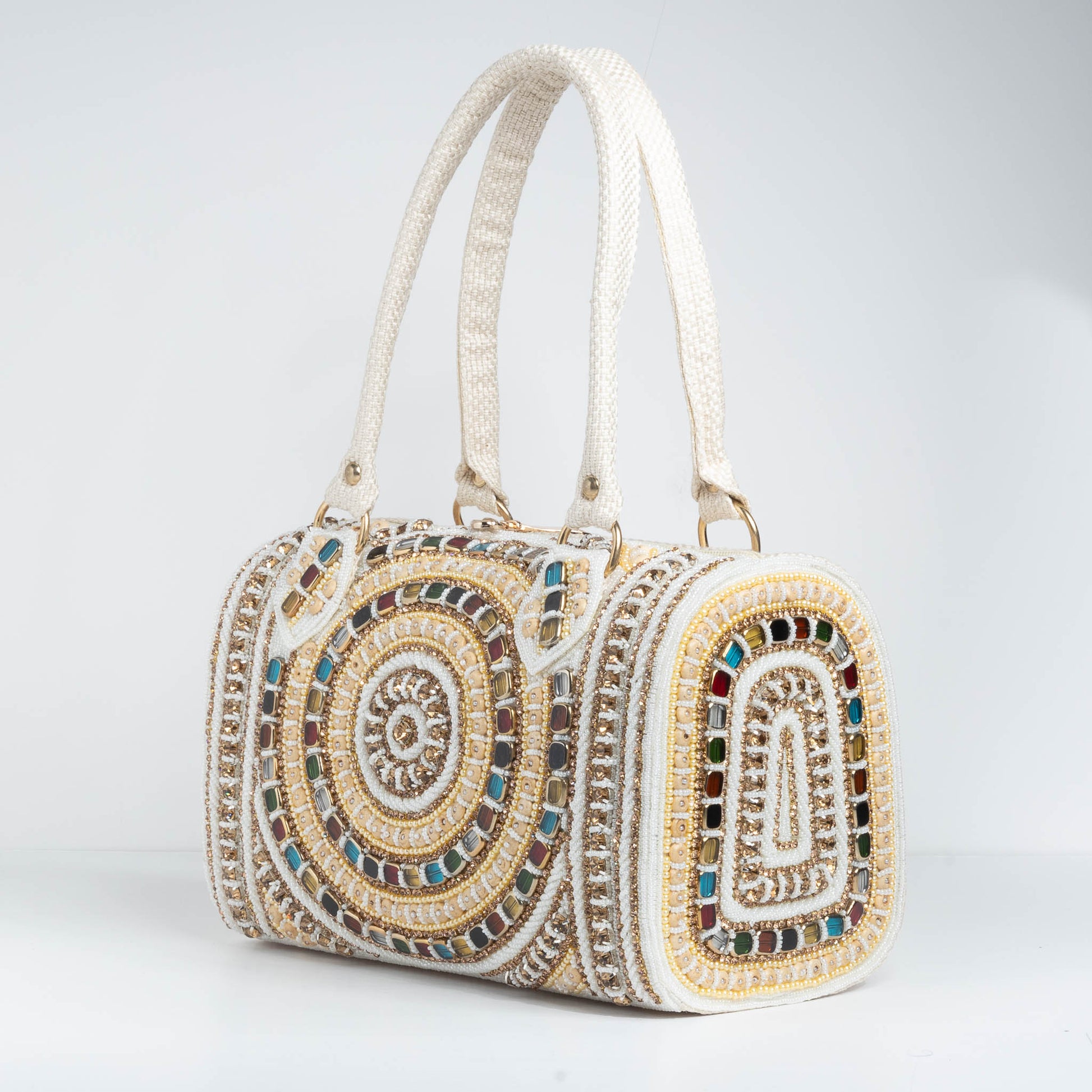 The Elsie Doctor Bag embodies sophistication and eco-conscious luxury. Crafted from synthetic burlap and adorned with hand embroidery featuring crystals and beads, this bag offers a chic twist on the classic doctor bag design. With its elegant style and practical functionality, Elsie is the ideal accessory for modern, fashion-forward individuals, allowing it to strike the perfect balance between chic and comfort.