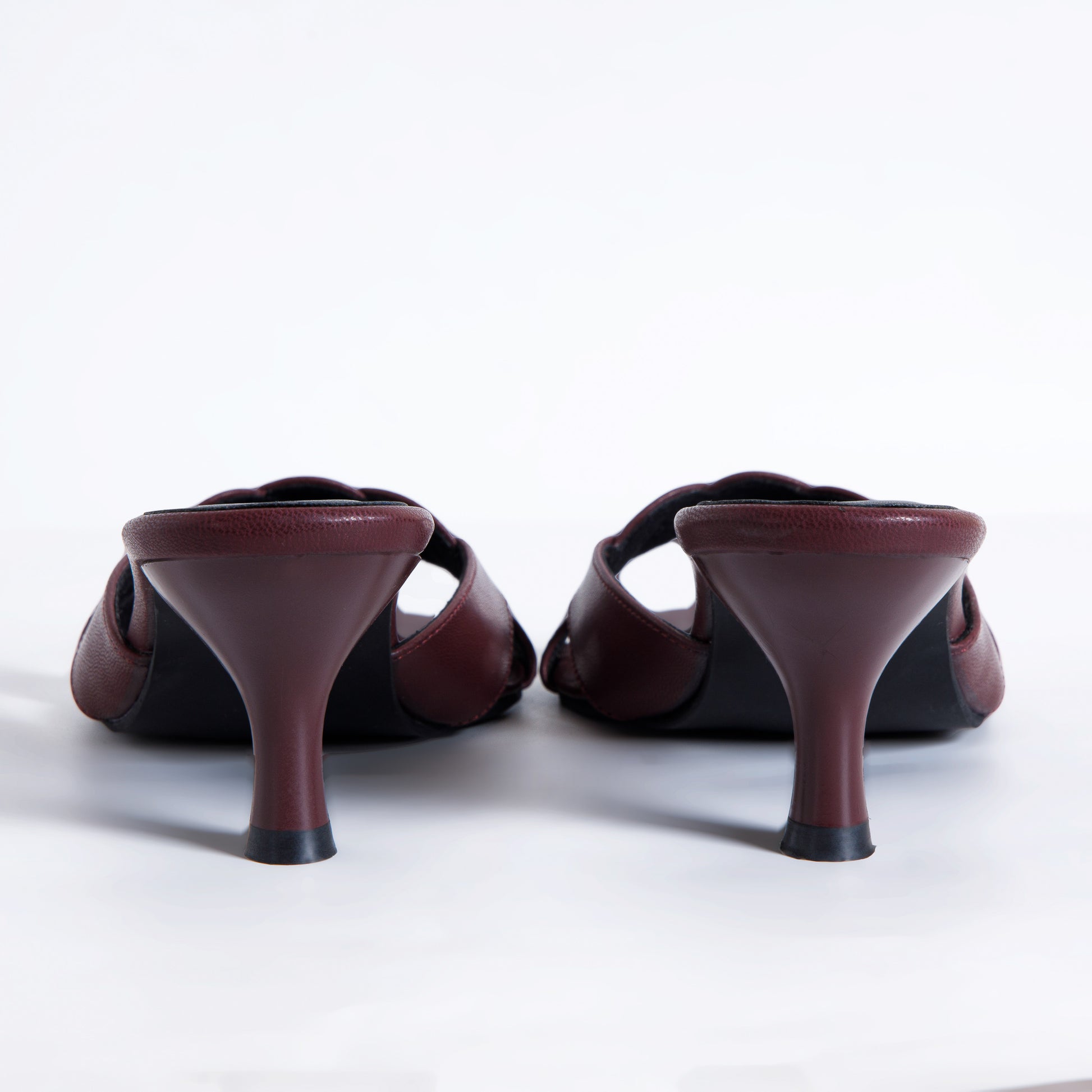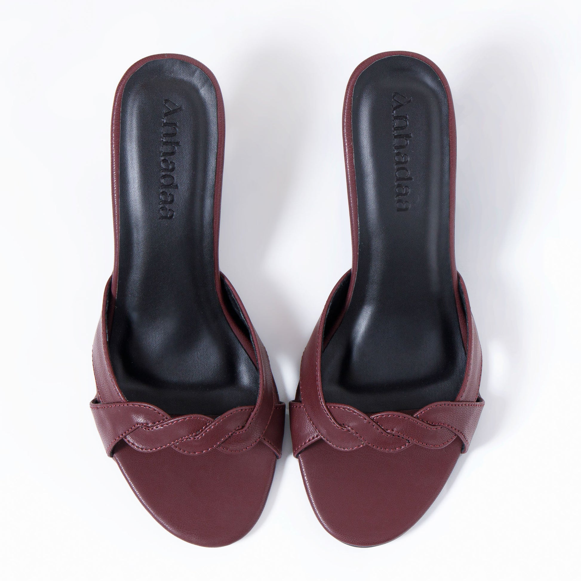 Discover refined elegance with the Eman Maroon Heel Mules, a statement piece crafted for the woman who embraces sophistication and conscious living. Designed in a rich deep maroon hue, these vegan, non-leather mules exude timeless charm and modern femininity.