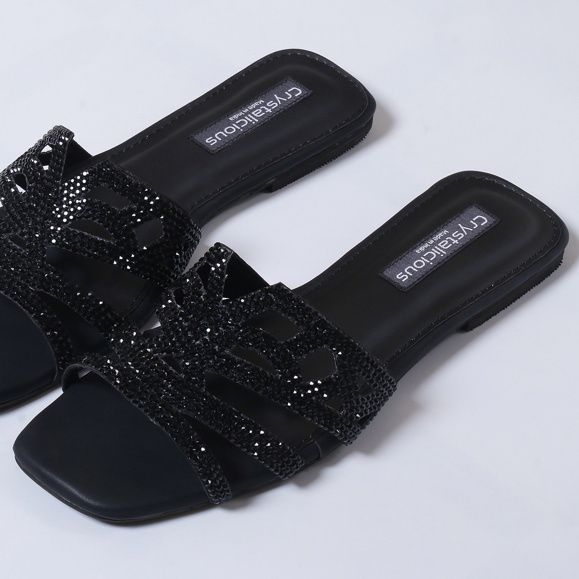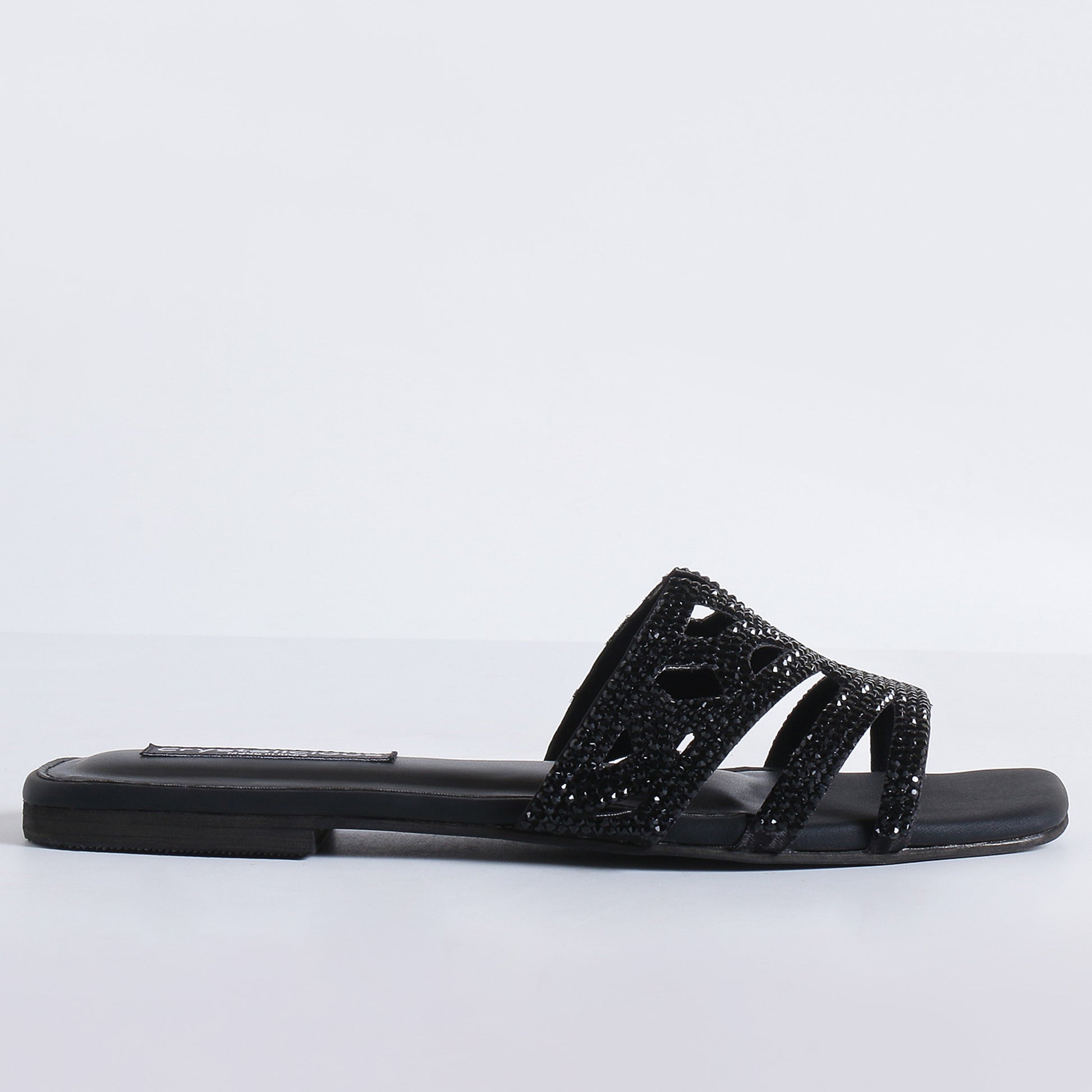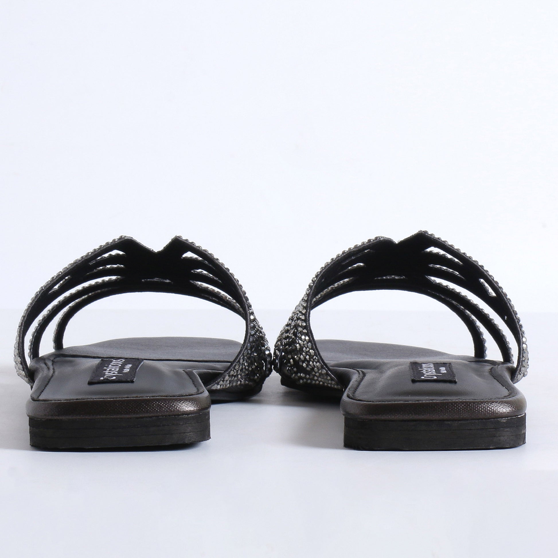 The Ember Flat Slide Sandal blends modern sophistication with effortless comfort, making it a must-have for those who appreciate timeless elegance. Designed with faux leather, a durable rubber sole, and adorned with shimmering rhinestones, Ember Flat offers an elevated yet practical footwear option. With its flat, elegant style, round toe shape, and chic embellishments, this sandal embodies both luxury and ease.