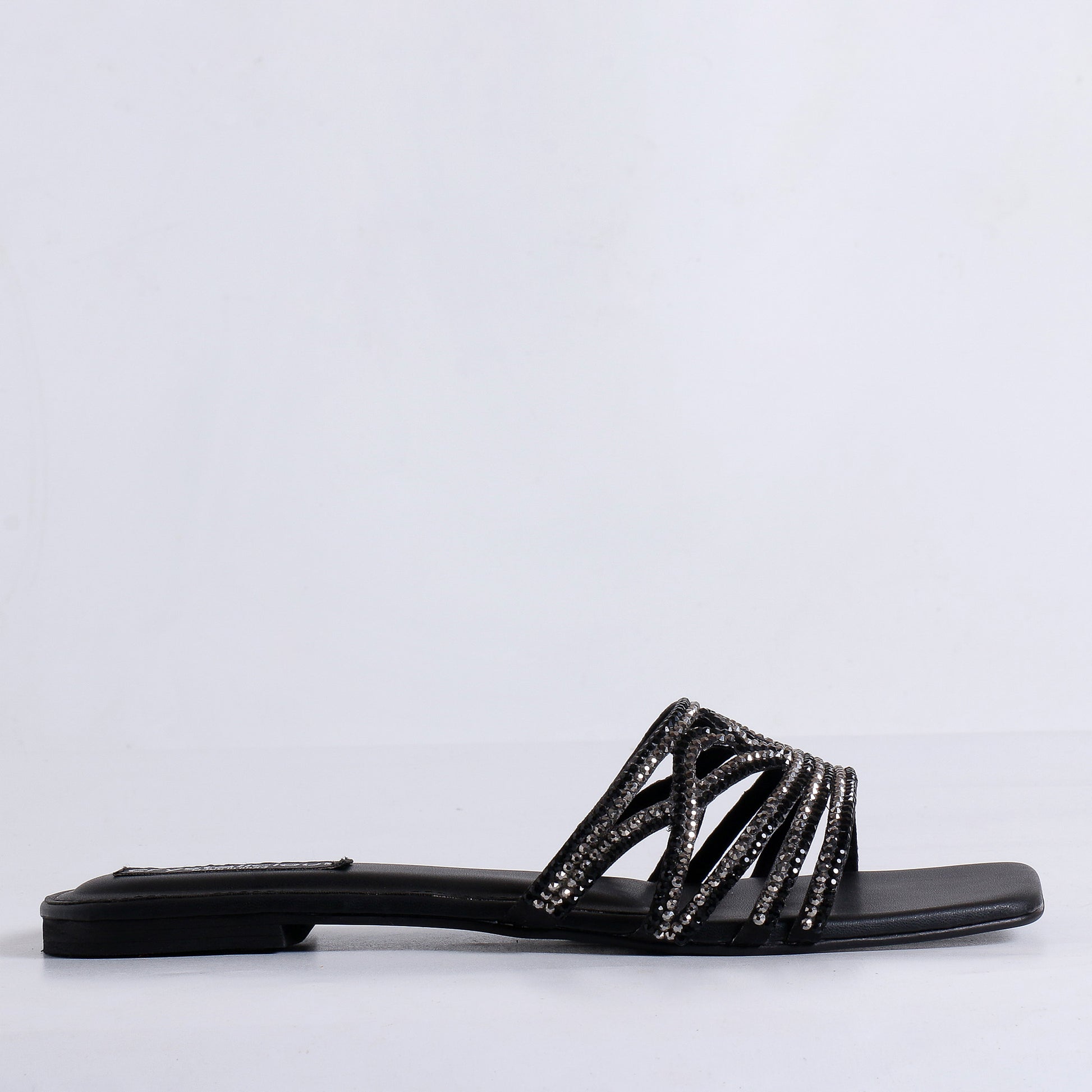 Redefine everyday elegance with the Hemal Flat, a perfect fusion of style, comfort, and sustainability. Handcrafted from premium faux leather and featuring a rubber sole, this flat is adorned with dazzling rhinestones and designed with a chic square toe shape, making it an ideal choice for fashion-forward individuals who value comfort and grace.