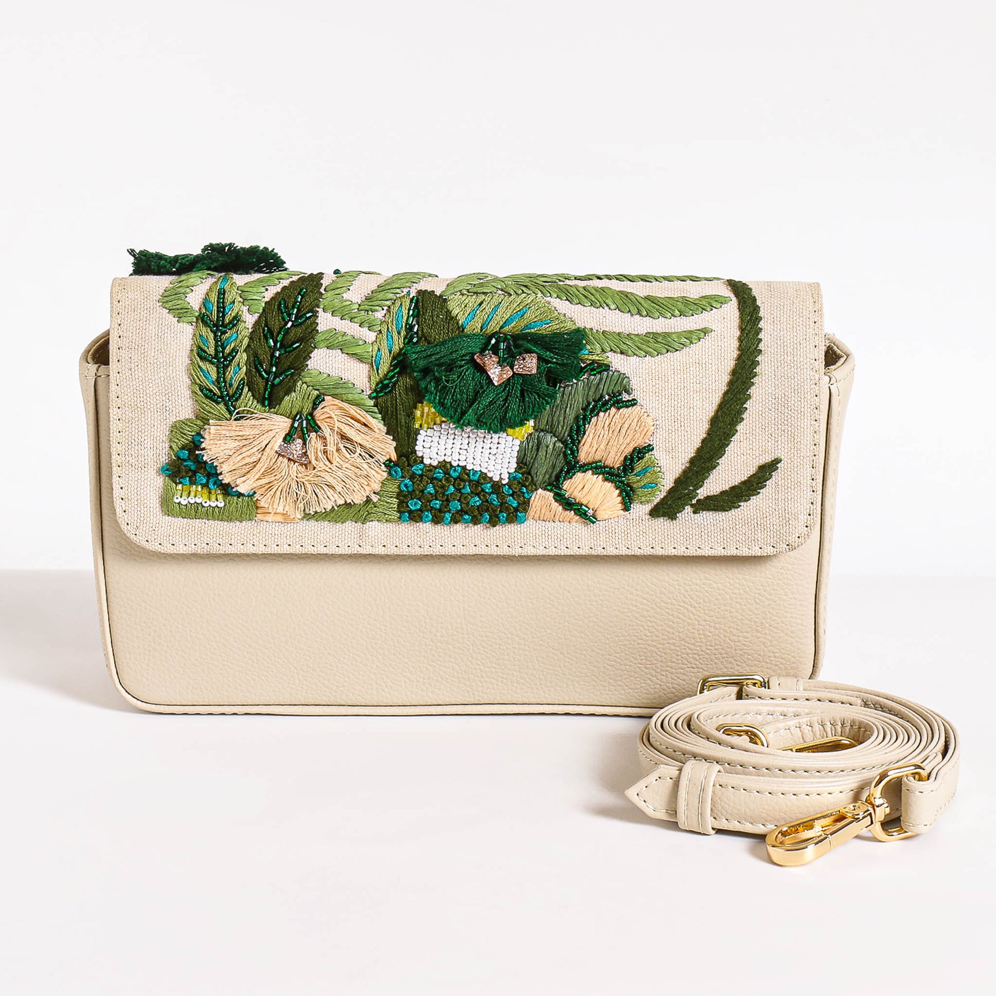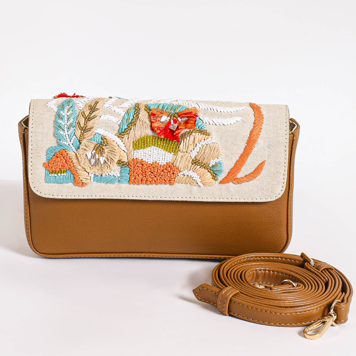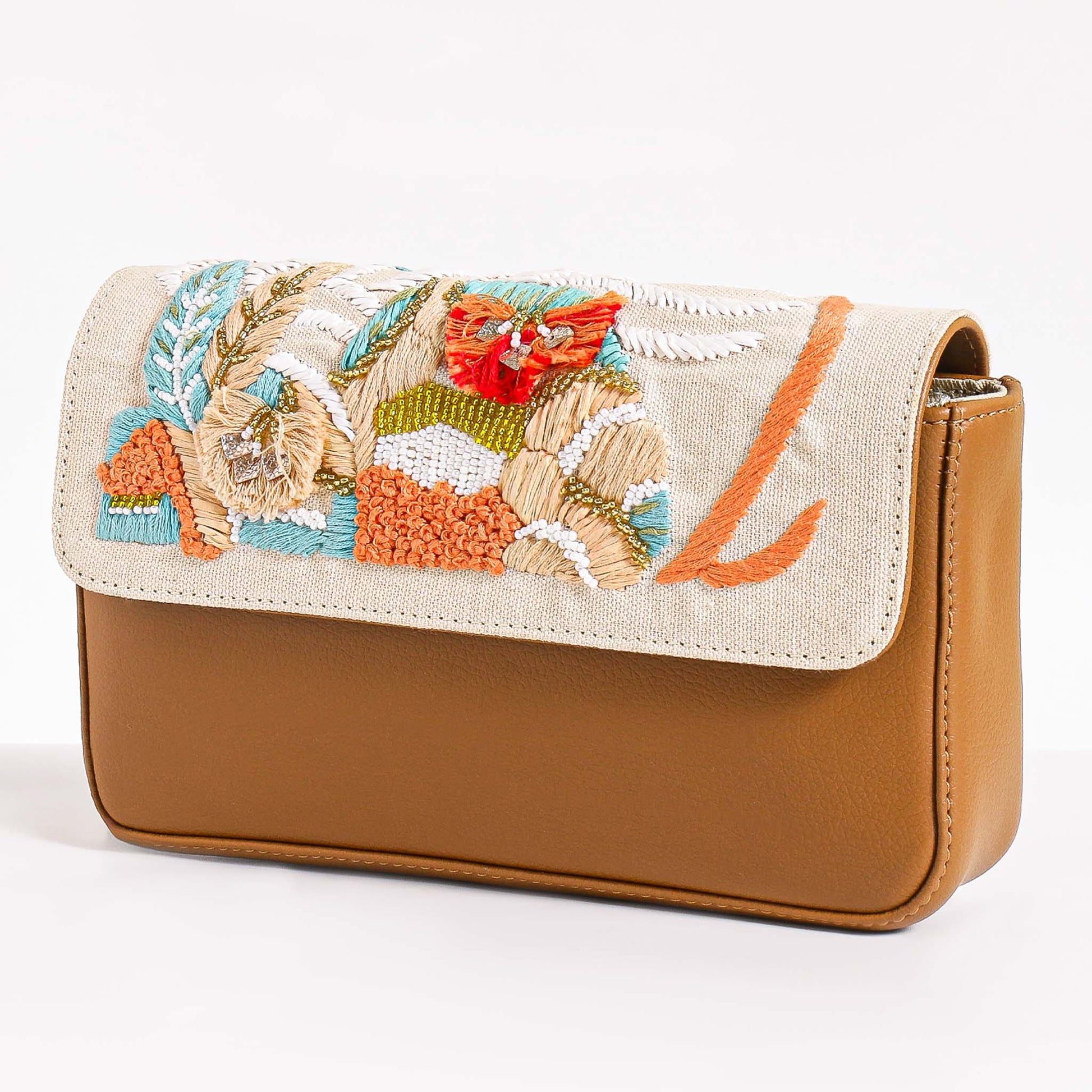 The Kennedy Crossbody Bag is a timeless blend of craftsmanship and modern elegance. Designed for those who seek sophisticated style with an artistic touch, Kennedy is made from premium faux leather and beautifully adorned with hand-embroidered elements featuring beads, thread, and abstract patterns. This eco-friendly, animal-free handbag is a statement piece that seamlessly combines fashion with functionality.