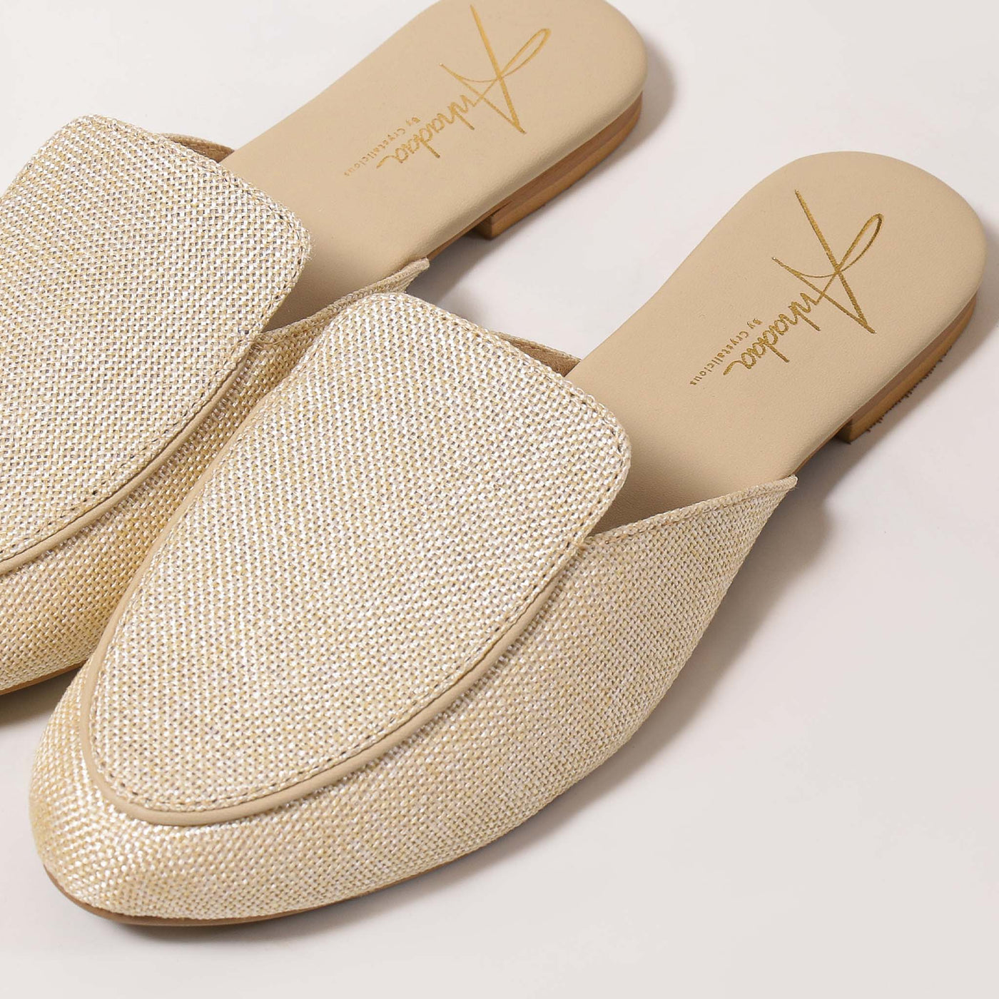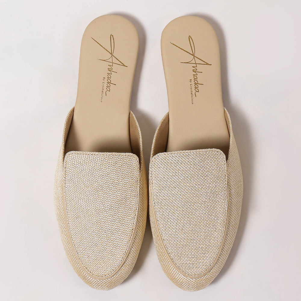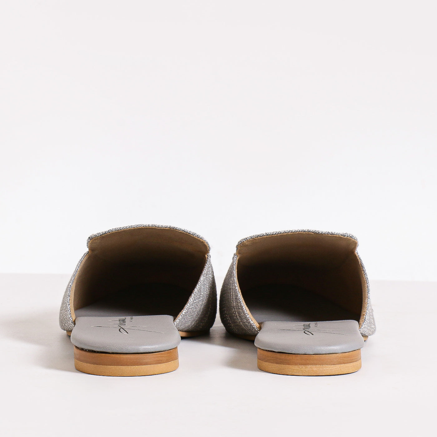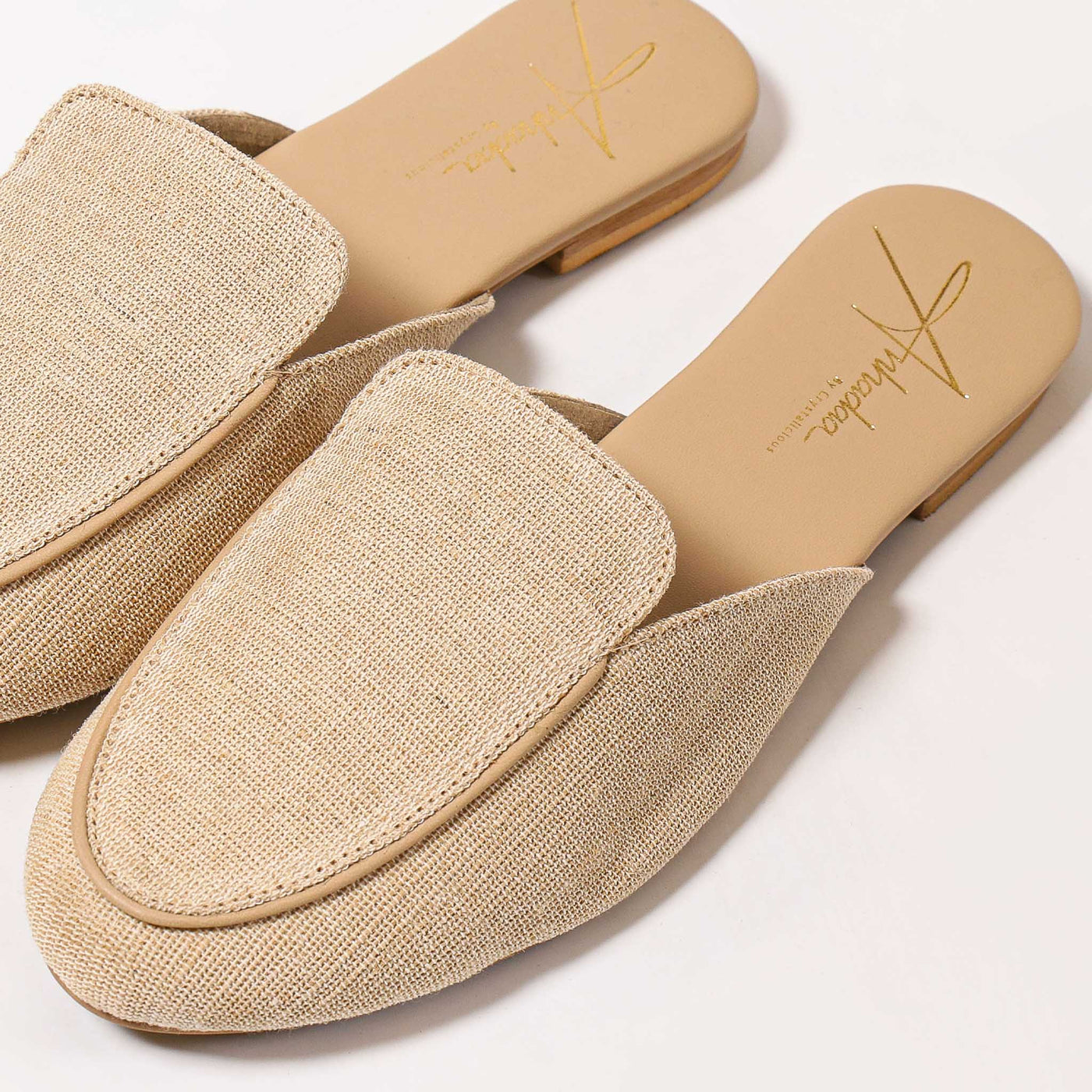 The Loren Mule is the epitome of effortless sophistication, designed for those who appreciate timeless elegance with a touch of sustainable luxury. Crafted with faux leather, a durable rubber sole, and a burlap upper, this mule offers a unique blend of textures, creating a refined yet contemporary look. With its round toe shape, elegant silhouette, and chic detailing, Loren is the perfect choice for those who seek both style and comfort.
