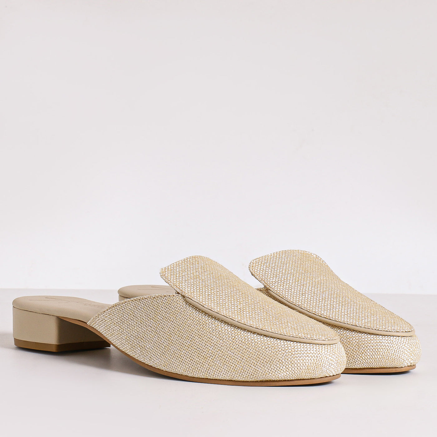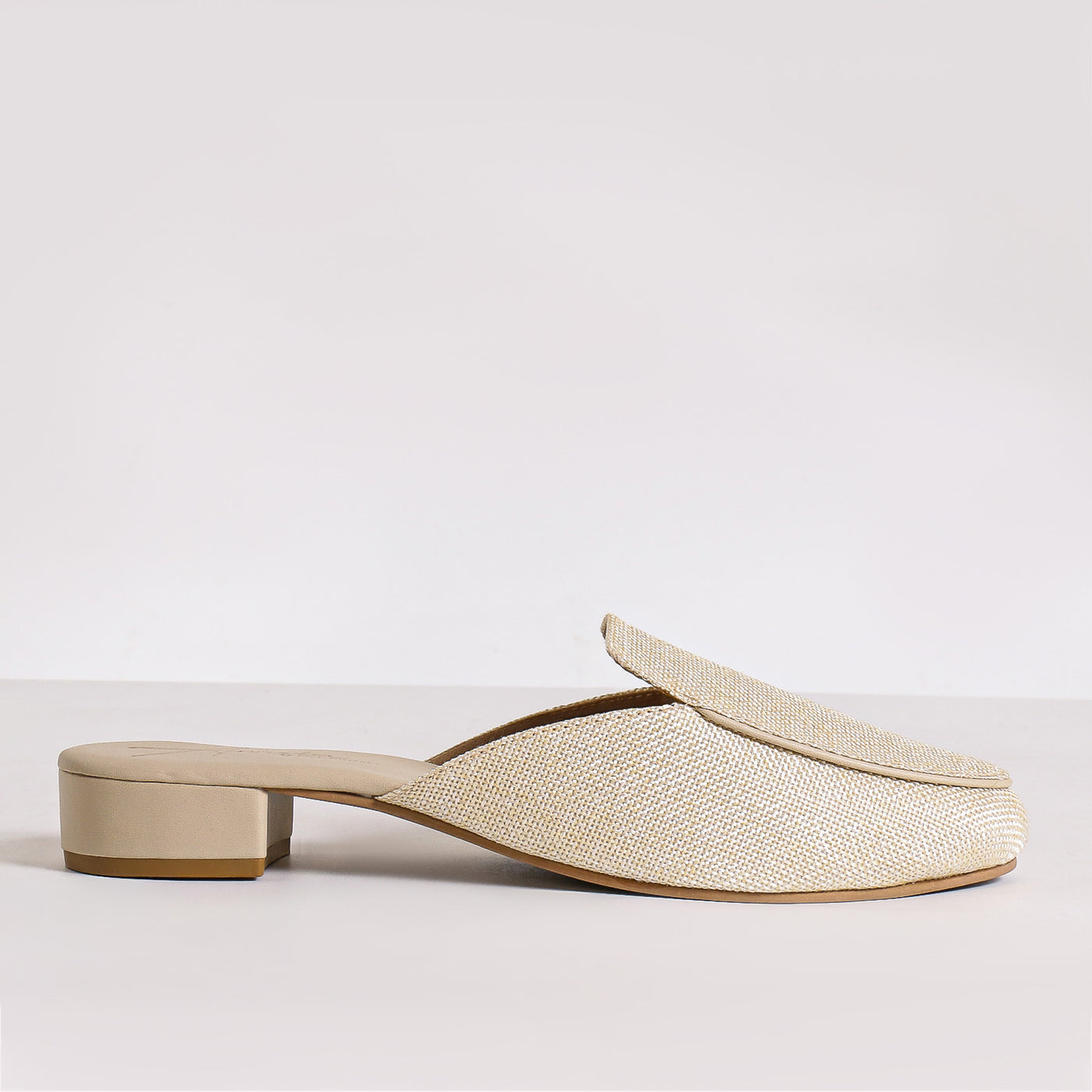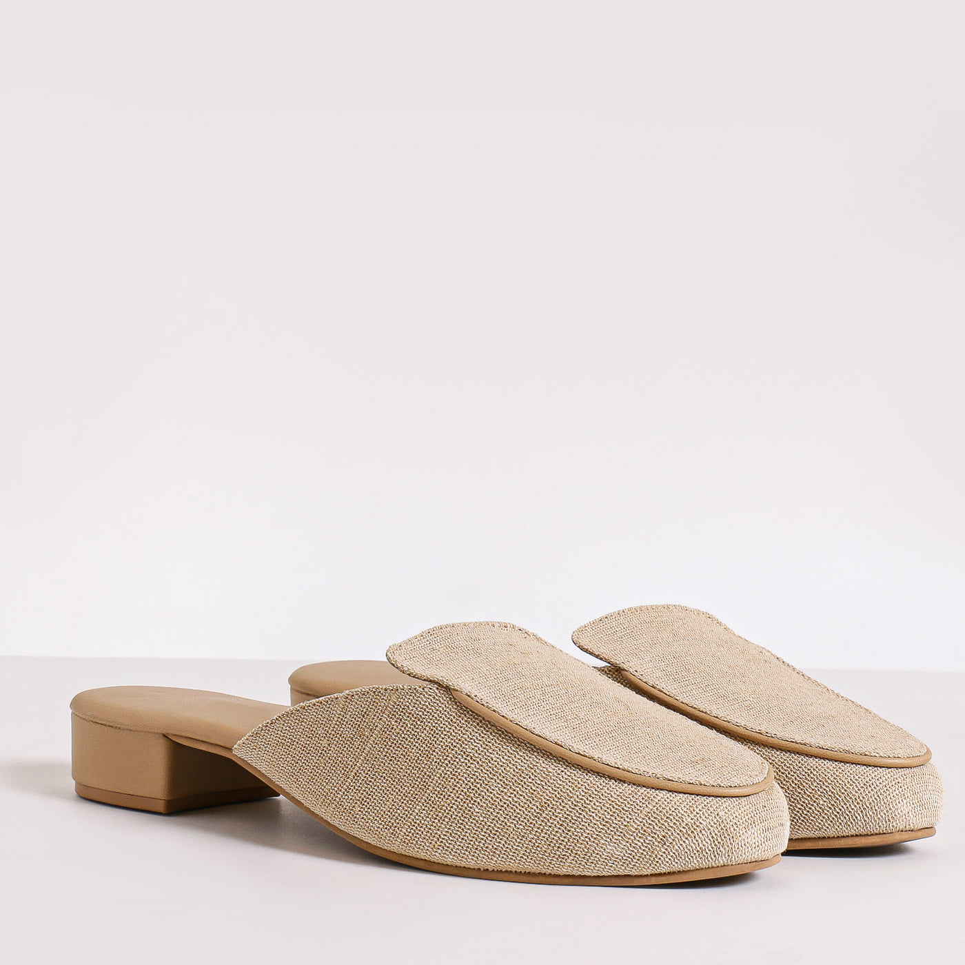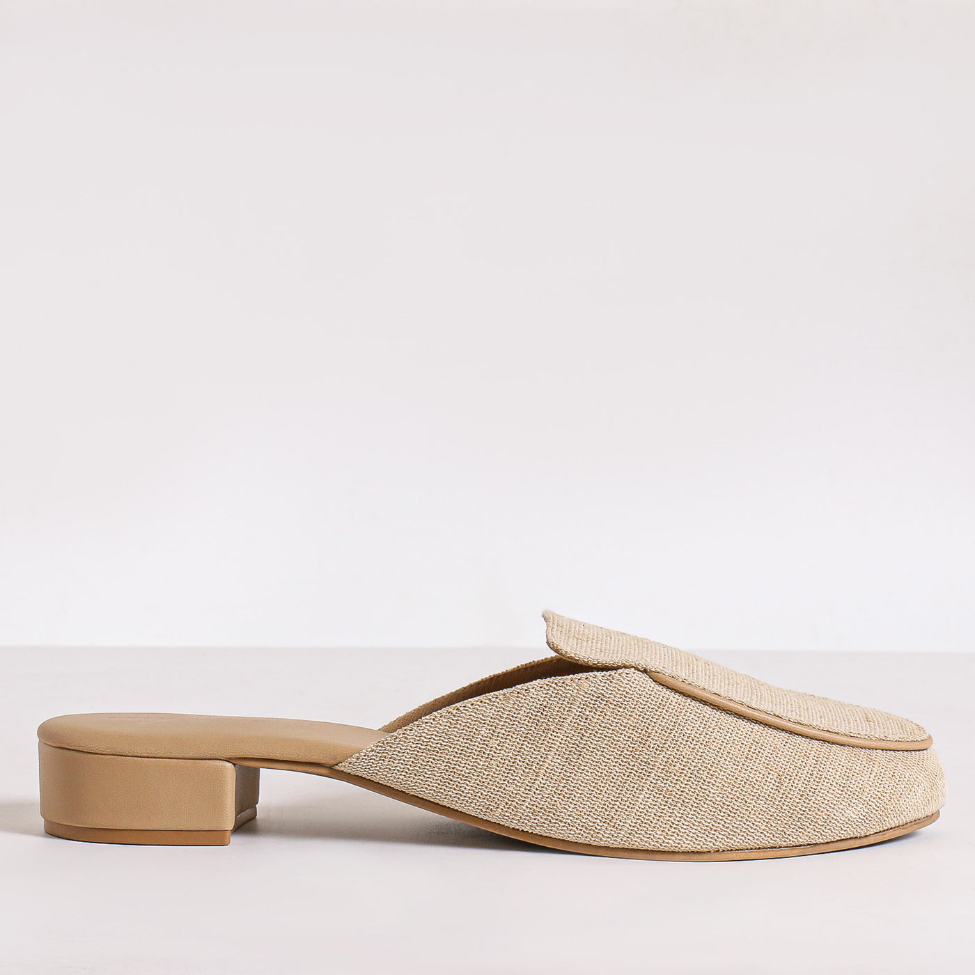 The Loren Heel is the epitome of effortless sophistication, designed for those who appreciate timeless elegance with a touch of sustainable luxury. Crafted with faux leather, a durable rubber sole, and a burlap upper, this Heel offers a unique blend of textures, creating a refined yet contemporary look. With its round toe shape, elegant silhouette, and chic detailing, Loren is the perfect choice for those who seek both style and comfort.