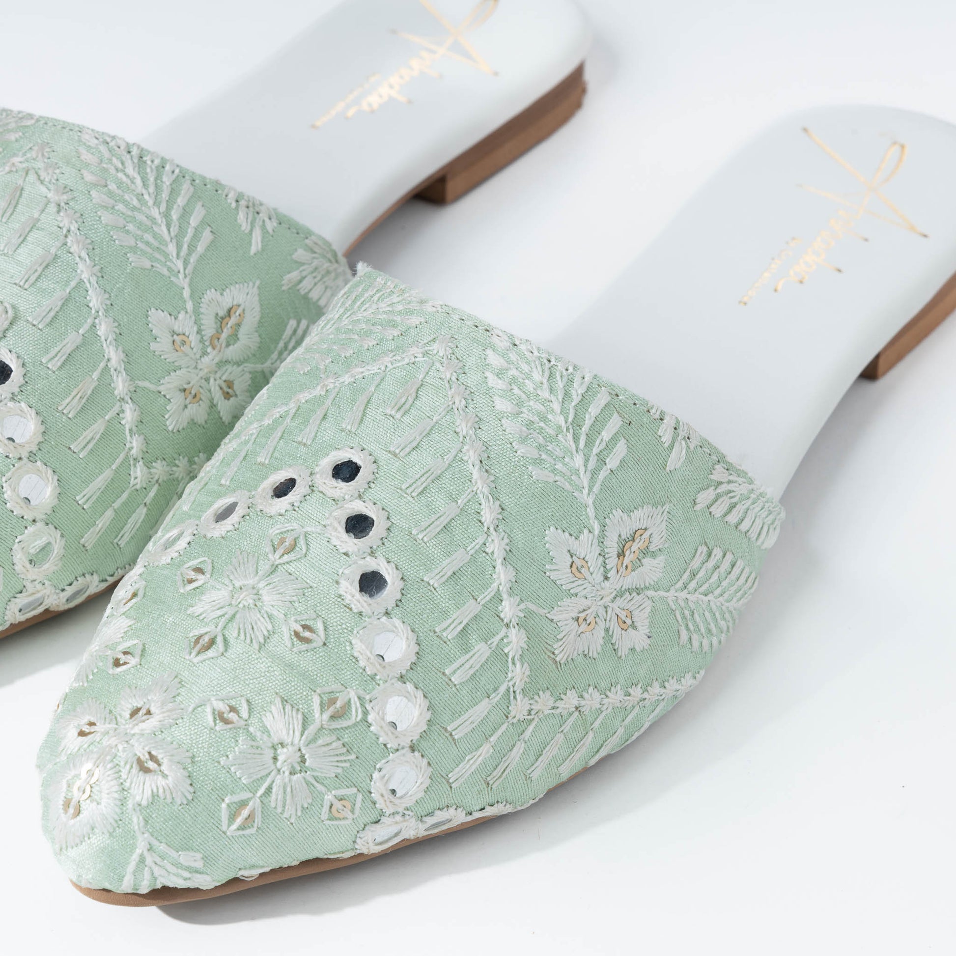 The Mary Mule combines timeless sophistication with eco-conscious design. Crafted with a rubber sole, embroidered fabric, and faux leather, this mule showcases a unique blend of elegance and functionality. Its pointed toe shape and distinctive details make Mary the perfect choice for adding a chic touch to any outfit.