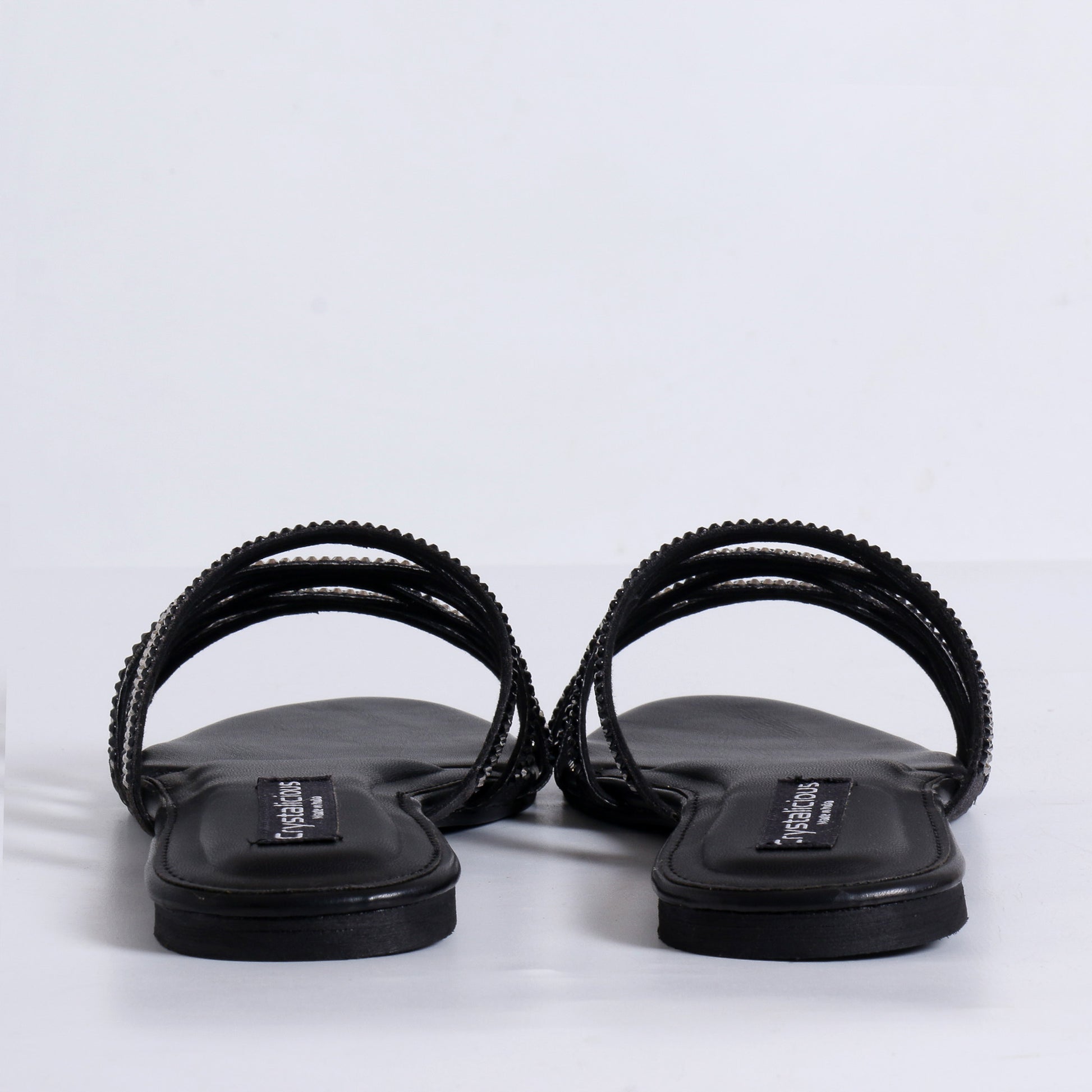 Step into elegance with the Maya Flat Slide Sandals, a seamless blend of eco-conscious craftsmanship and sparkling sophistication. Designed with vegan leather, a rubber sole, and adorned with shimmering rhinestones, Maya is your go-to footwear for effortless comfort and glamour.