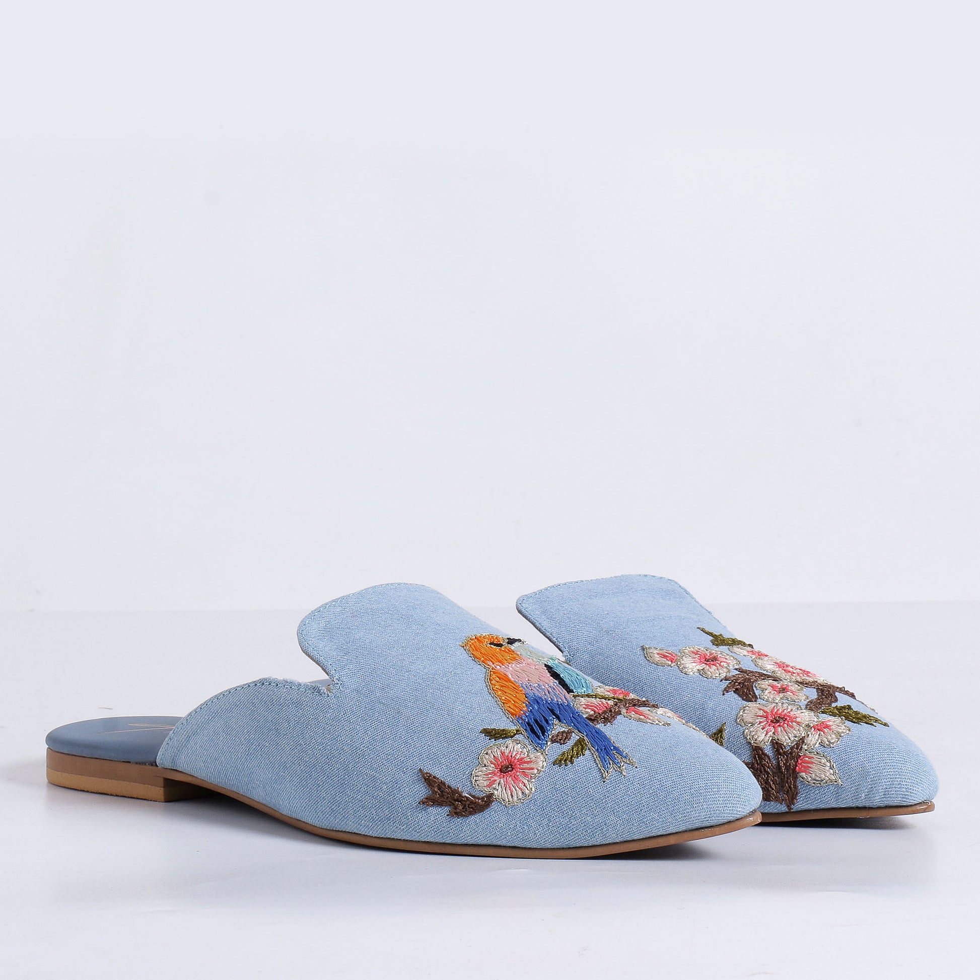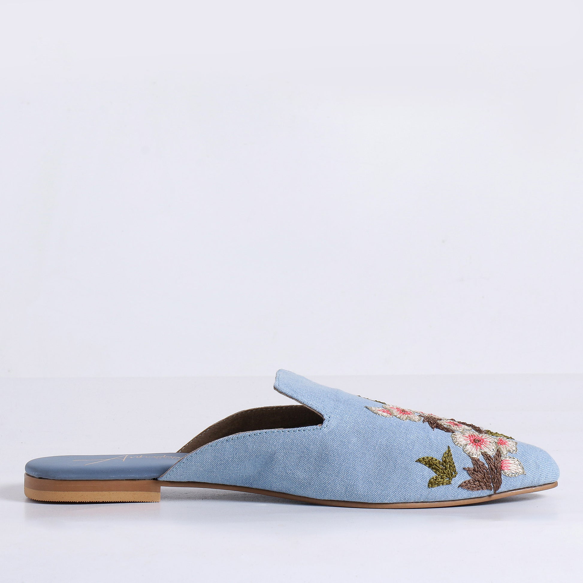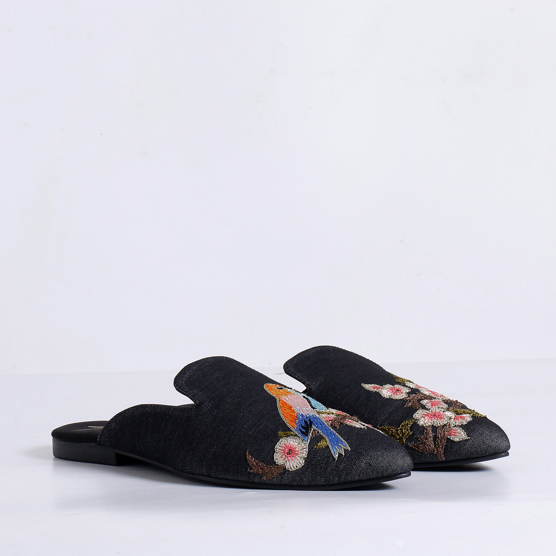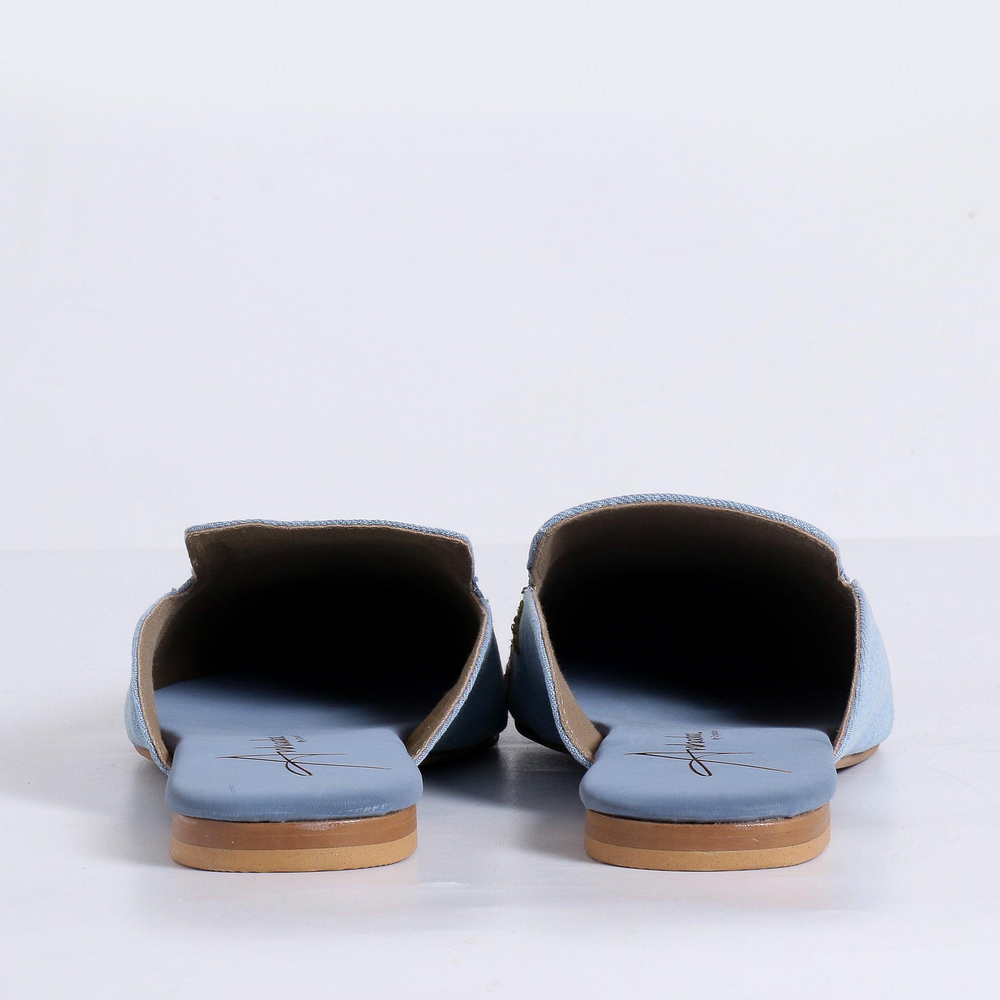 Step into style with our fashionable mule flats, featuring metallic embroidery and intricate thread art on smooth textile. Crafted with accuracy by skilled Indian makers, these sturdy shoes offer both ease and elegance. Perfect for any occasion. Explore the exclusive Crystalicious collection now.