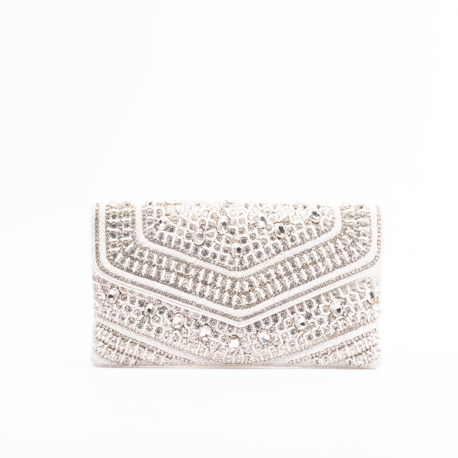 Meet Naomi — where timeless grace meets artistic brilliance. This elegant clutch is embellished to perfection with shimmering glass beadwork, creating a captivating design that radiates sophistication. Crafted with precision and care, Naomi brings a touch of glamour to every outfit, making it the perfect companion for weddings, soirées, or elegant evenings out.