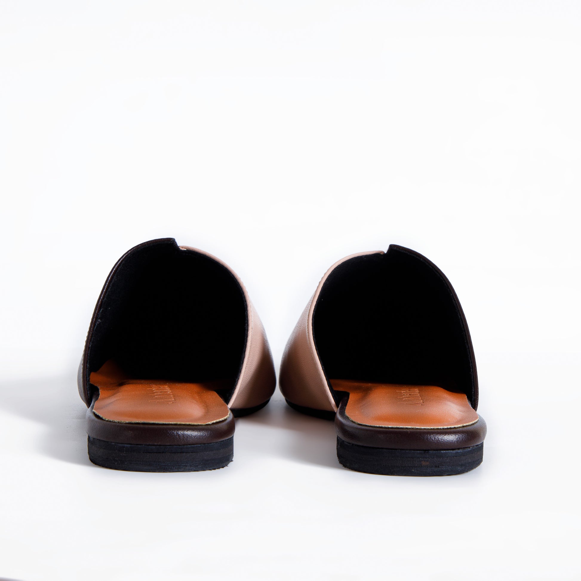 Featuring a modern chocolate brown and nude beige color block design, Nimishi captures the essence of understated luxury. The sleek pointed toe silhouette elongates your look, while the padded insole ensures unmatched comfort for all-day wear. Designed for the modern woman, these slip-on mules transition seamlessly from office chic to evening ease.