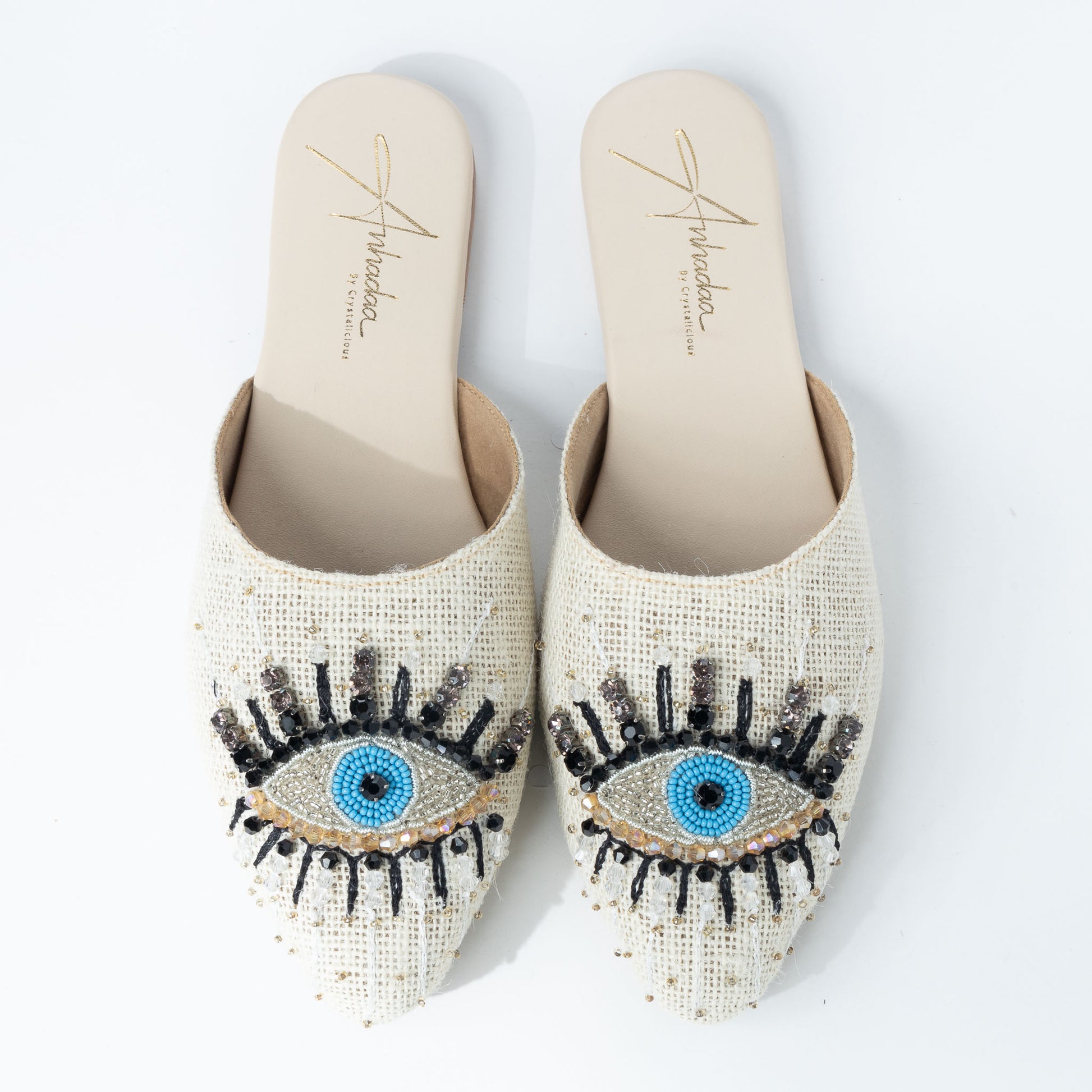 Step into style with our fashionable mule, featuring natural jute Raffia work and crystal embellishments. Crafted with accuracy by skilled Indian makers, these sturdy shoes offer both ease and elegance. Perfect for any occasion. Explore the exclusive Crystalicious collection now.