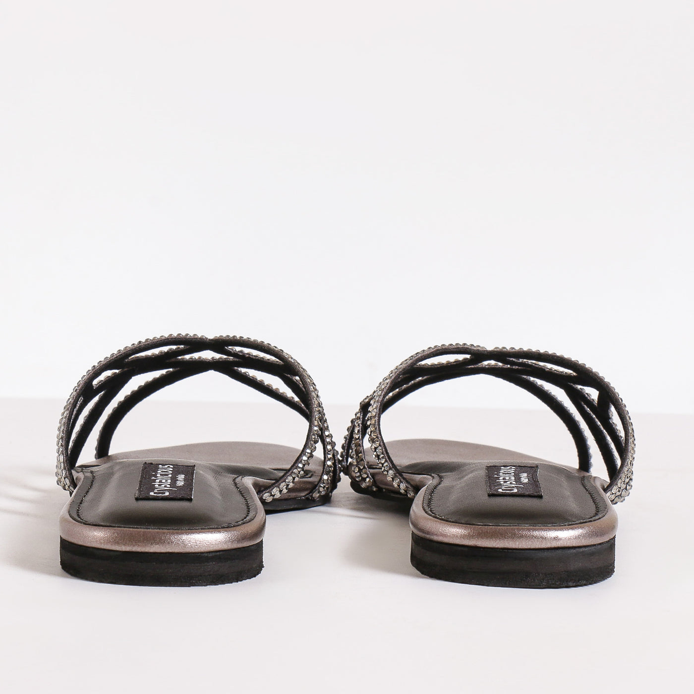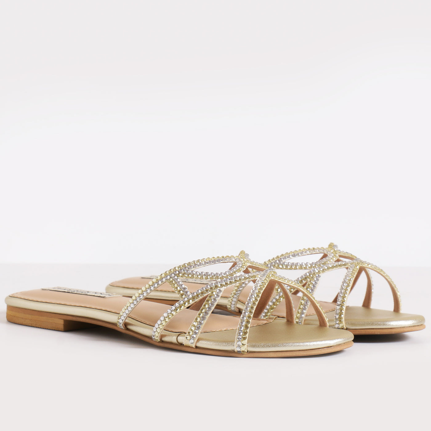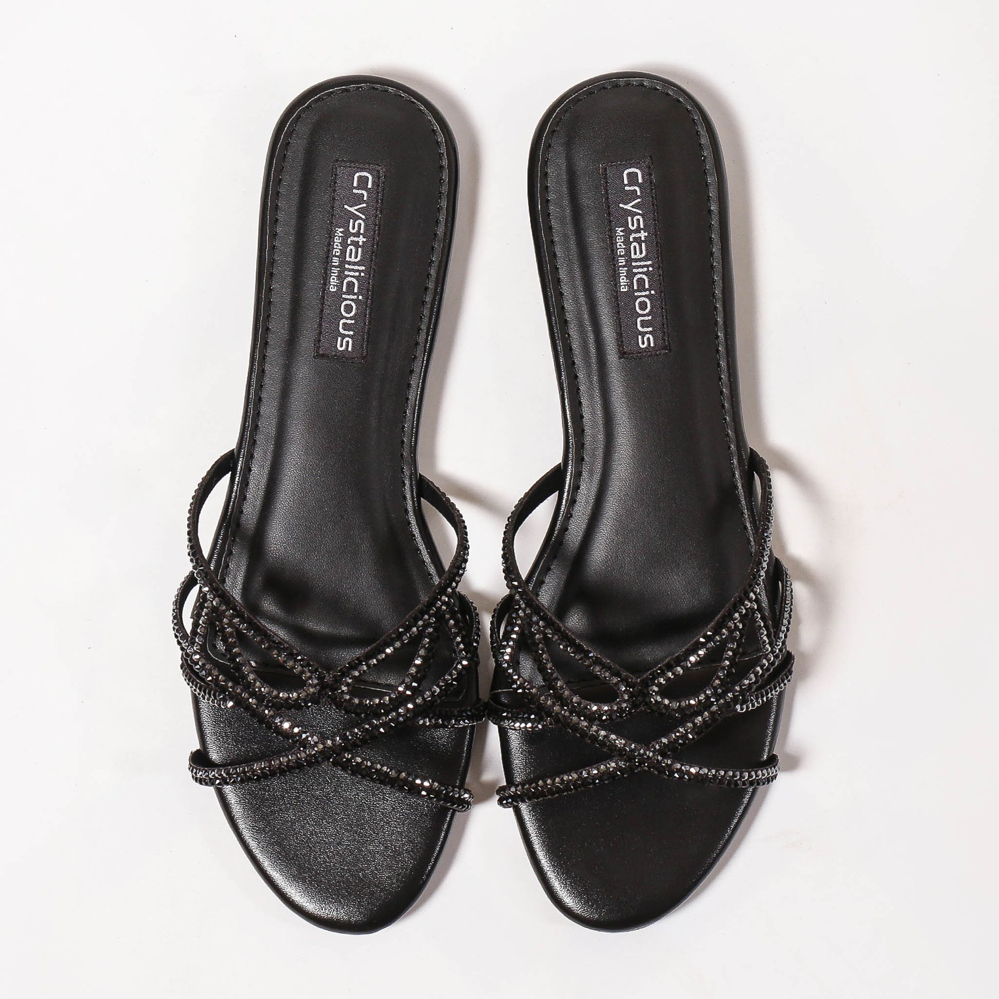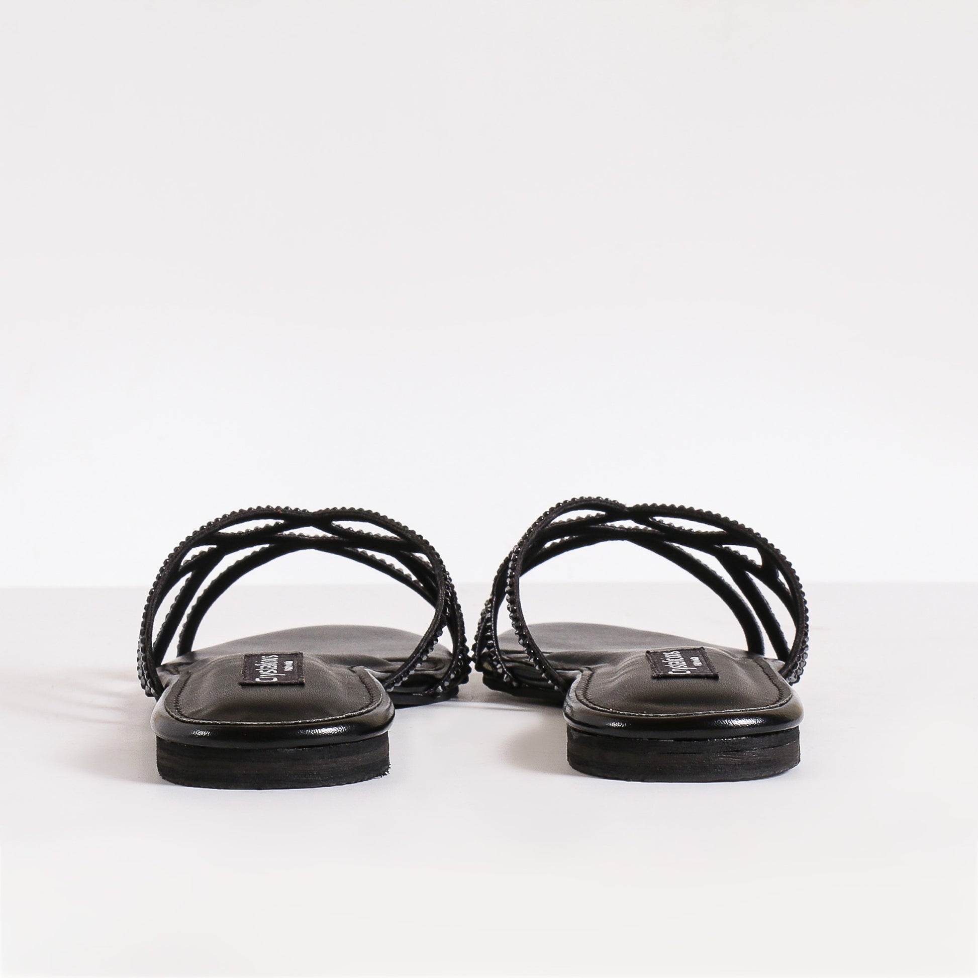 The Nyra Slide Sandal is a stunning fusion of elegance and ease, designed for those who appreciate refined style without compromising on comfort. Handcrafted with faux leather, a durable rubber sole, and adorned with shimmering rhinestones, Nyra exudes sophistication. With its flat, elegant design, round toe shape, and dazzling embellishments, this sandal is the perfect accessory for any occasion.