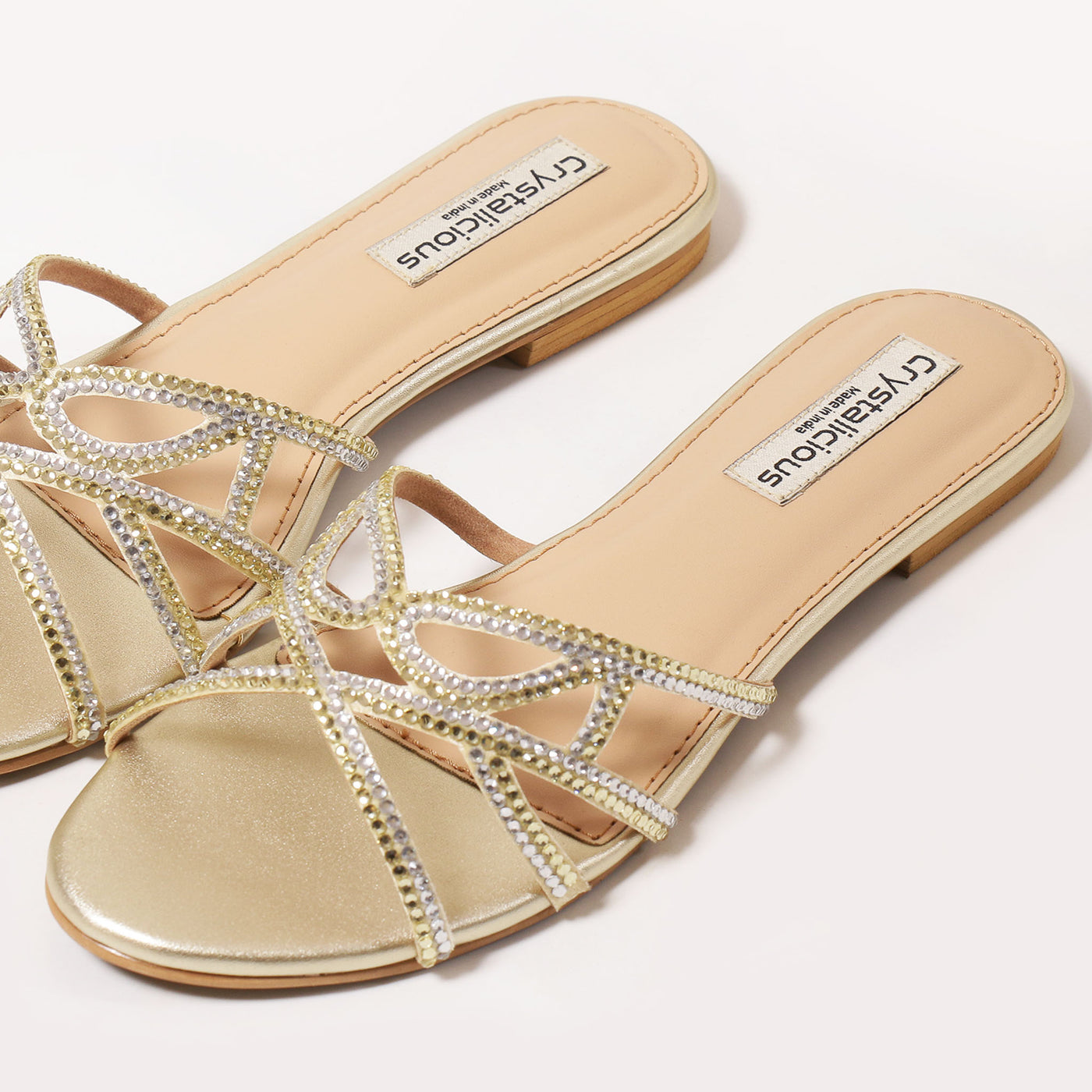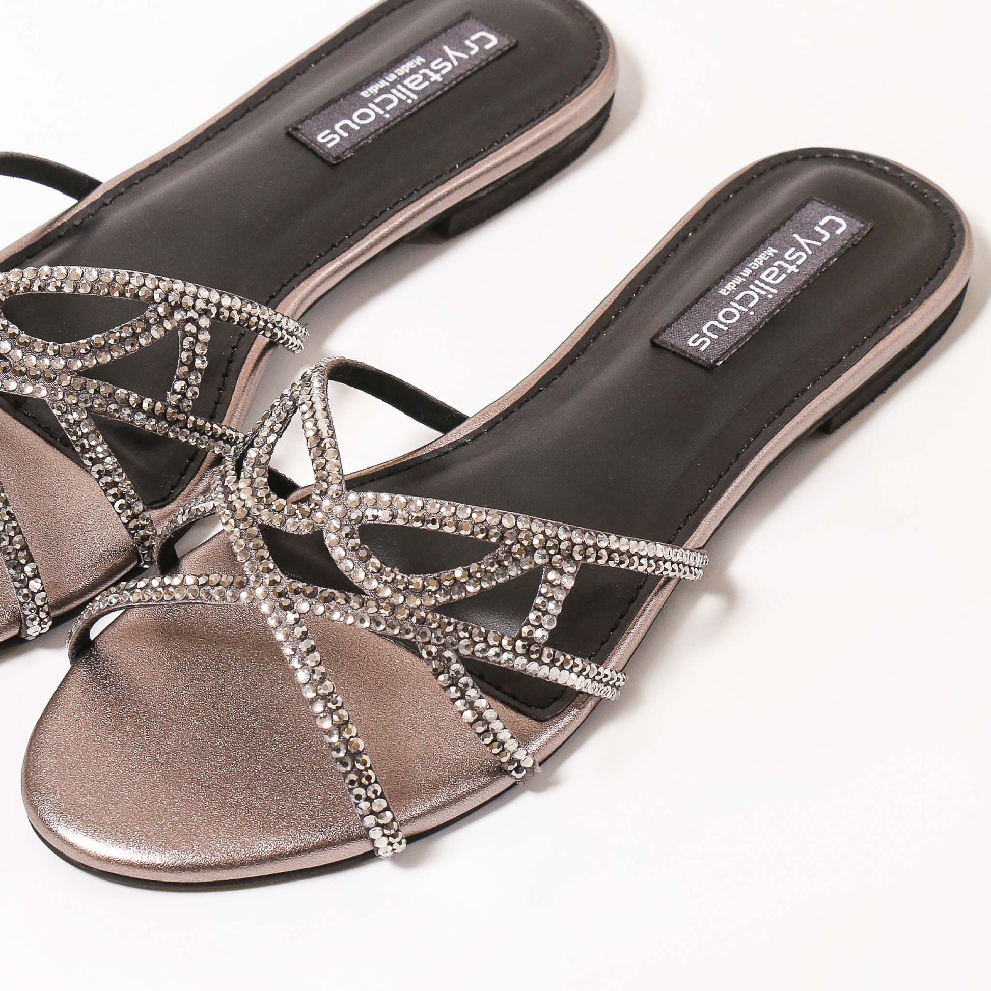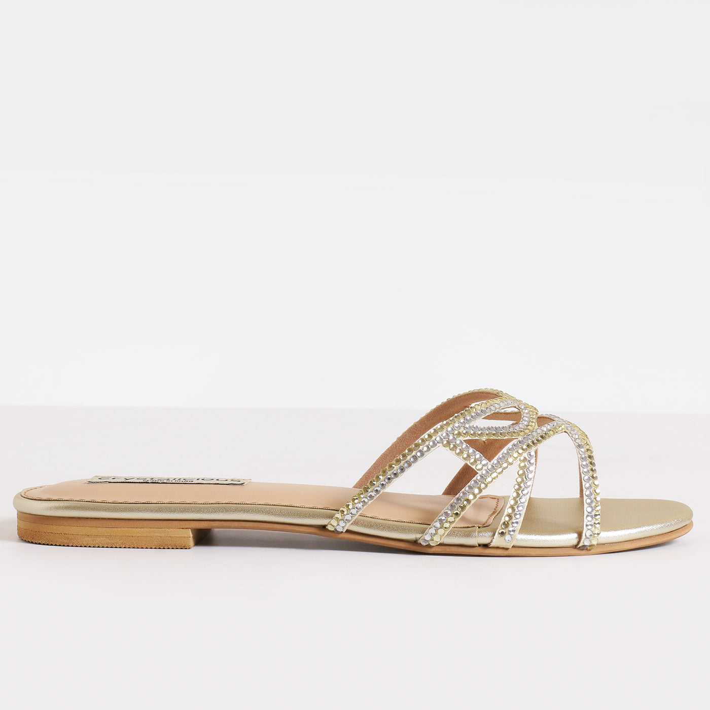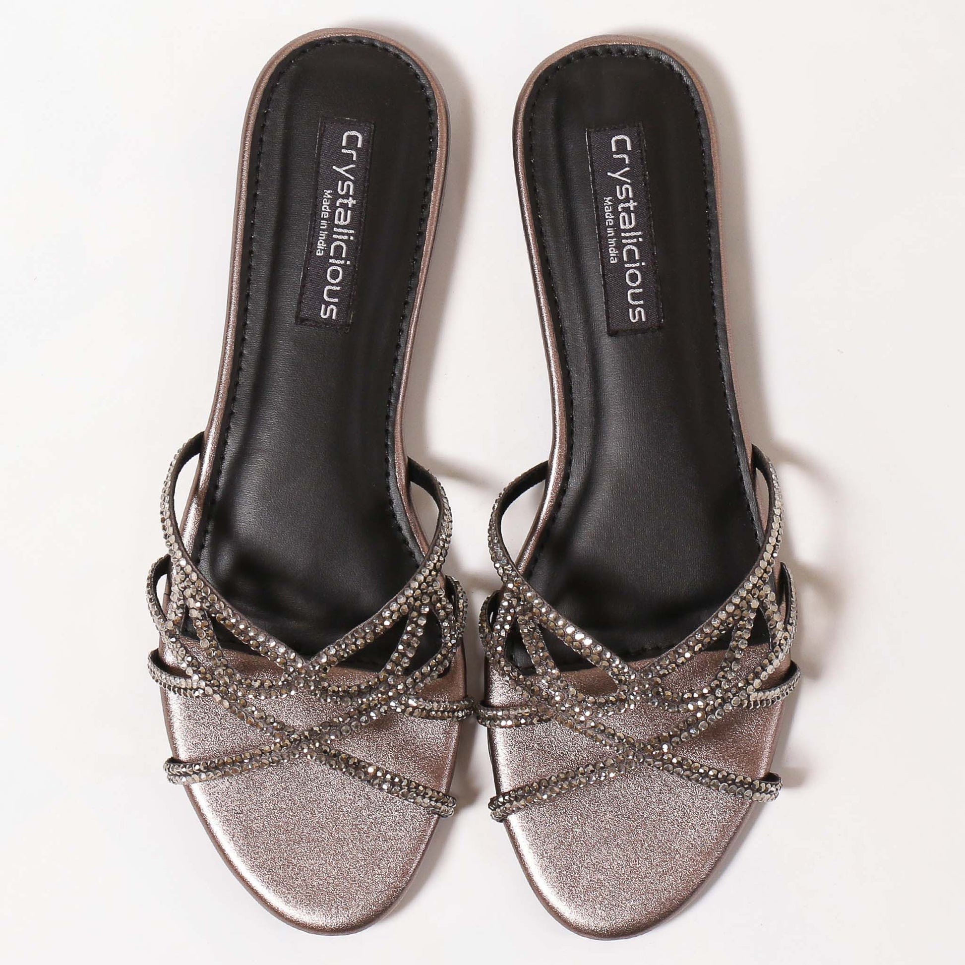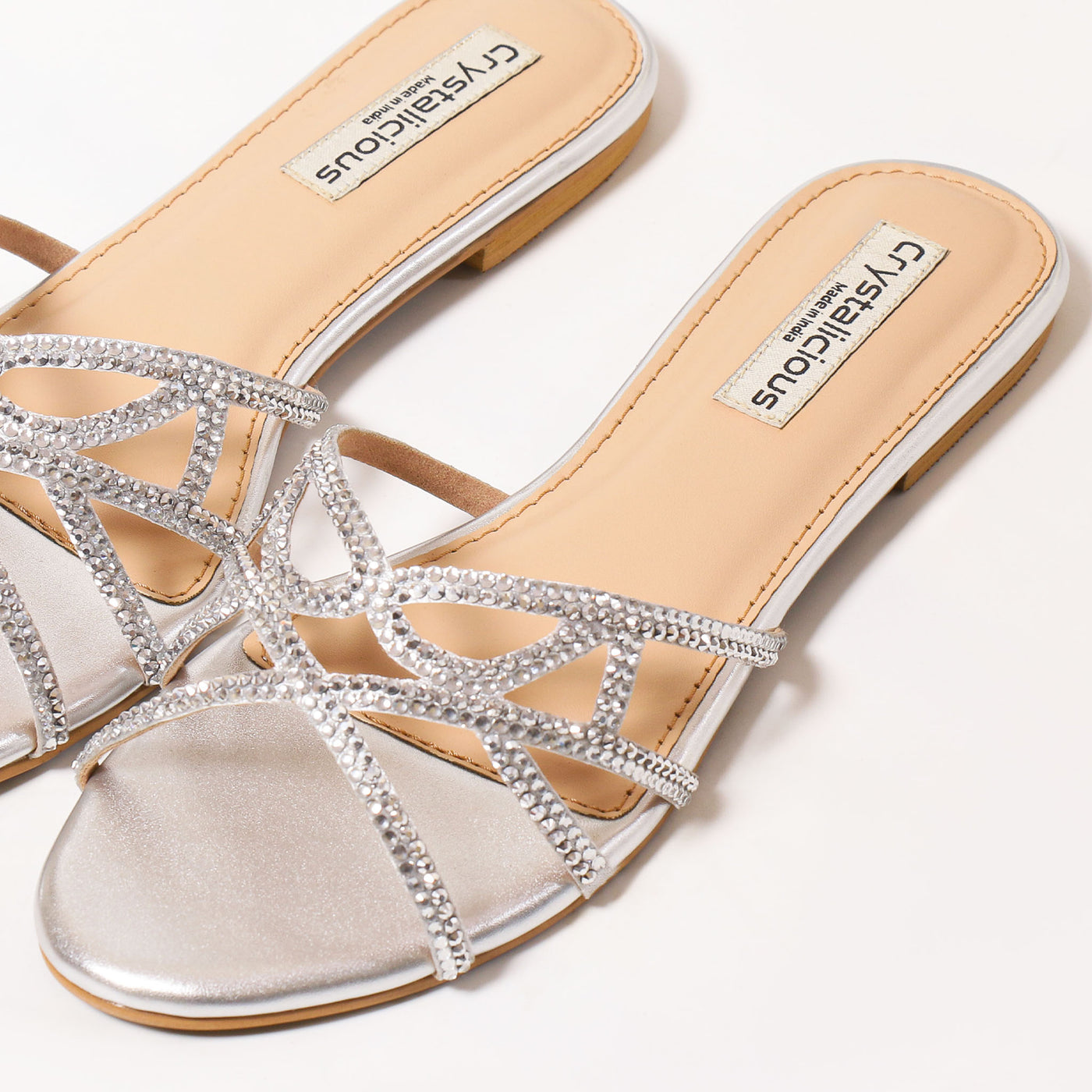 The Nyra Slide Sandal is a stunning fusion of elegance and ease, designed for those who appreciate refined style without compromising on comfort. Handcrafted with faux leather, a durable rubber sole, and adorned with shimmering rhinestones, Nyra exudes sophistication. With its flat, elegant design, round toe shape, and dazzling embellishments, this sandal is the perfect accessory for any occasion.