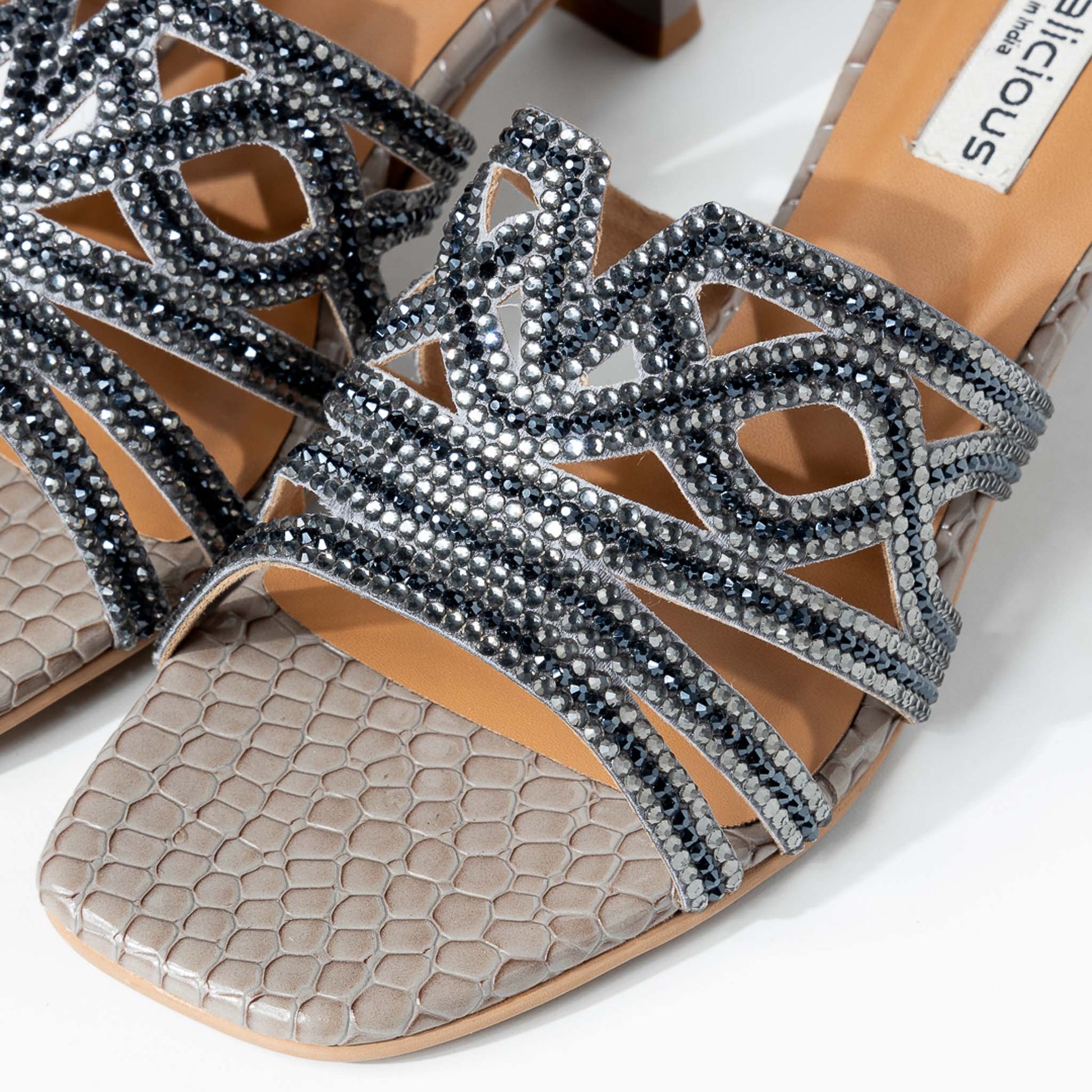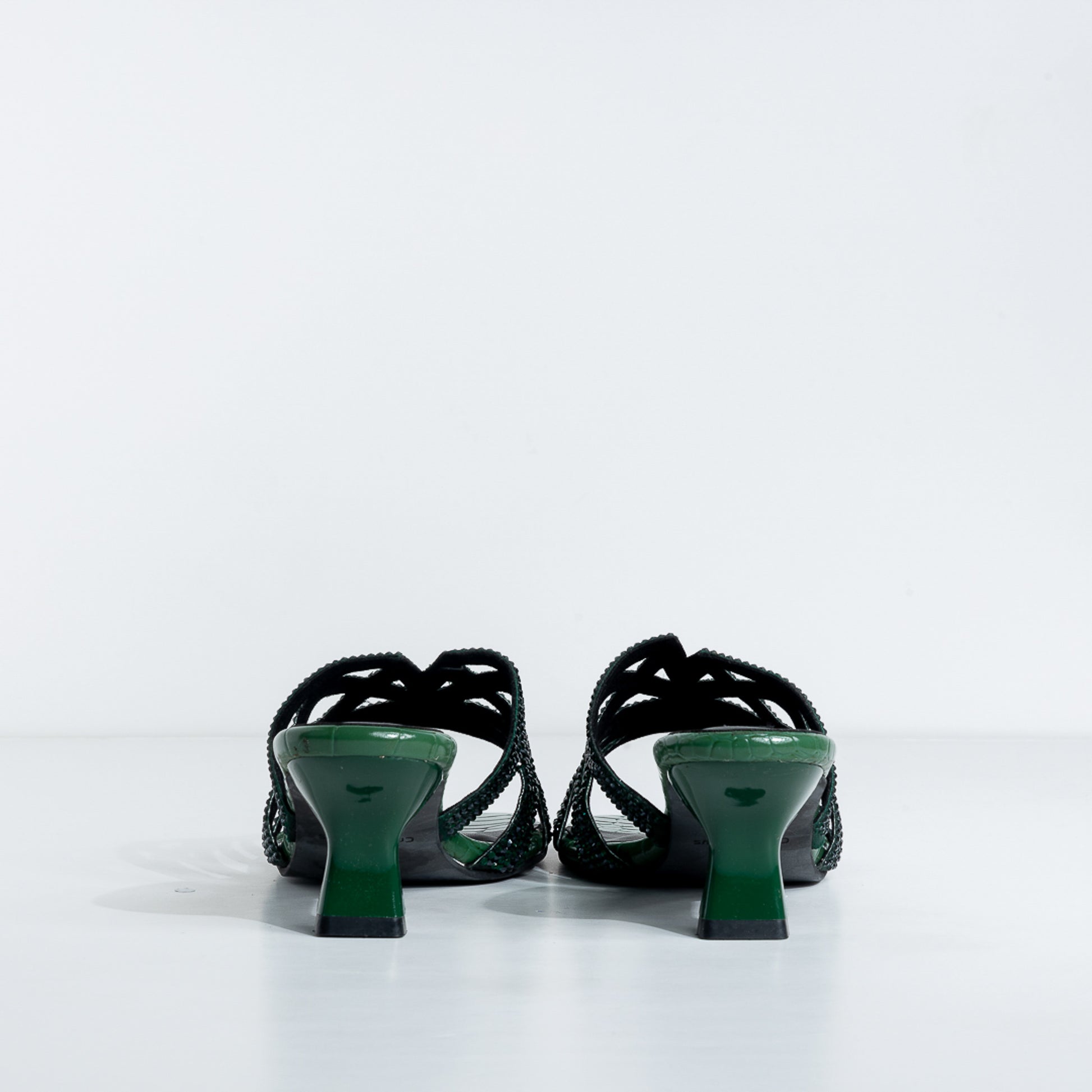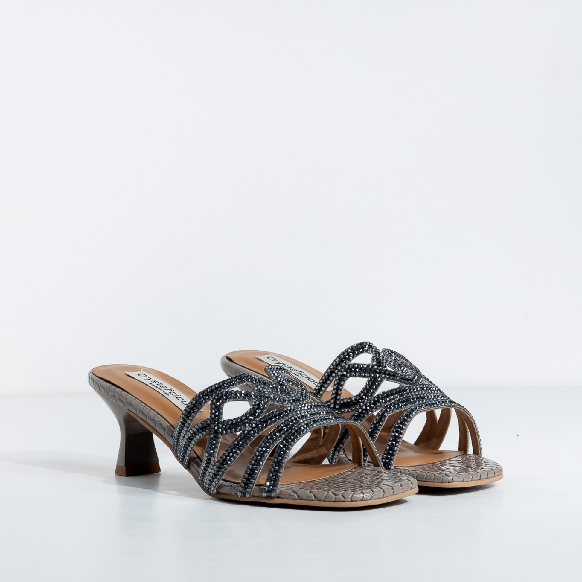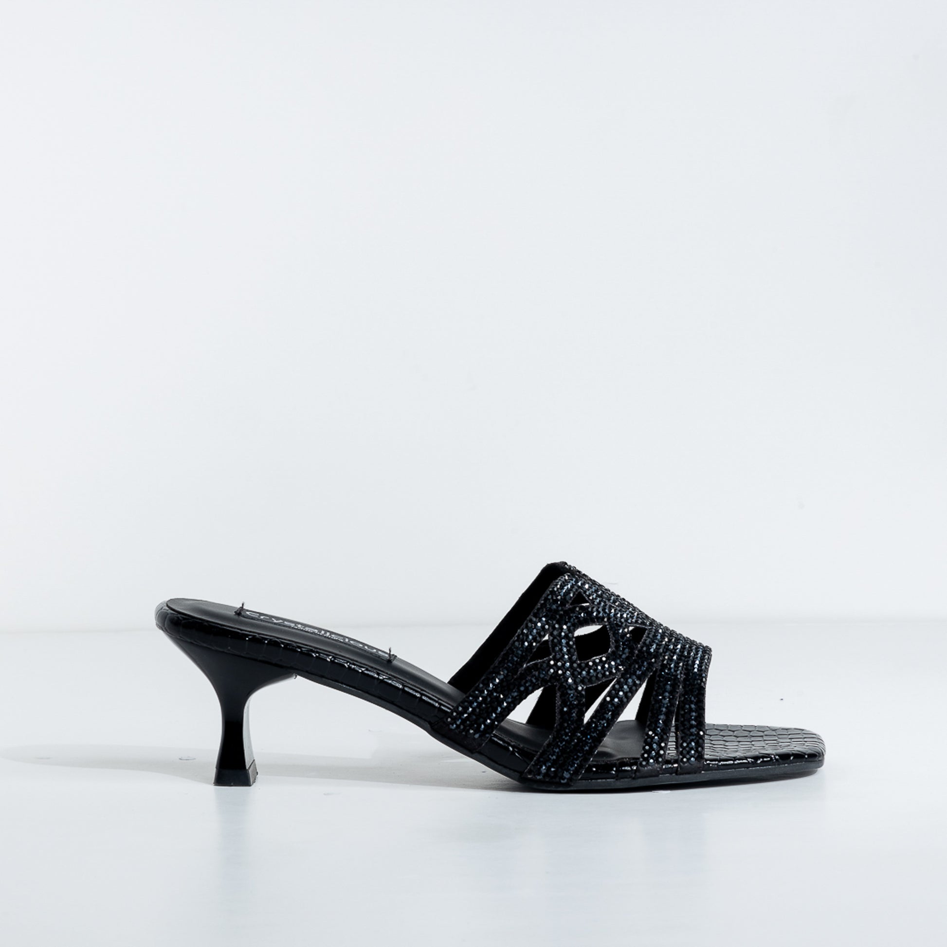 The Nysa Heel combines timeless elegance with eco-friendly craftsmanship, offering a sophisticated touch to any outfit. Designed with faux leather, a rubber sole, and adorned with blingy rhinestones, this 5cm heel is the ideal footwear for seamlessly transitioning from day to evening wear. Handcrafted by skilled artisans, Nysa embodies the perfect balance of comfort and style for the modern fashion-forward individual.