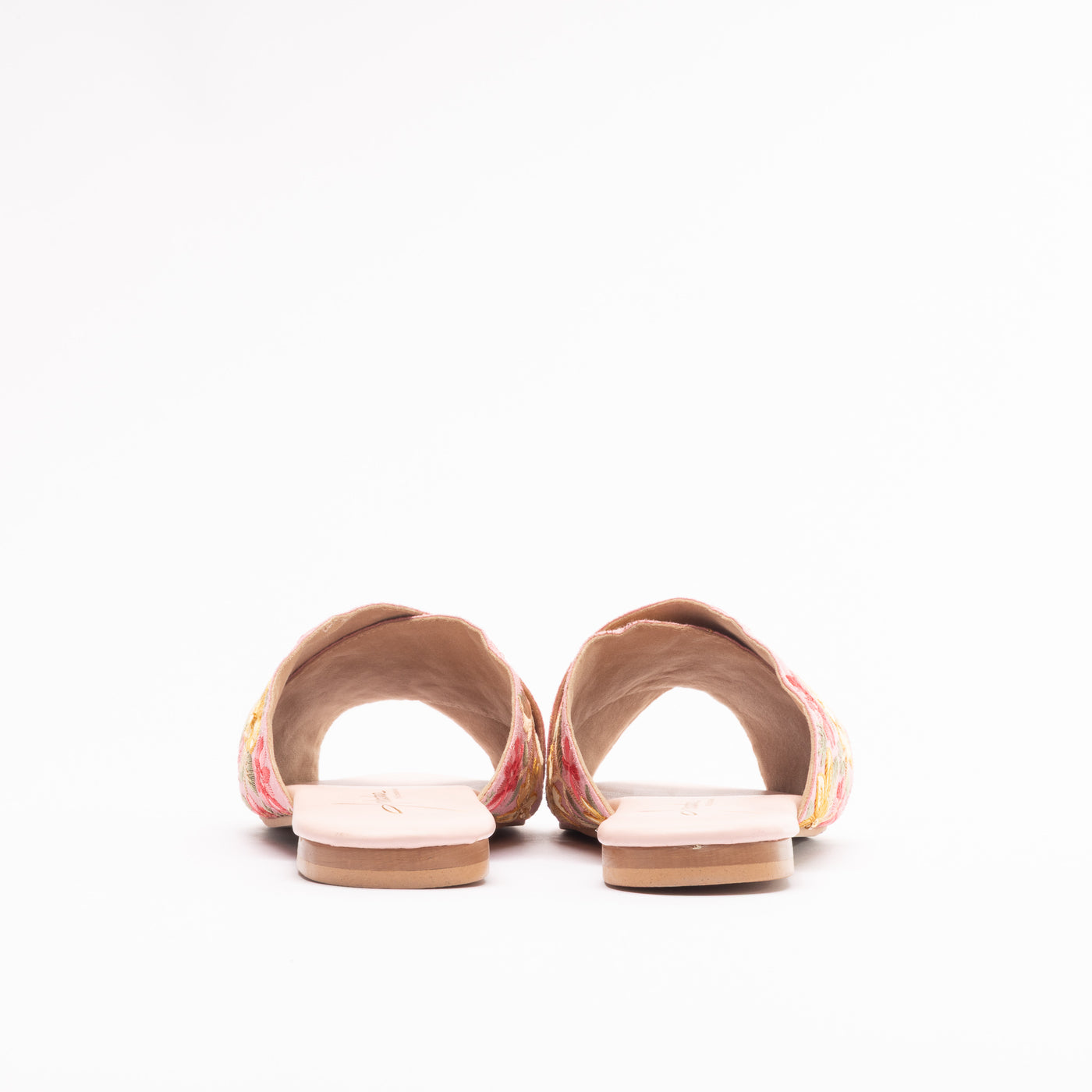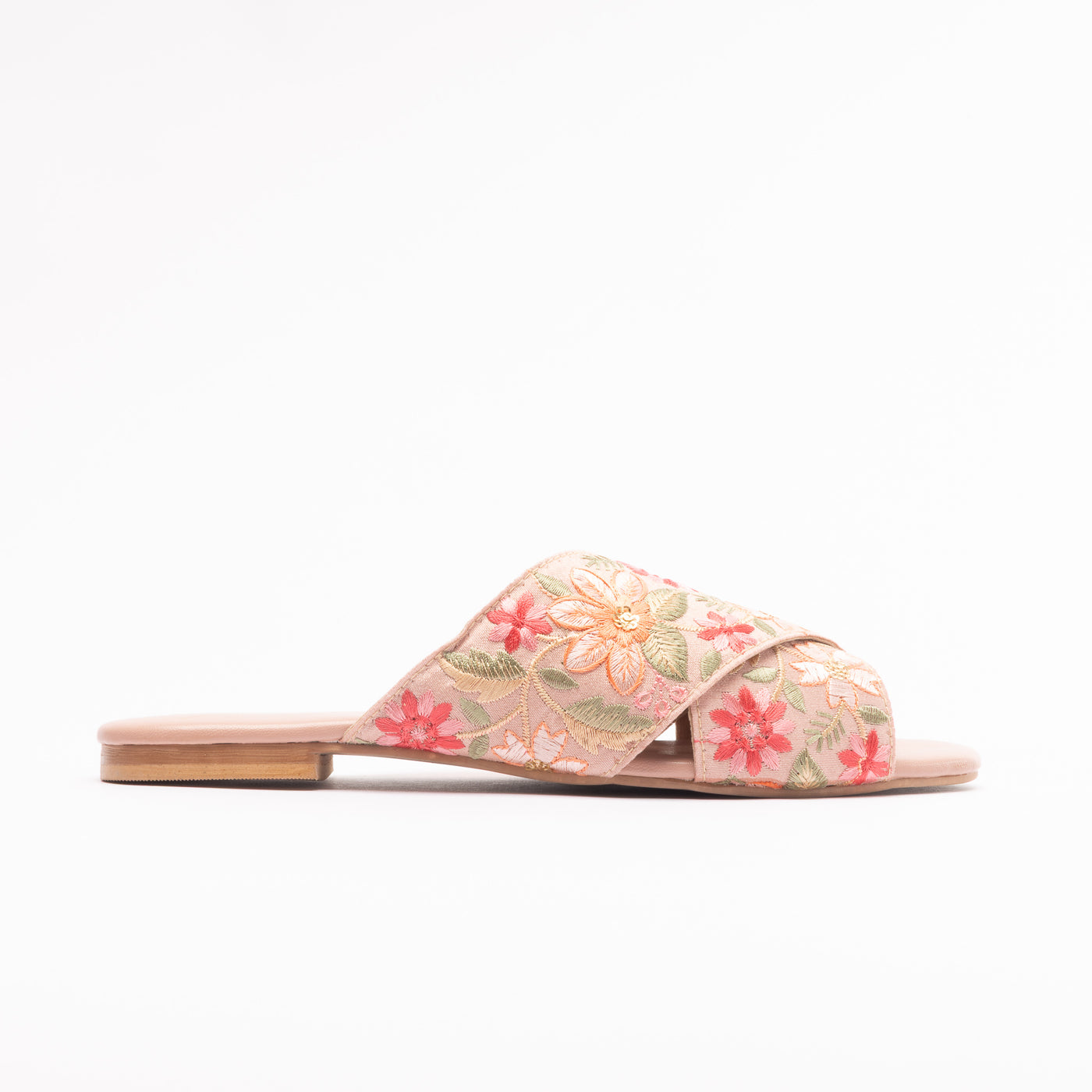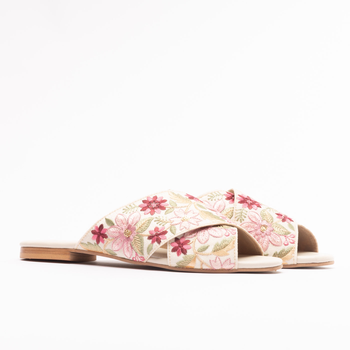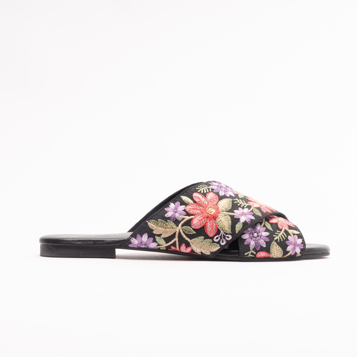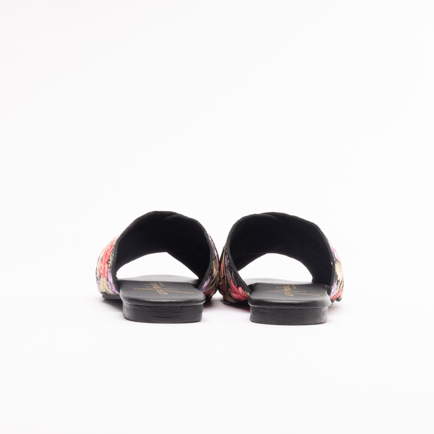 The Rose flat mule captures the essence of feminine elegance with its intricately embroidered lace upper and timeless silhouette. Designed for versatility, it transitions effortlessly from daywear to evening chic, making it a perfect companion for every occasion.