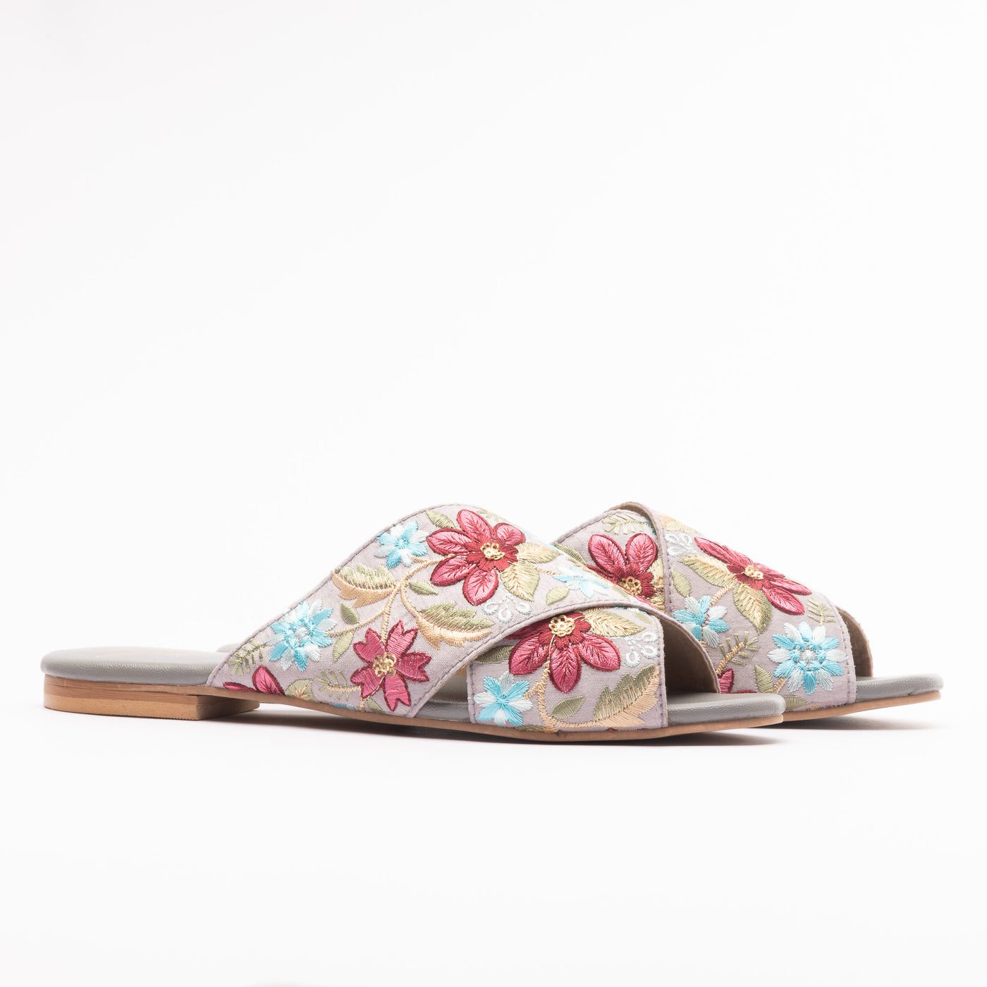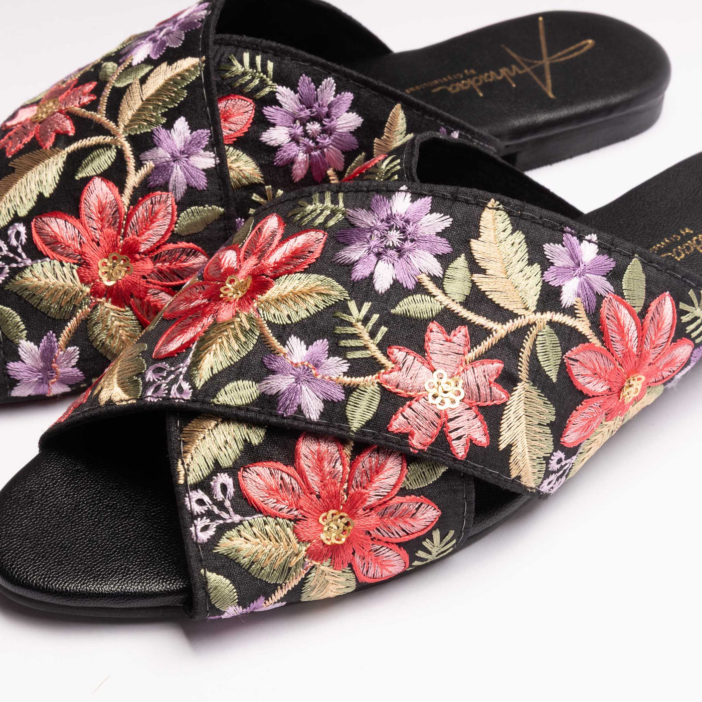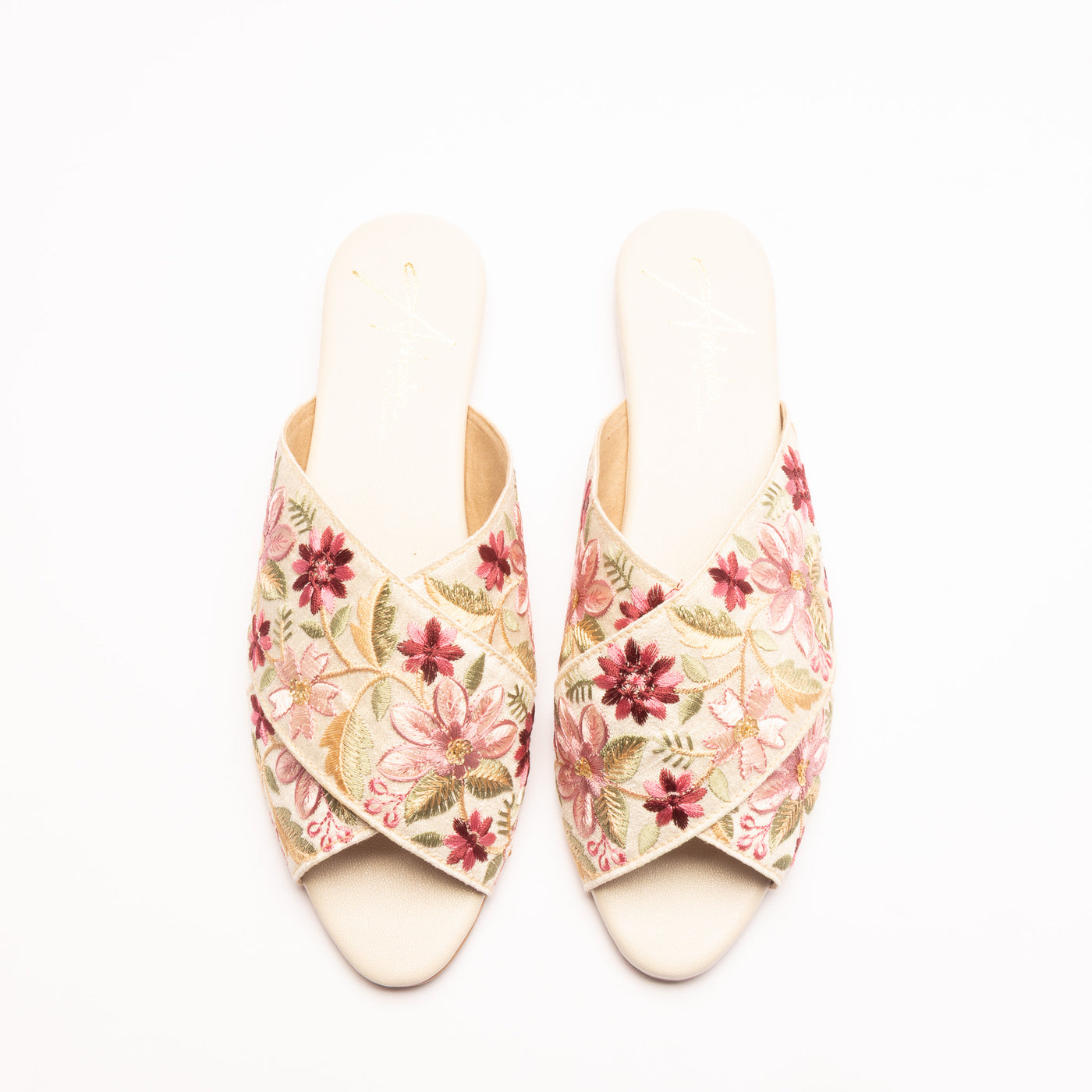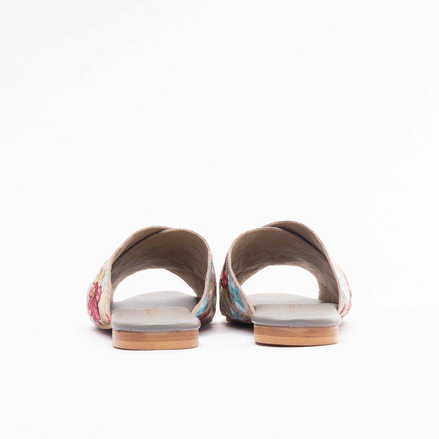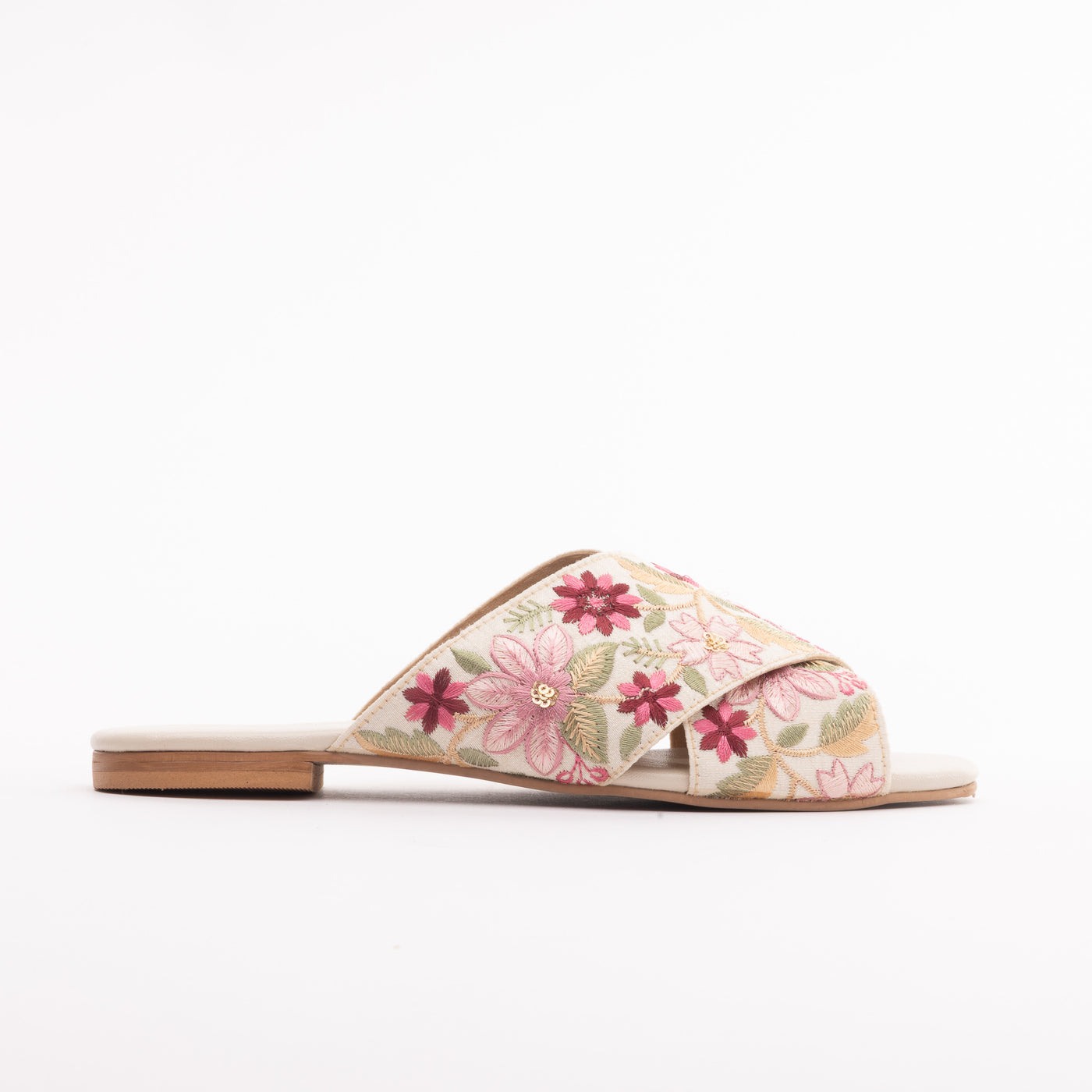 The Rose flat mule captures the essence of feminine elegance with its intricately embroidered lace upper and timeless silhouette. Designed for versatility, it transitions effortlessly from daywear to evening chic, making it a perfect companion for every occasion.