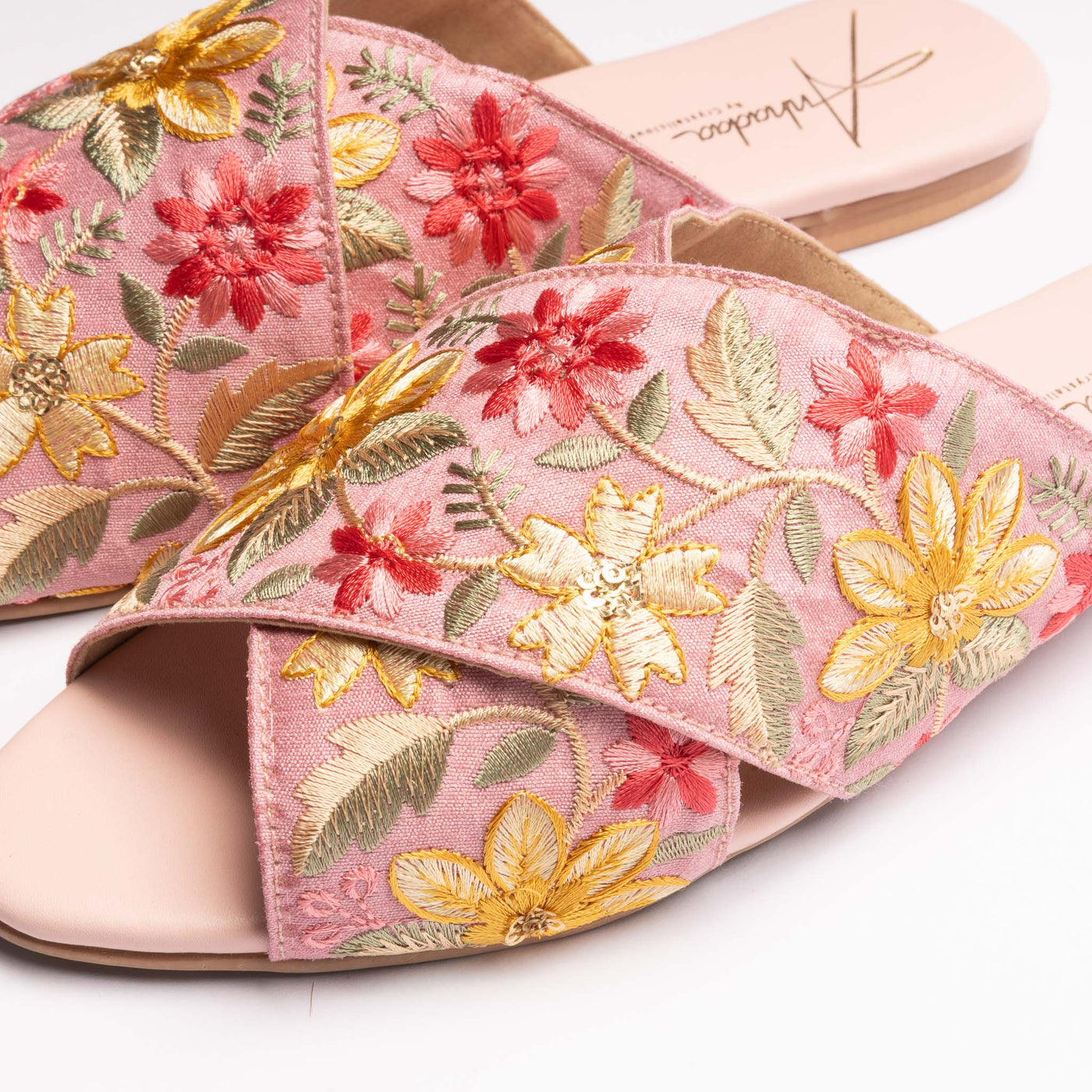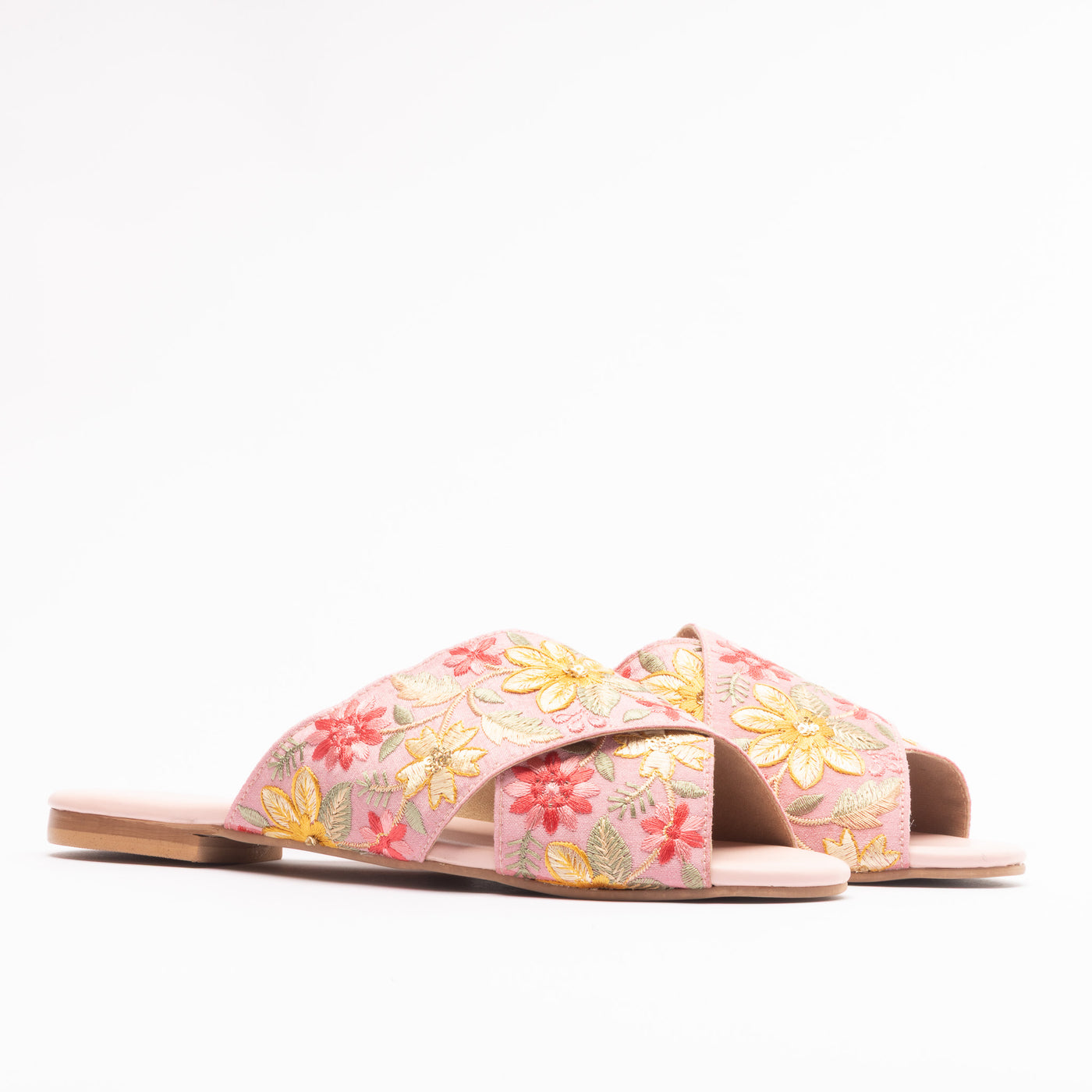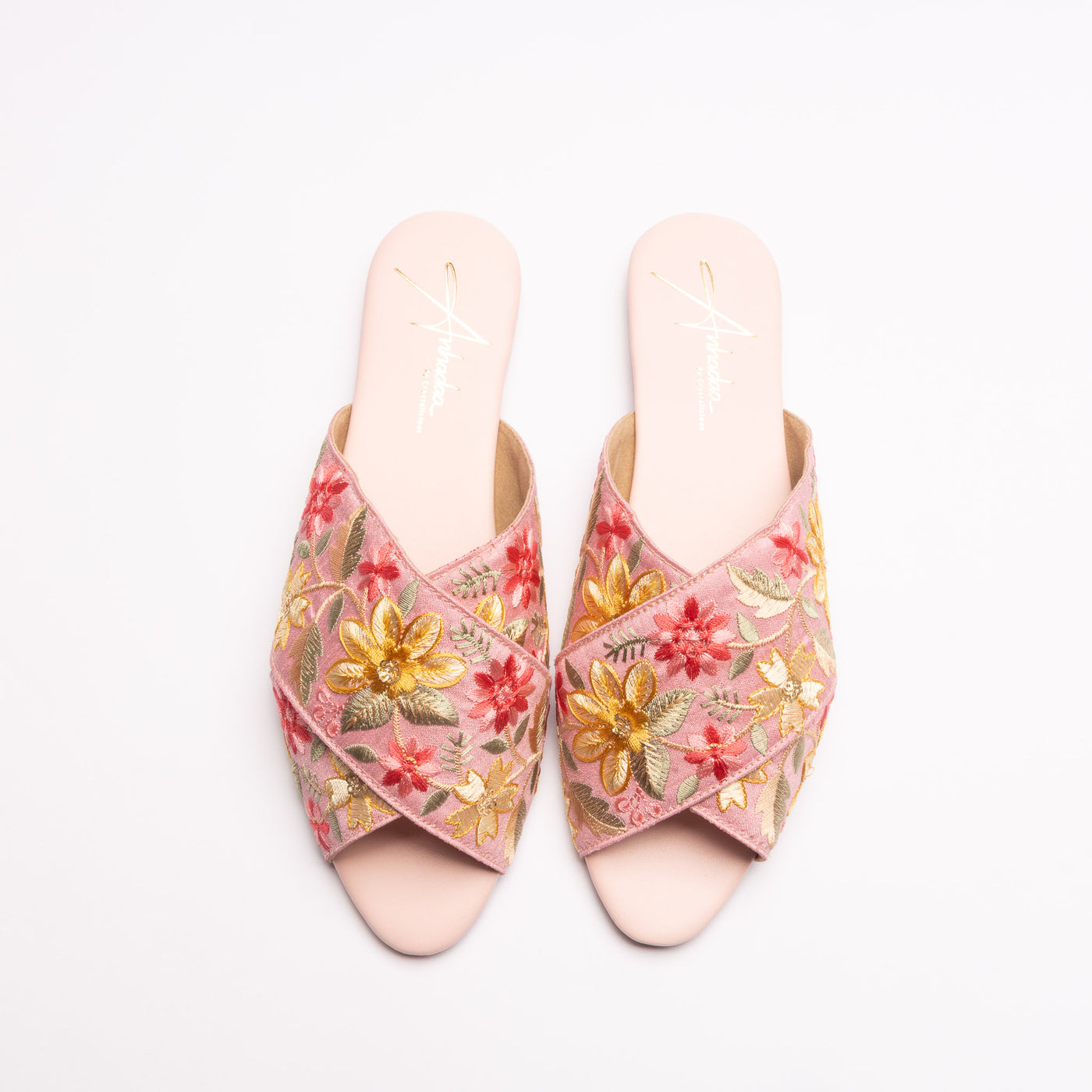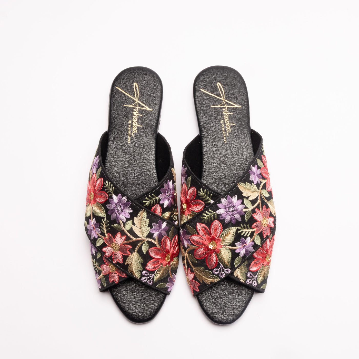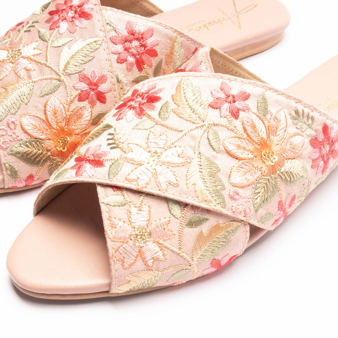 The Rose flat mule captures the essence of feminine elegance with its intricately embroidered lace upper and timeless silhouette. Designed for versatility, it transitions effortlessly from daywear to evening chic, making it a perfect companion for every occasion.