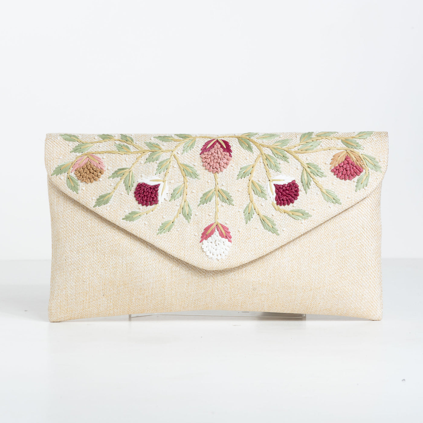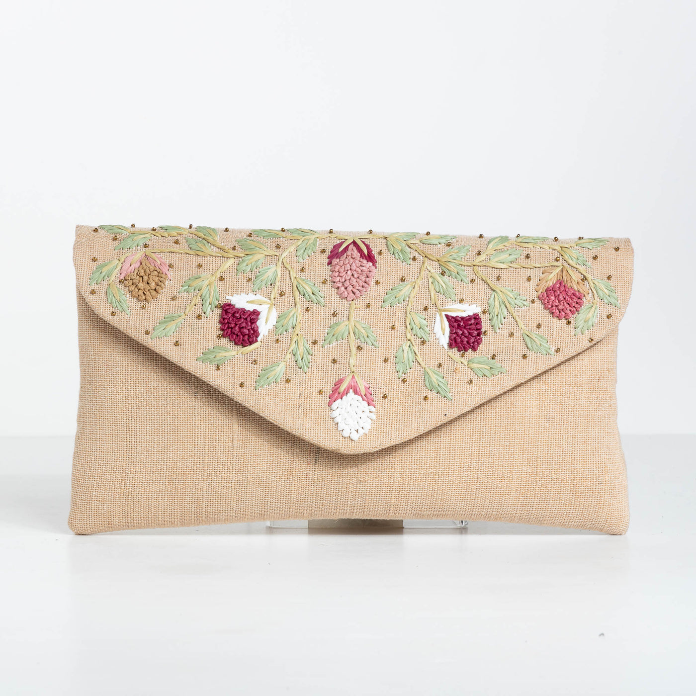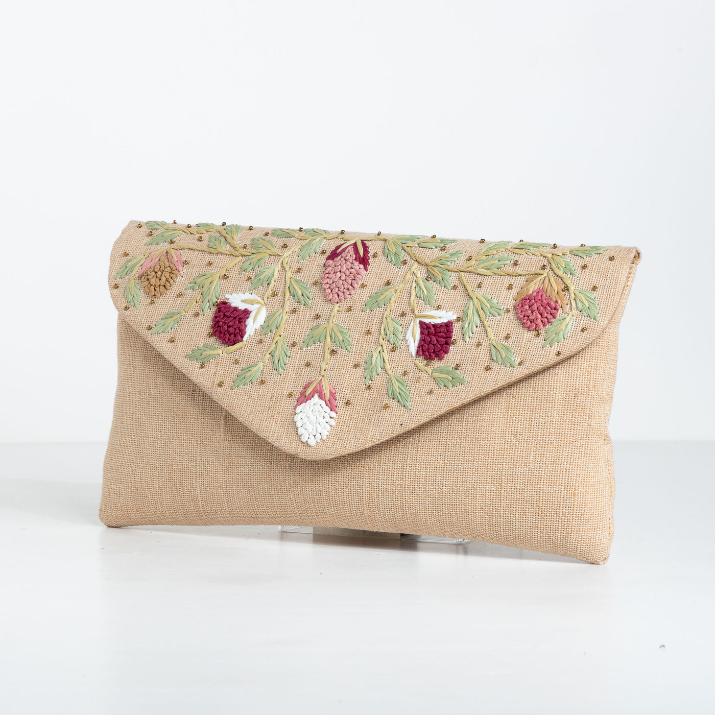 The Sage Bag Clutch is a refined expression of nature-inspired elegance, perfect for those who embrace sustainable style with a creative twist. Crafted from faux leather and burlap fabric, and adorned with intricate floral raffia embroidery, this beautifully handcrafted clutch offers textural richness and visual charm. Its compact size—25.4cm wide and 15.24cm long—makes it ideal for both day and evening wear, allowing Sage Bag to strike the perfect balance between chic and comfort.