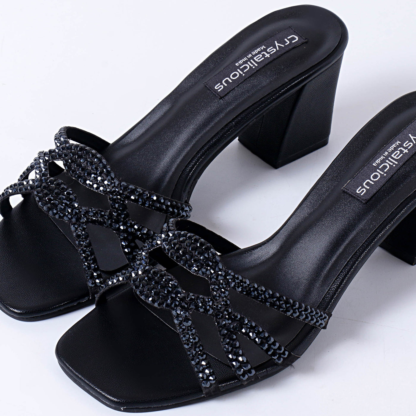 The Samma Heel redefines timeless sophistication, offering the perfect companion for seamless transitions from day to evening wear. Handcrafted with care, this 7cm heel is made from faux leather and a durable rubber sole, embellished with bling rhinestones that exude glamour and elegance. Ideal for fashion-forward individuals seeking comfort and style.