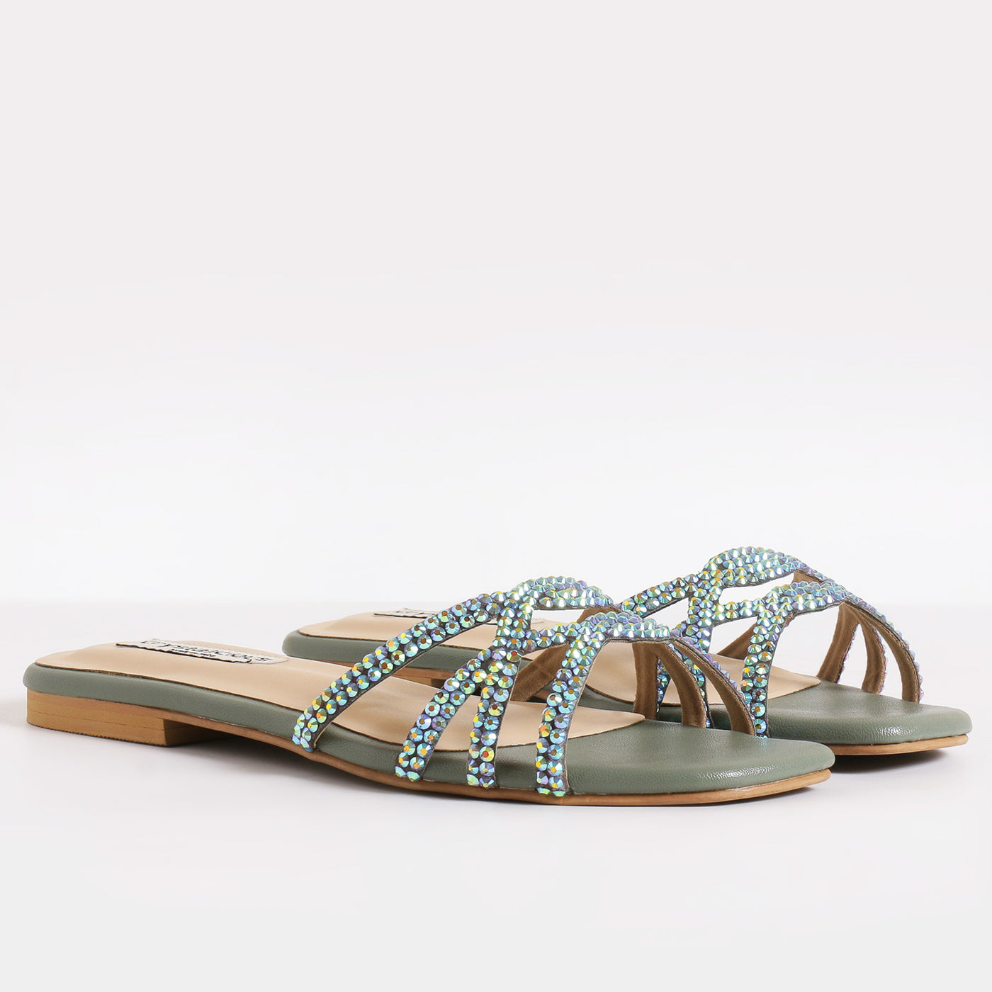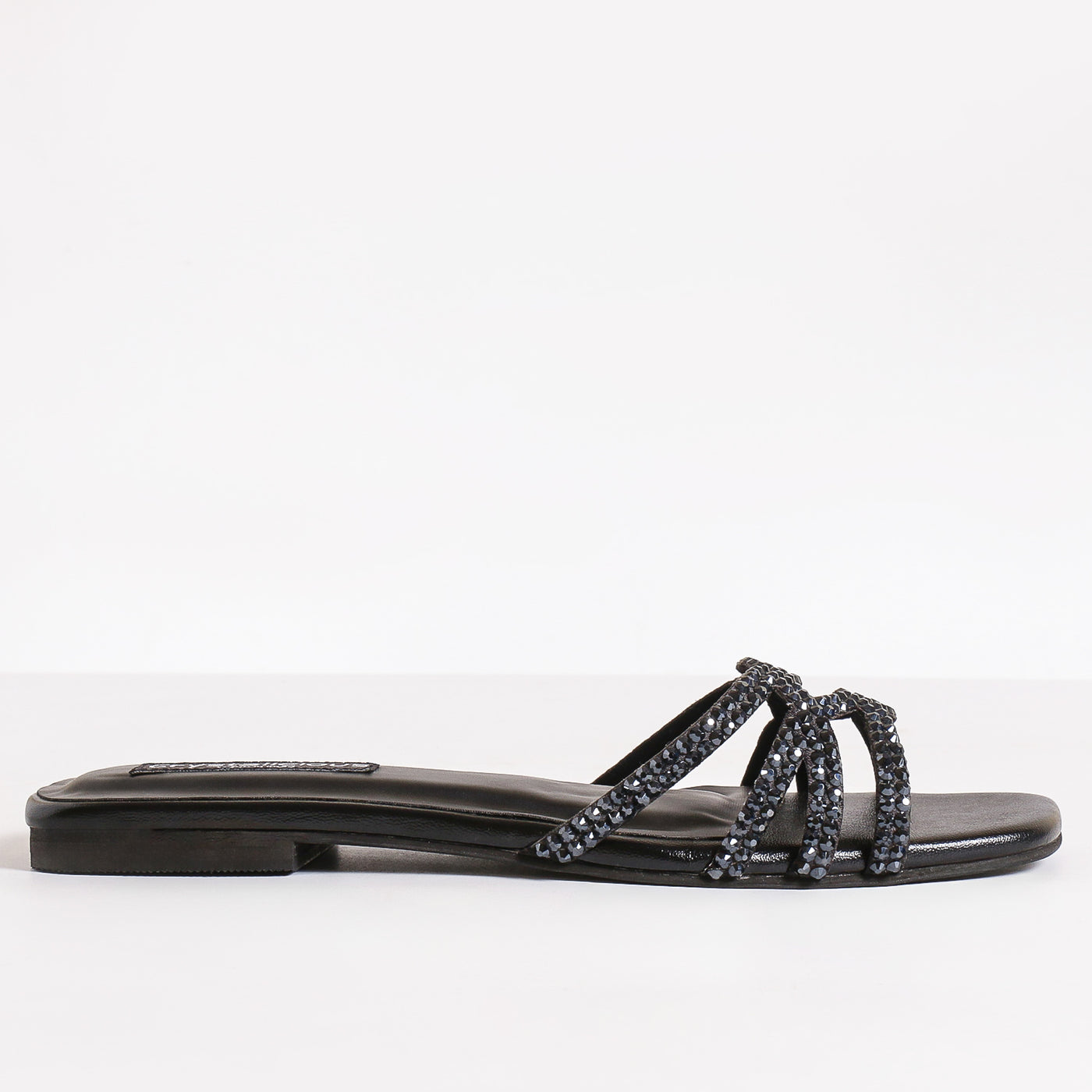 The Samma Flat Slide Sandal is the epitome of effortless sophistication, blending luxury and comfort into a refined design. Expertly handcrafted with faux leather, a durable rubber sole, and adorned with shimmering rhinestones, Samma Flat is designed to add a touch of elegance to your everyday style. With its flat, elegant silhouette, round toe shape, and chic embellishments, this sandal is the perfect addition to any wardrobe.