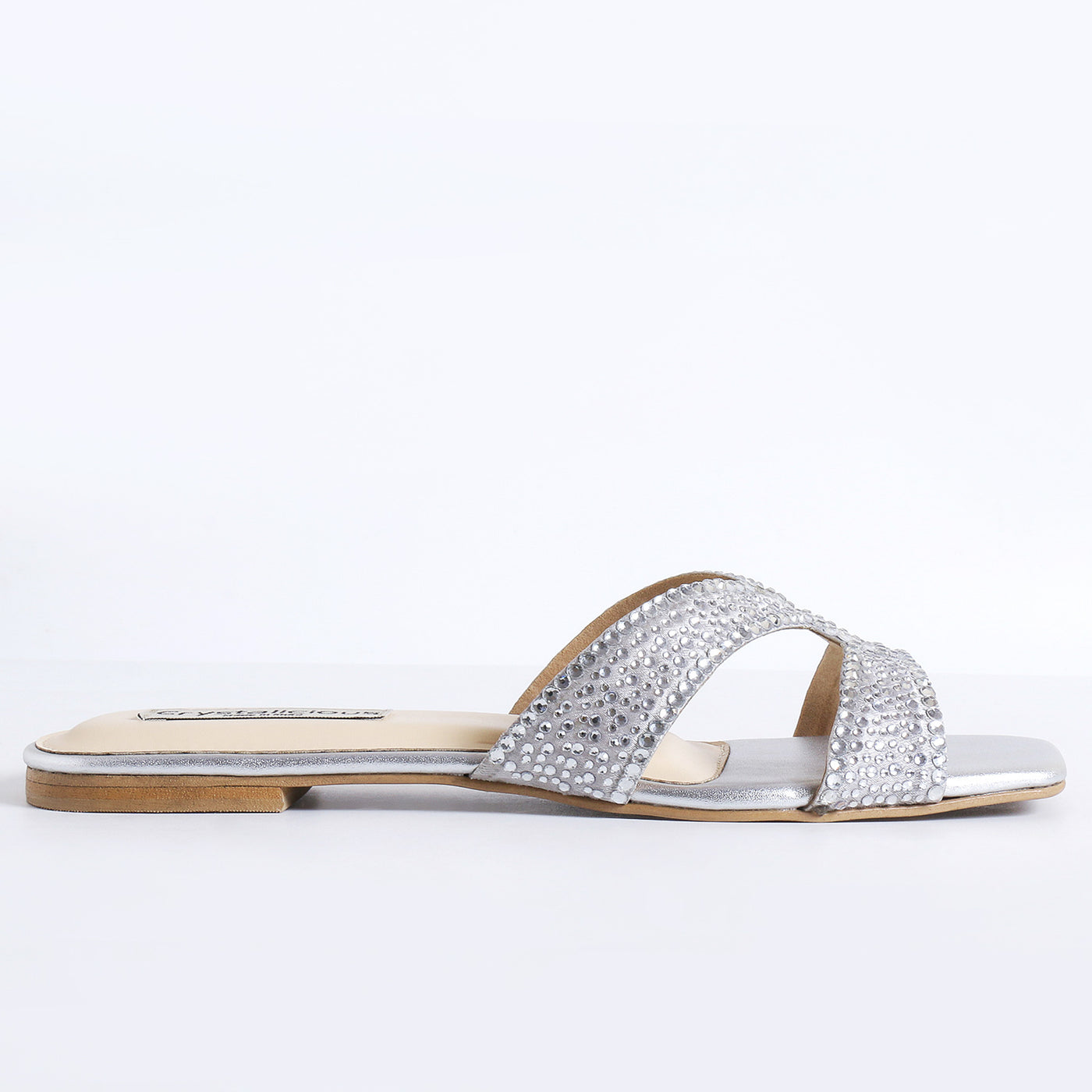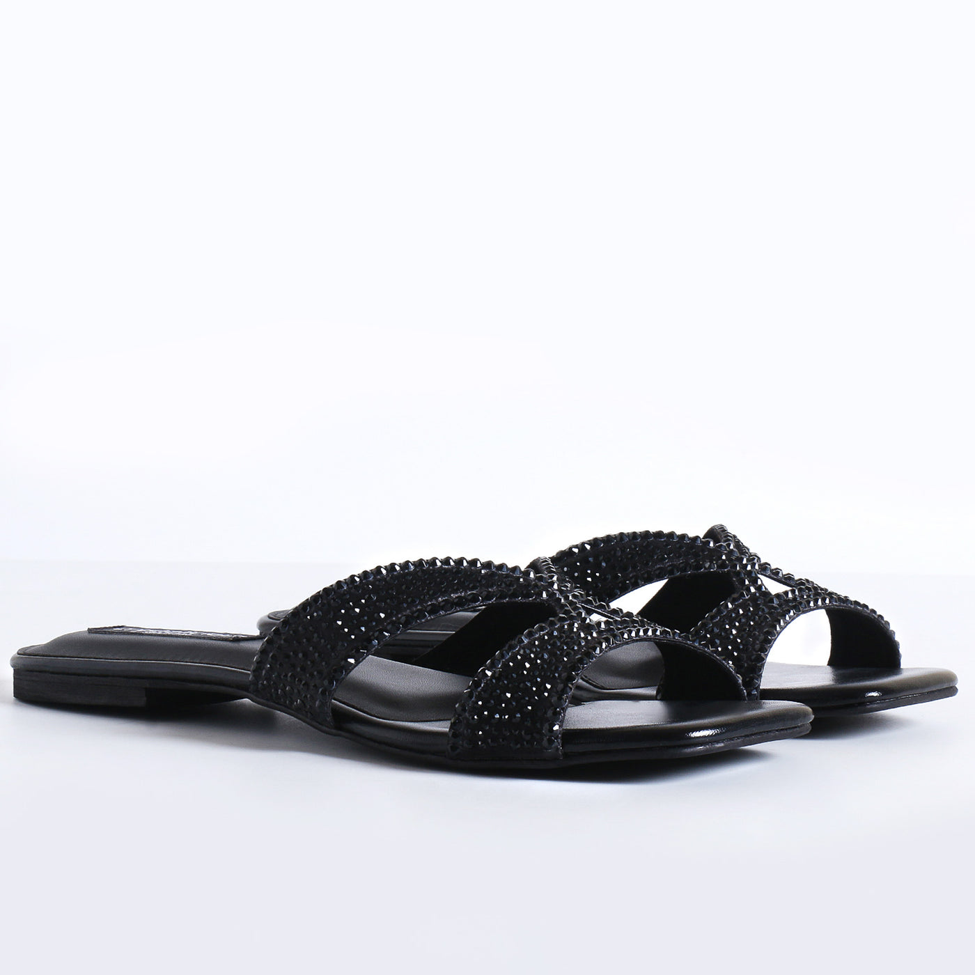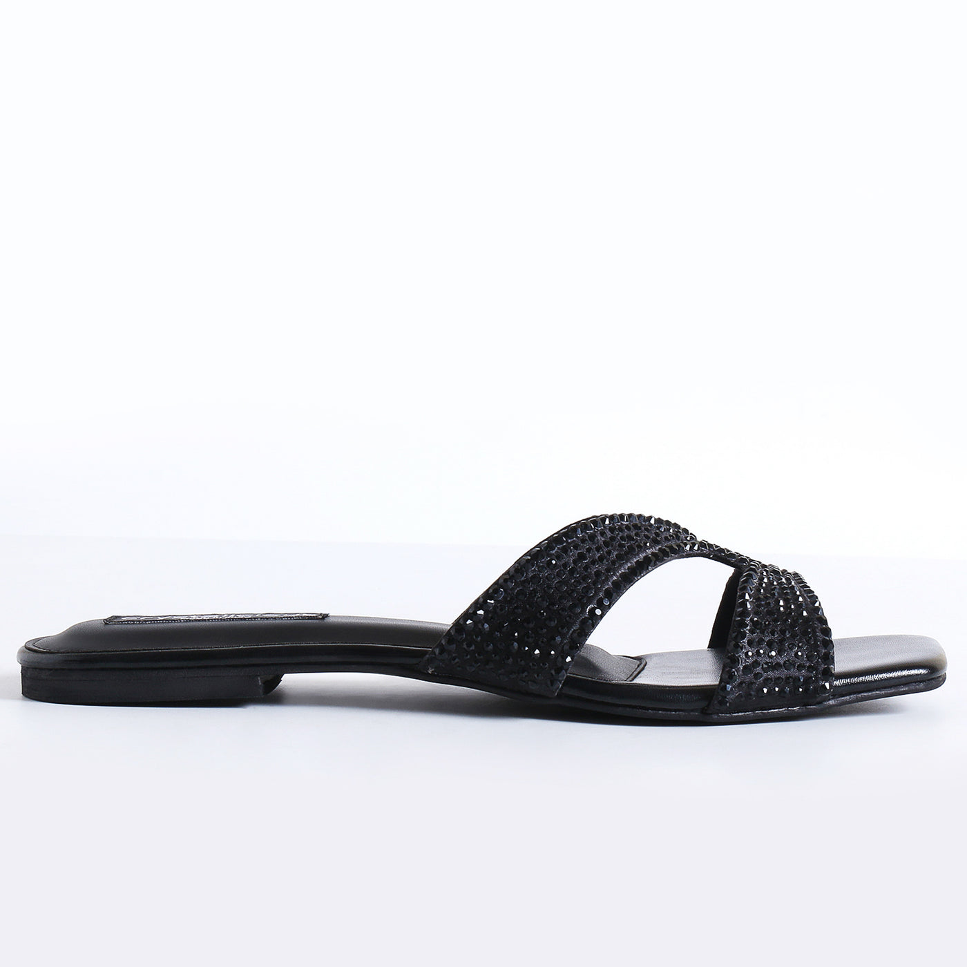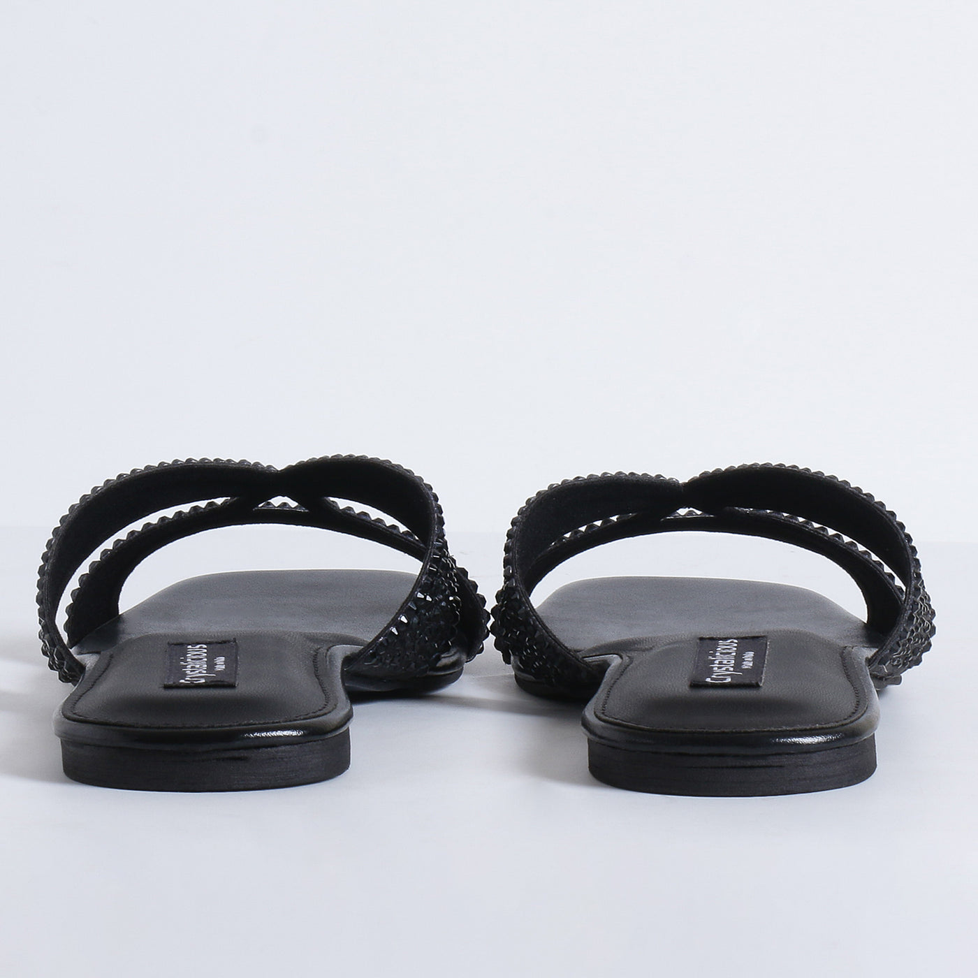 Refined, radiant, and responsibly made — the Sapphire Slide Sandal is your everyday luxury with a sparkling twist. Designed for effortless sophistication, Sapphire features a flat sole, a bold square toe shape, and is finished with glittering rhinestones for a dash of glamour. Made from faux leather with a supportive rubber sole, this artisan-crafted sandal offers conscious style with comfort—allowing Sapphire to strike the perfect balance between chic and comfort.