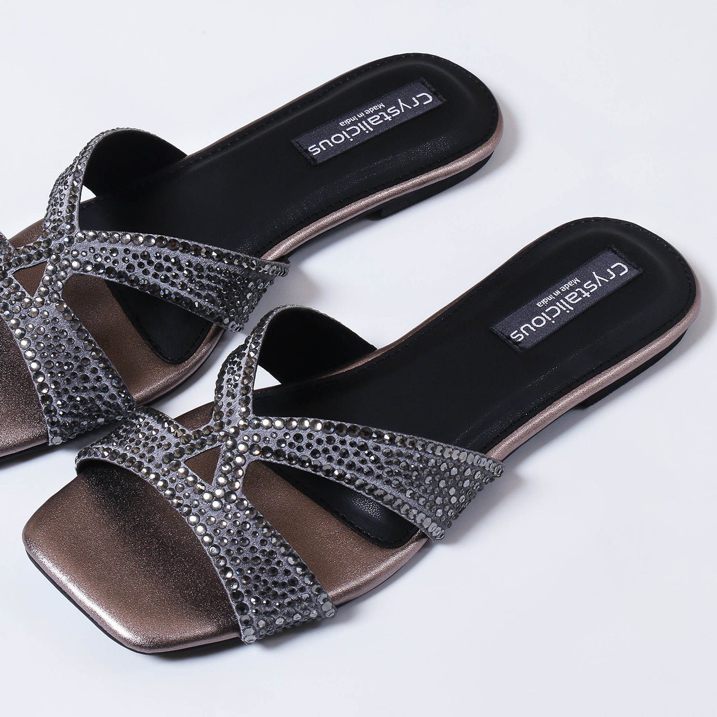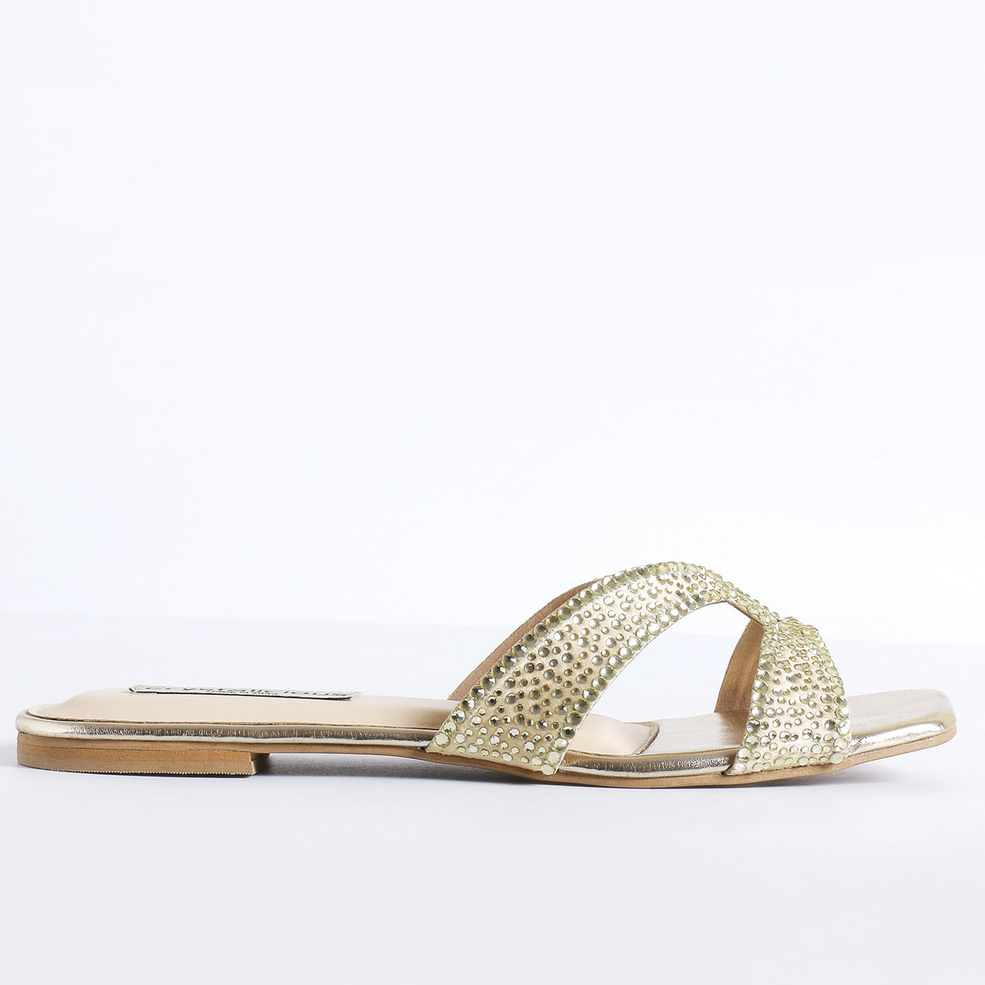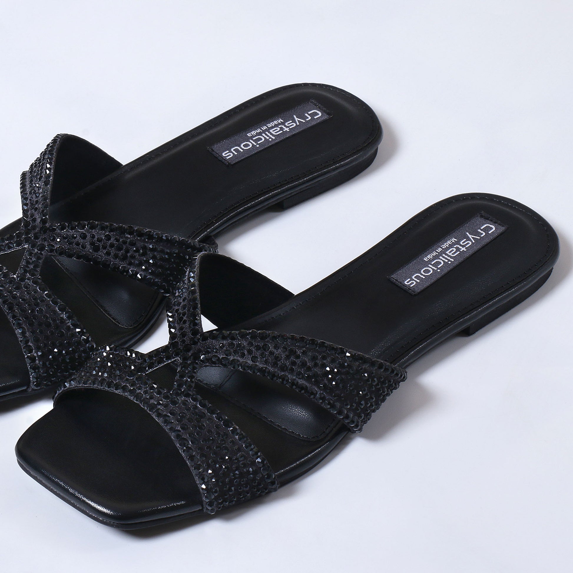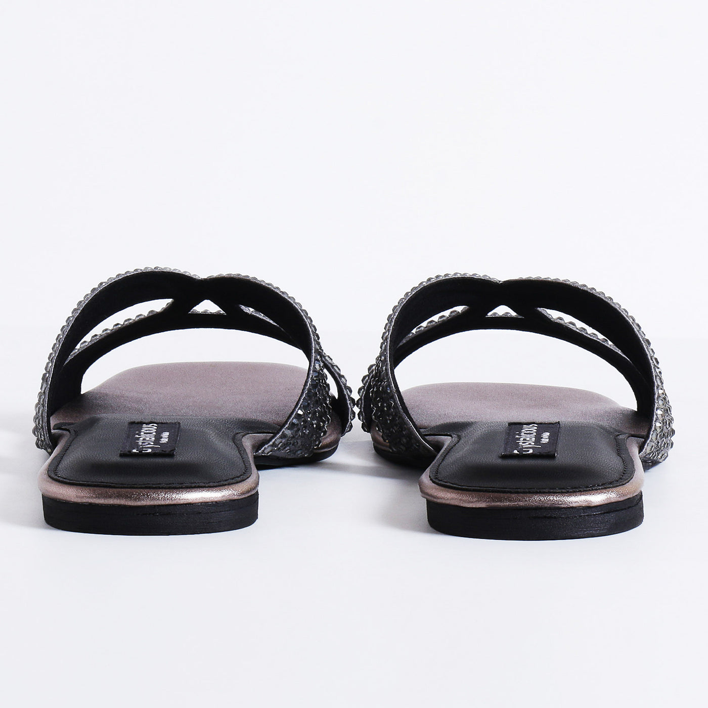 Refined, radiant, and responsibly made — the Sapphire Slide Sandal is your everyday luxury with a sparkling twist. Designed for effortless sophistication, Sapphire features a flat sole, a bold square toe shape, and is finished with glittering rhinestones for a dash of glamour. Made from faux leather with a supportive rubber sole, this artisan-crafted sandal offers conscious style with comfort—allowing Sapphire to strike the perfect balance between chic and comfort.