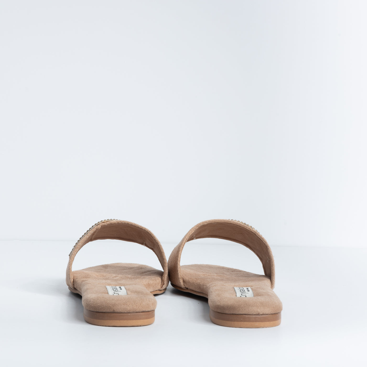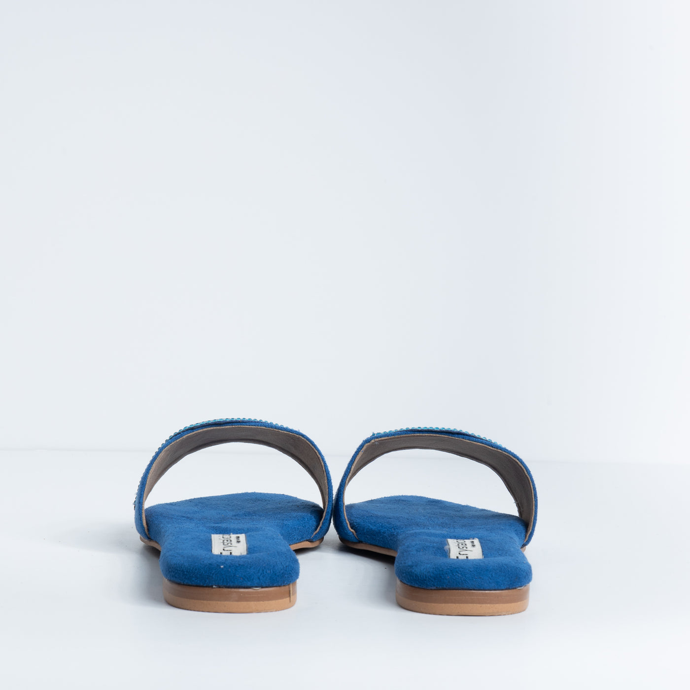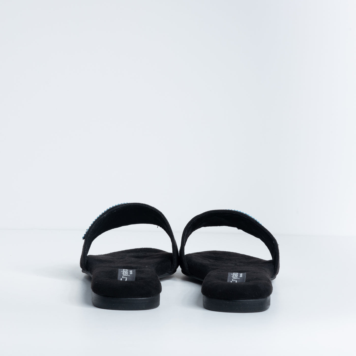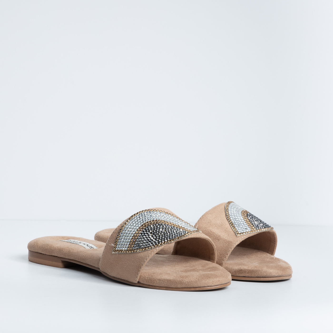 Enhance your style with our fashionable flats, featuring a lucky eye design on synthetic suede adorned with rhinestones. Crafted with accuracy by skilled Indian makers, these flats offer both ease and elegance. Perfect for any occasion. Explore the exclusive Crystalicious collection now.