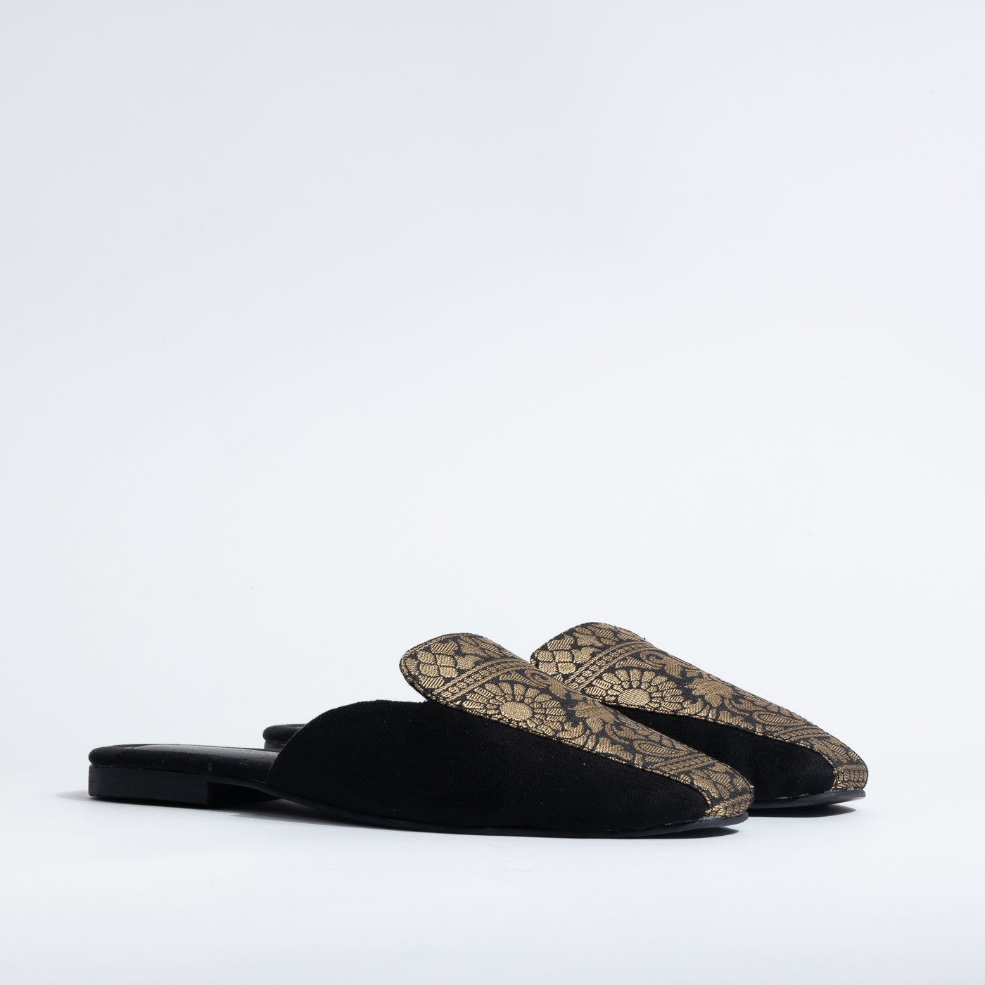 The Sirat Mule exudes timeless elegance and exceptional craftsmanship, making it a standout addition to your wardrobe. Made from luxurious brocade, a sturdy rubber sole, and detailed with suede accents, Sirat is thoughtfully designed to elevate your look while keeping you comfortable. This mule is the ideal choice for those seeking sophisticated style that seamlessly transitions across occasions, allowing Sirat to strike the perfect balance between chic and comfort.