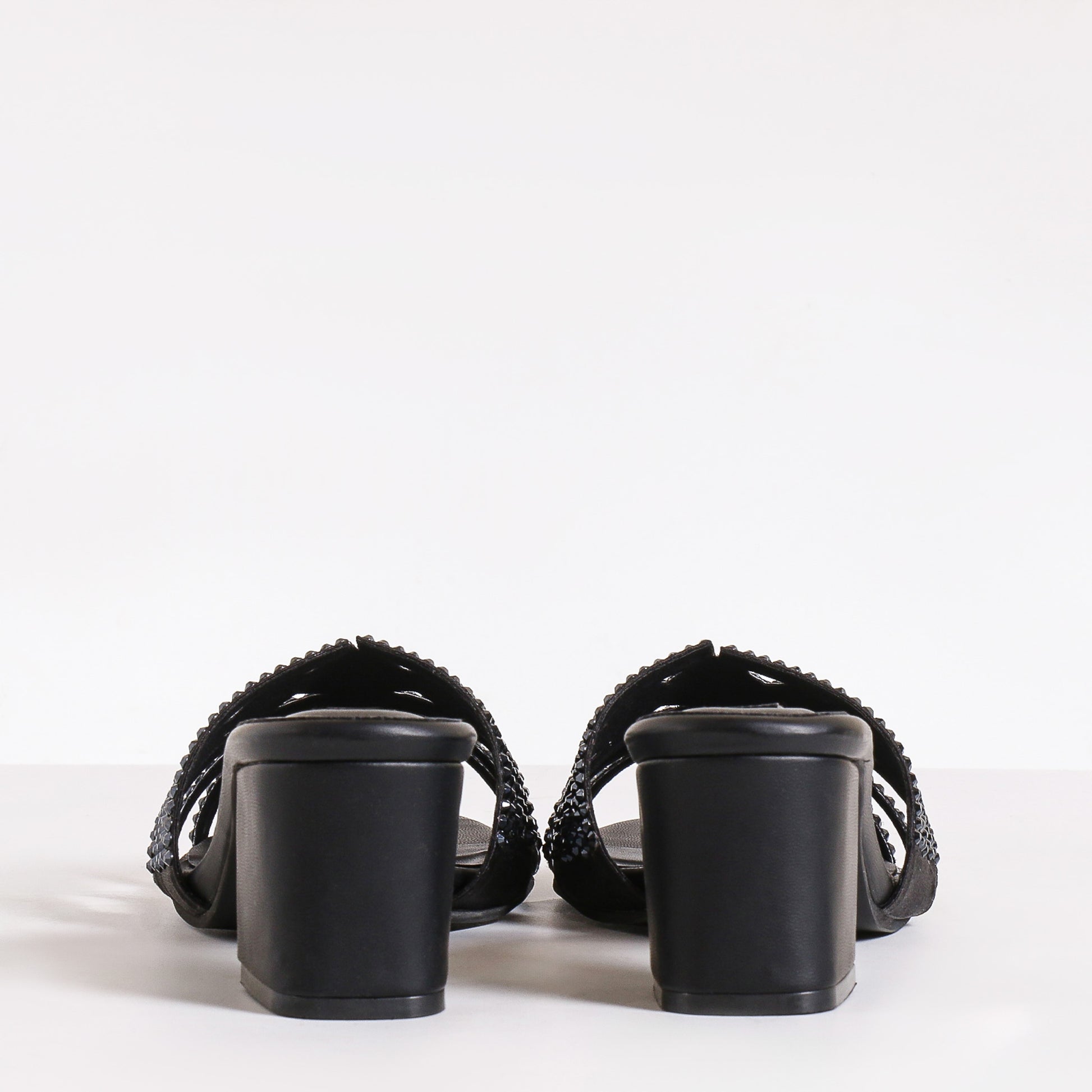 The Tessa Heel is the perfect combination of elegance and comfort, designed to enhance your style effortlessly. Featuring a 5cm heel, a durable rubber sole, and a faux leather upper adorned with sparkling rhinestones, this sophisticated design makes a glamorous statement. With its round toe shape and distinctive details, Tessa is an essential addition to any wardrobe for special occasions or refined everyday wear.