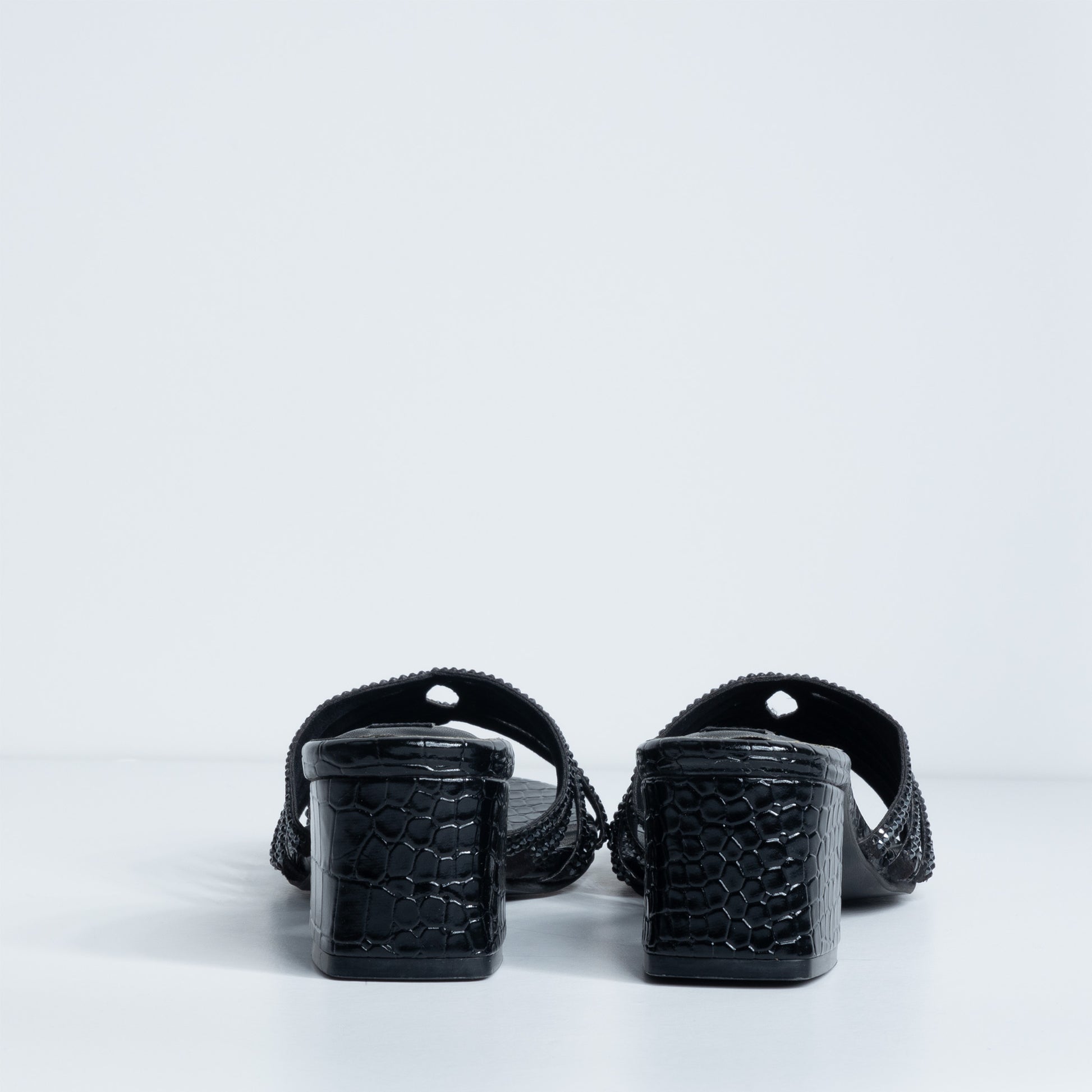 The Warm Heel combines eco-friendly craftsmanship with refined sophistication, making it the essential slipper to transition seamlessly from day to evening wear. Designed with premium faux leather, a durable rubber sole, and embellished with sparkling rhinestones, this 6cm heel offers both comfort and style for fashion-forward individuals.