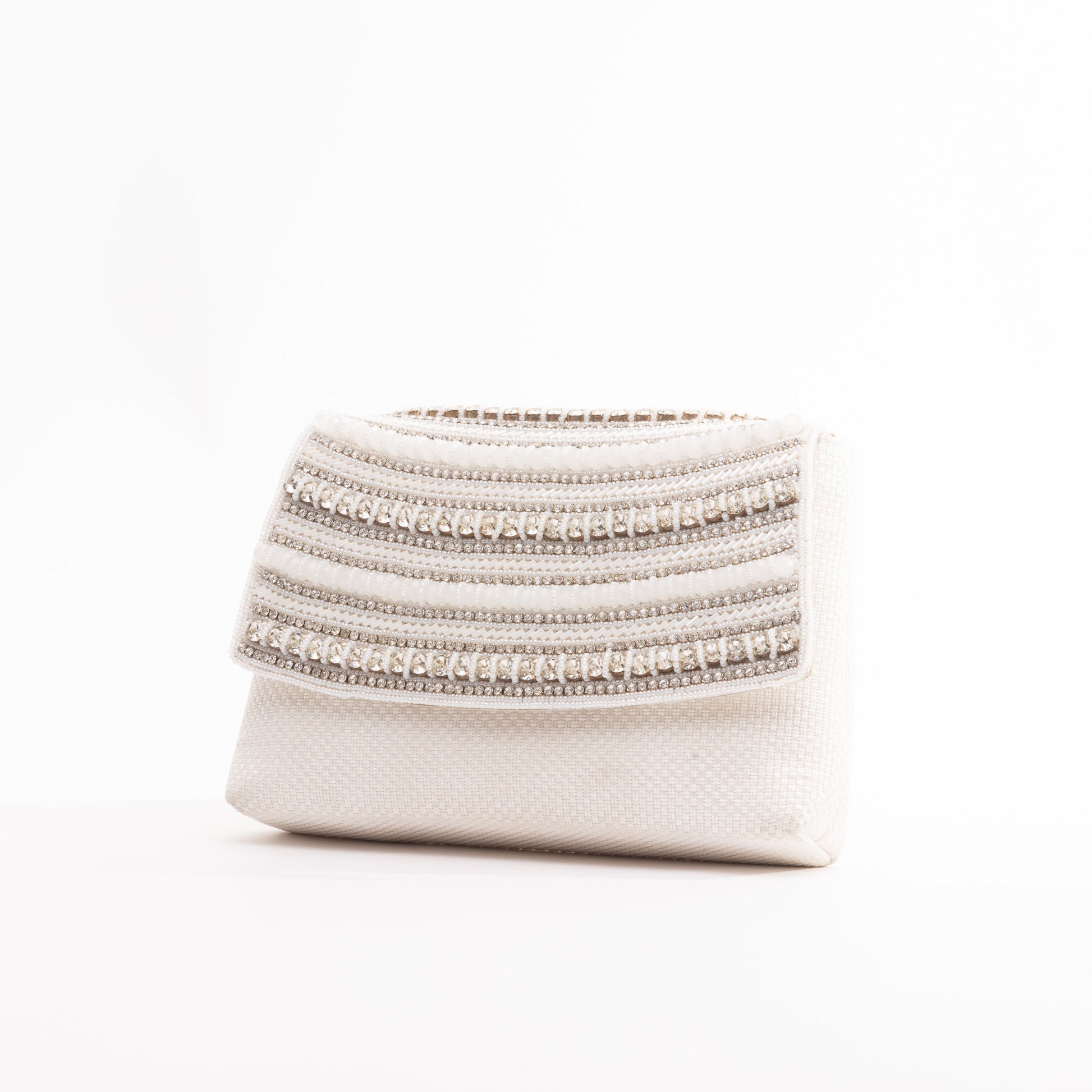 The Whitney clutch exudes timeless sophistication, brought to life with intricate bead embellishments that shimmer with understated elegance. Its refined design makes it the ideal statement piece for weddings, soirées, or any occasion where you want to leave a lasting impression. Thoughtfully designed for versatility, Whitney features a secure magnetic press stud fastening and an optional chain strap, allowing you to effortlessly shift from a handheld clutch to a chic crossbody.