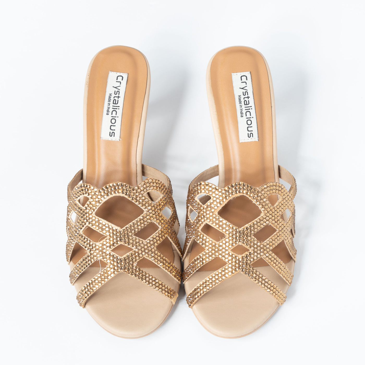Step into elegance with our fashionable flats, featuring adhesive crystals on smooth textile. Crafted with accuracy by skilled Indian makers, these sturdy shoes offer ease and style. Perfect for any occasion. Explore the exclusive collection from Crystalicious now.